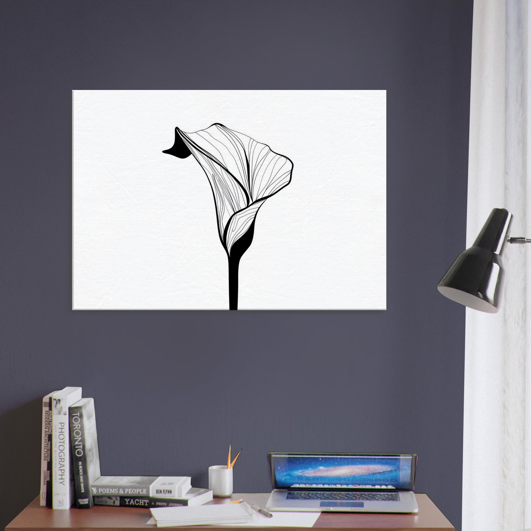 An intimate whisper of nature, this Calla Lily line drawing unfurls with minimal grace. The sinuous black lines sketch each curve with quiet confidence, letting negative space breathe like morning light. Hung in a sunlit living area, it invites a serene focus, turning walls into a gallery of calm. The elegant silhouette pairs effortlessly with warm woods and soft textures, elevating the atmosphere without shouting, and giving a modern room a timeless, contemplative pulse.