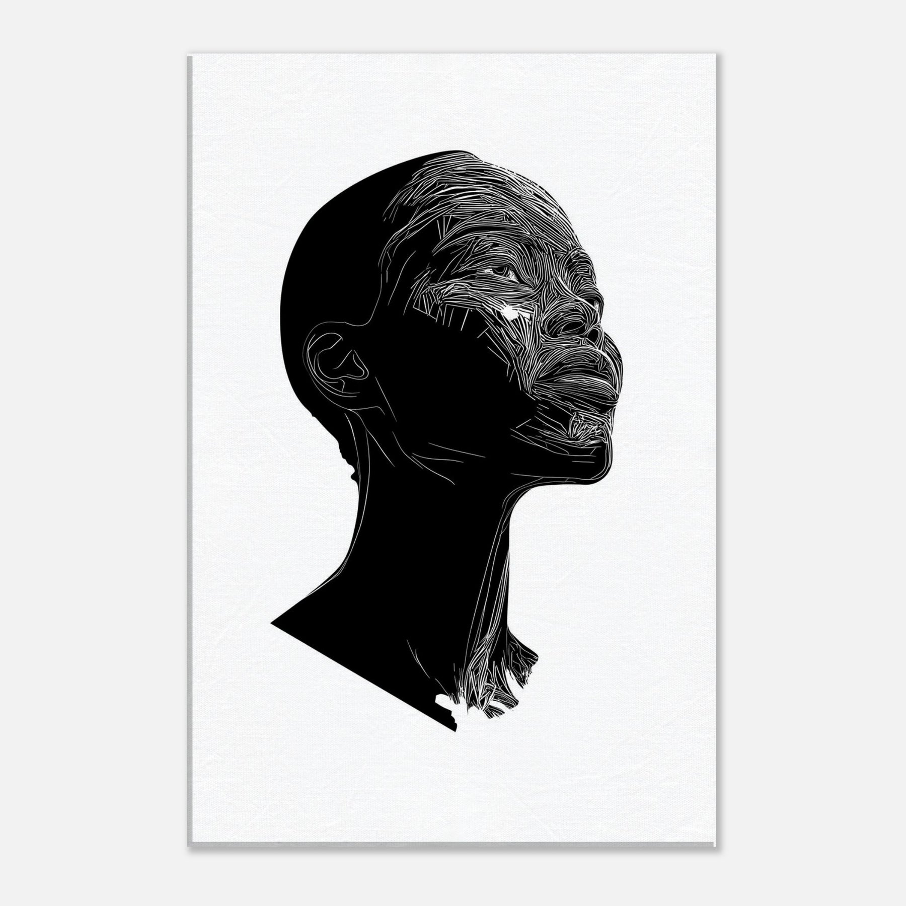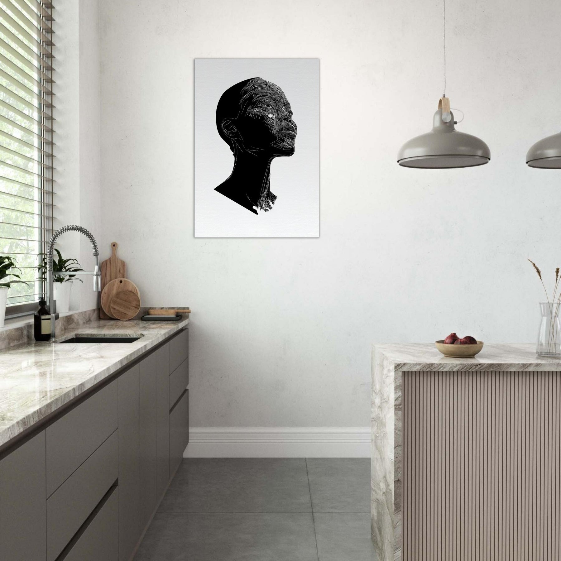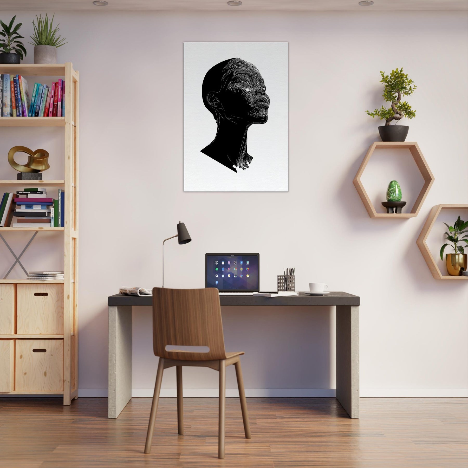 This African Woman unfolds in delicate linework, a study in restraint and expression. The stark black silhouette, etched with pale, glimmering threads, captures a quiet dignity and a whisper of ascent. Framed in negative space, the piece exudes modern elegance, inviting light to play across walls and soften living spaces. It pairs best with minimalist furnishings, adds depth to a lounge, or anchors a bedroom with a contemplative mood. A timeless, sculptural presence that feels both intimate and expansive.