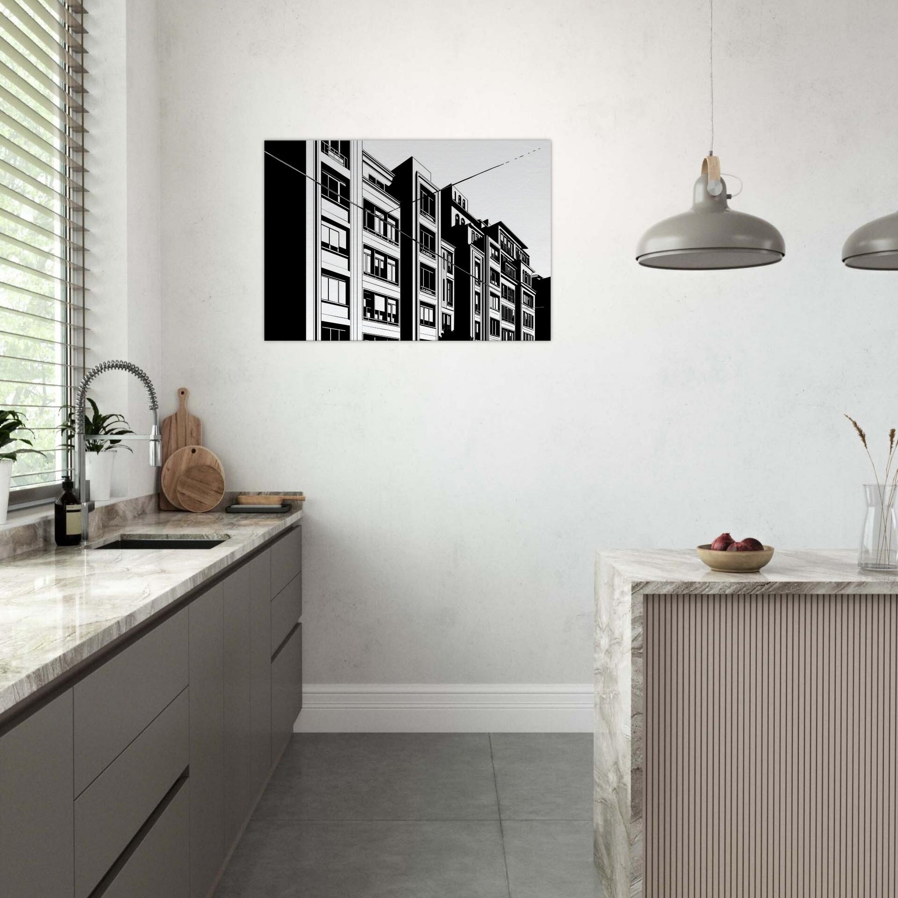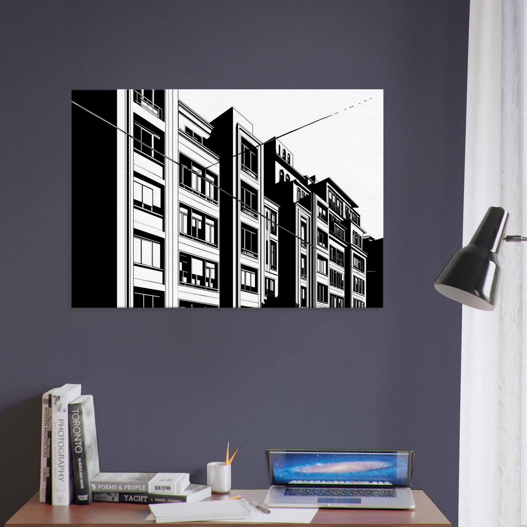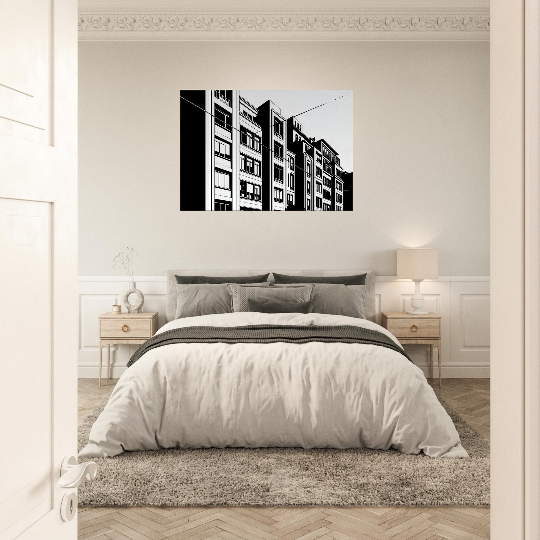 Marvel at a city awakened by clean, continuous lines. This Istanbul line art captures the rhythm of its facades, balconies, and narrow streets in bold black on white, inviting the eye to wander as if strolling along a sunlit shoreline. The minimalist composition creates dramatic negative space, drawing warmth into a living room or study. Hang it where light meets shadow to transform a space into a quiet, urban sanctuary a timeless ode to the city's architectural heartbeat.