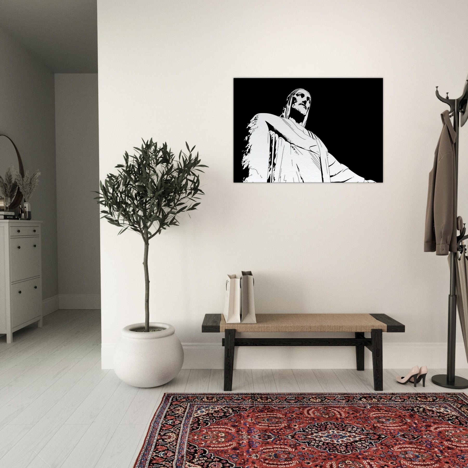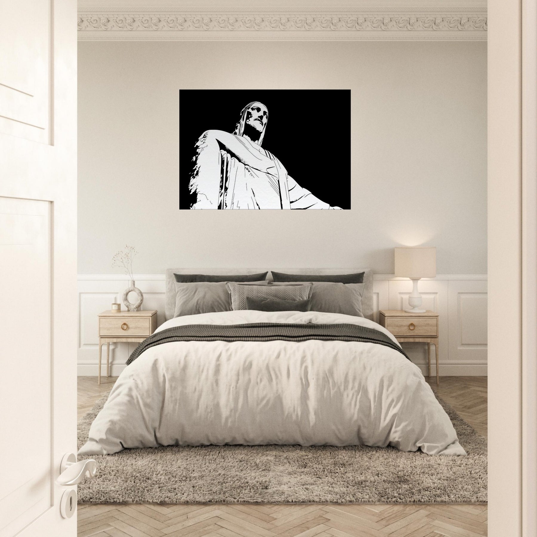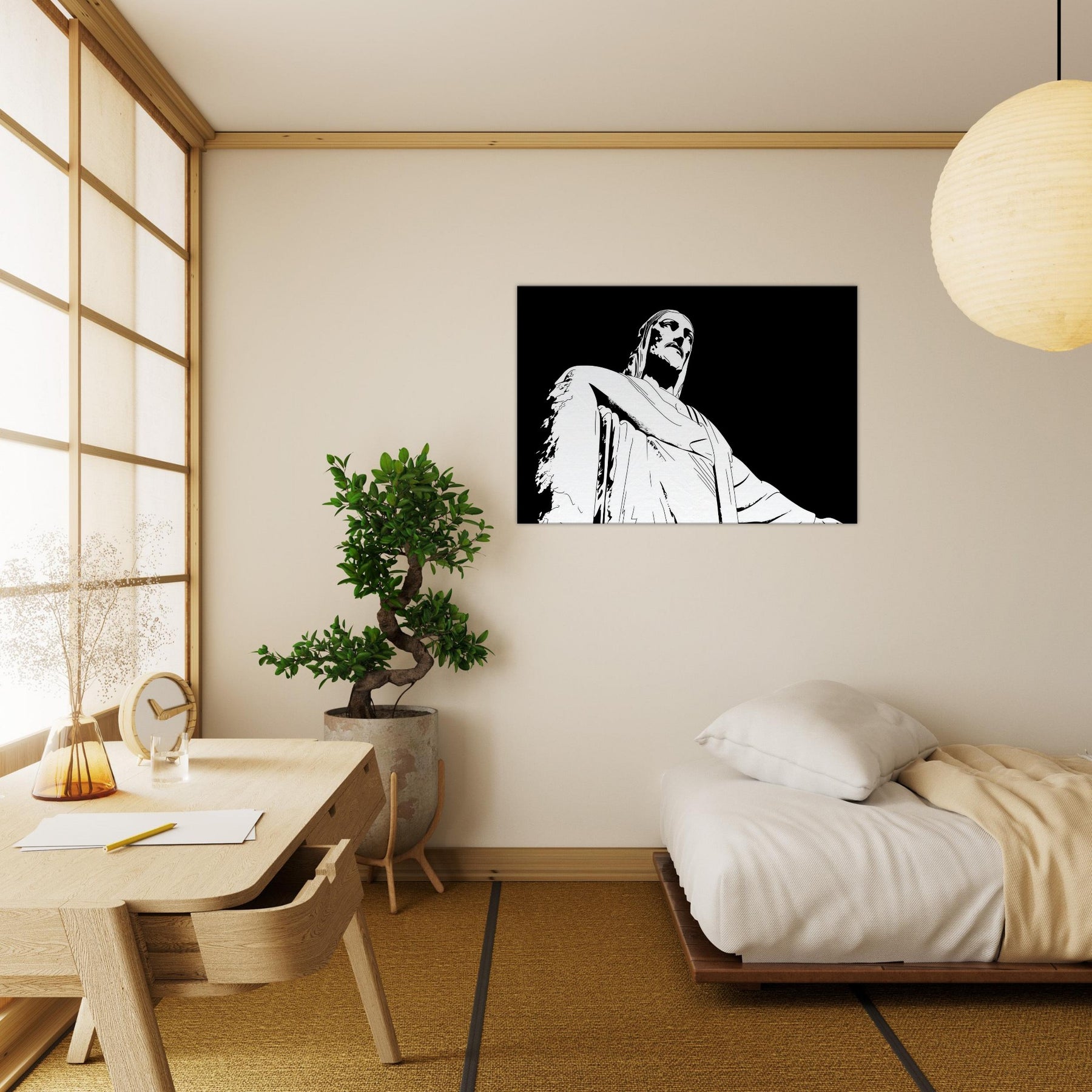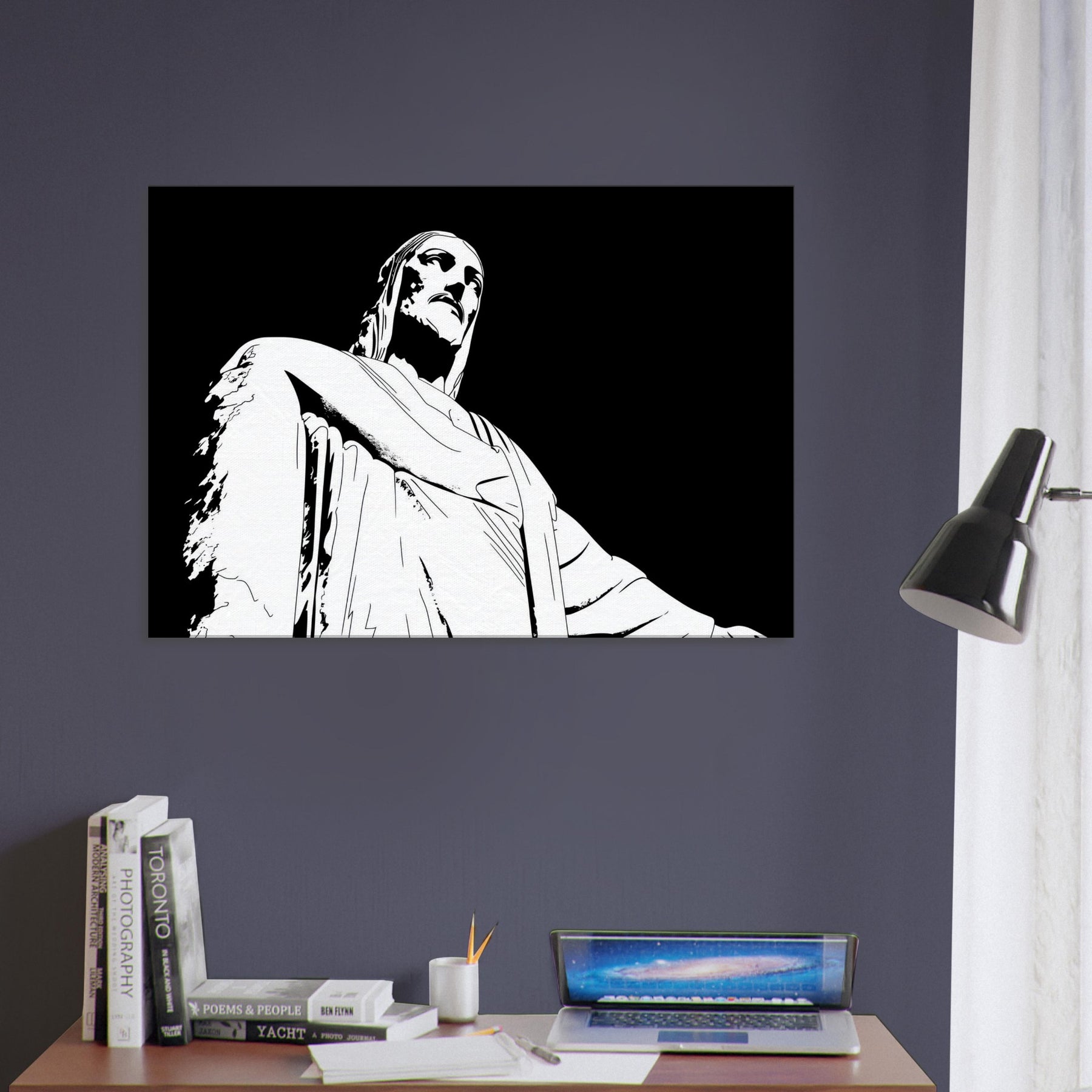 Christ the Redeemer rises in clean, continuous lines against a deep black field, a quiet anthem rendered in ink and light. This elegant monochrome illustration invites introspection, lending a serene focal point to any living space the entry hall, the library nook, or above a sofa. The bold contrast and precise contours create a sculptural presence that feels timeless yet modern, coordinating with warm woods, cool metals, or soft textiles. Hang it solo for contemplative stillness or pair it with city and architecture pieces for urban poetry.