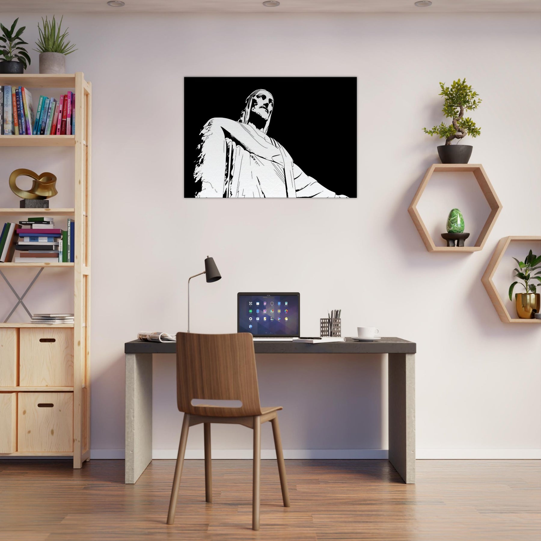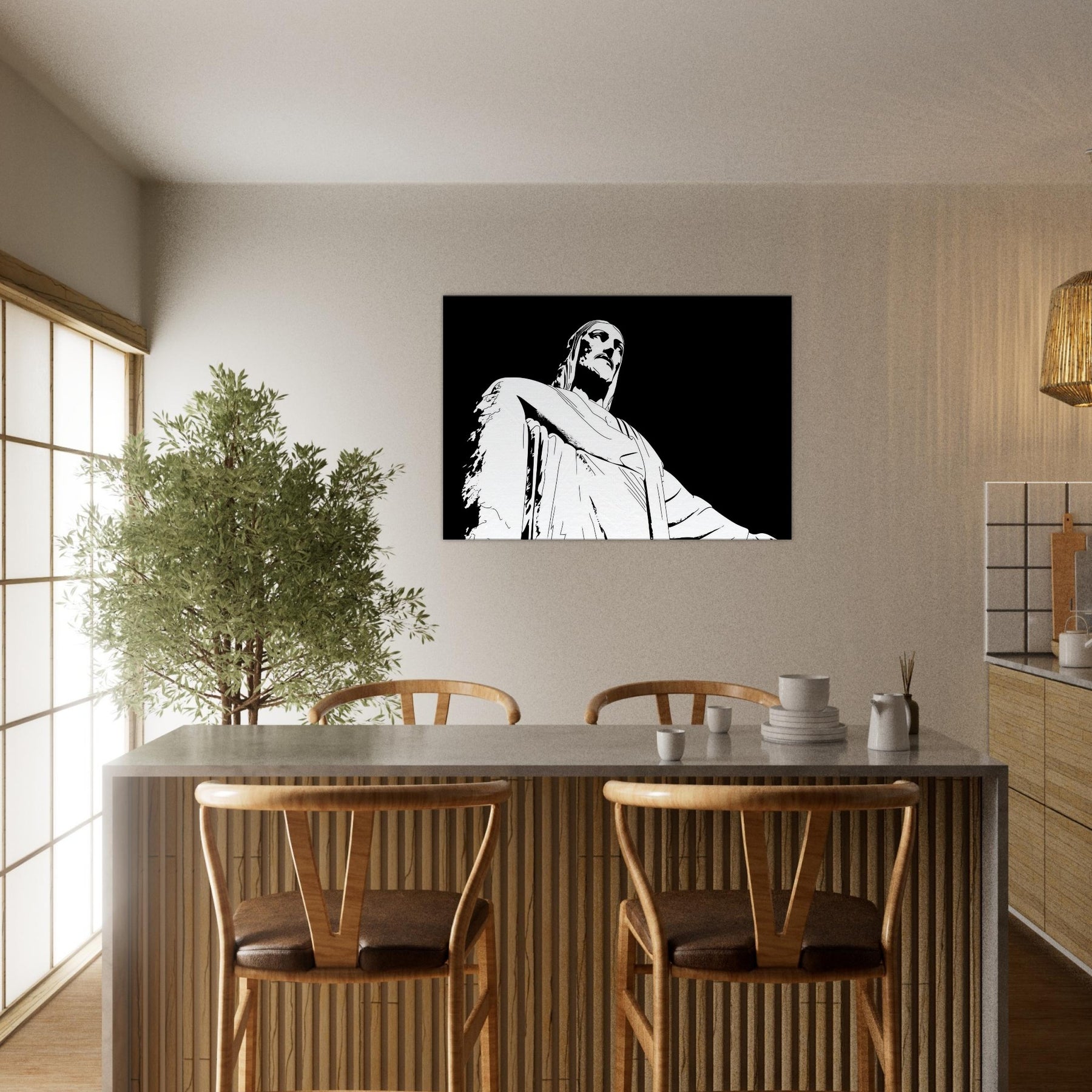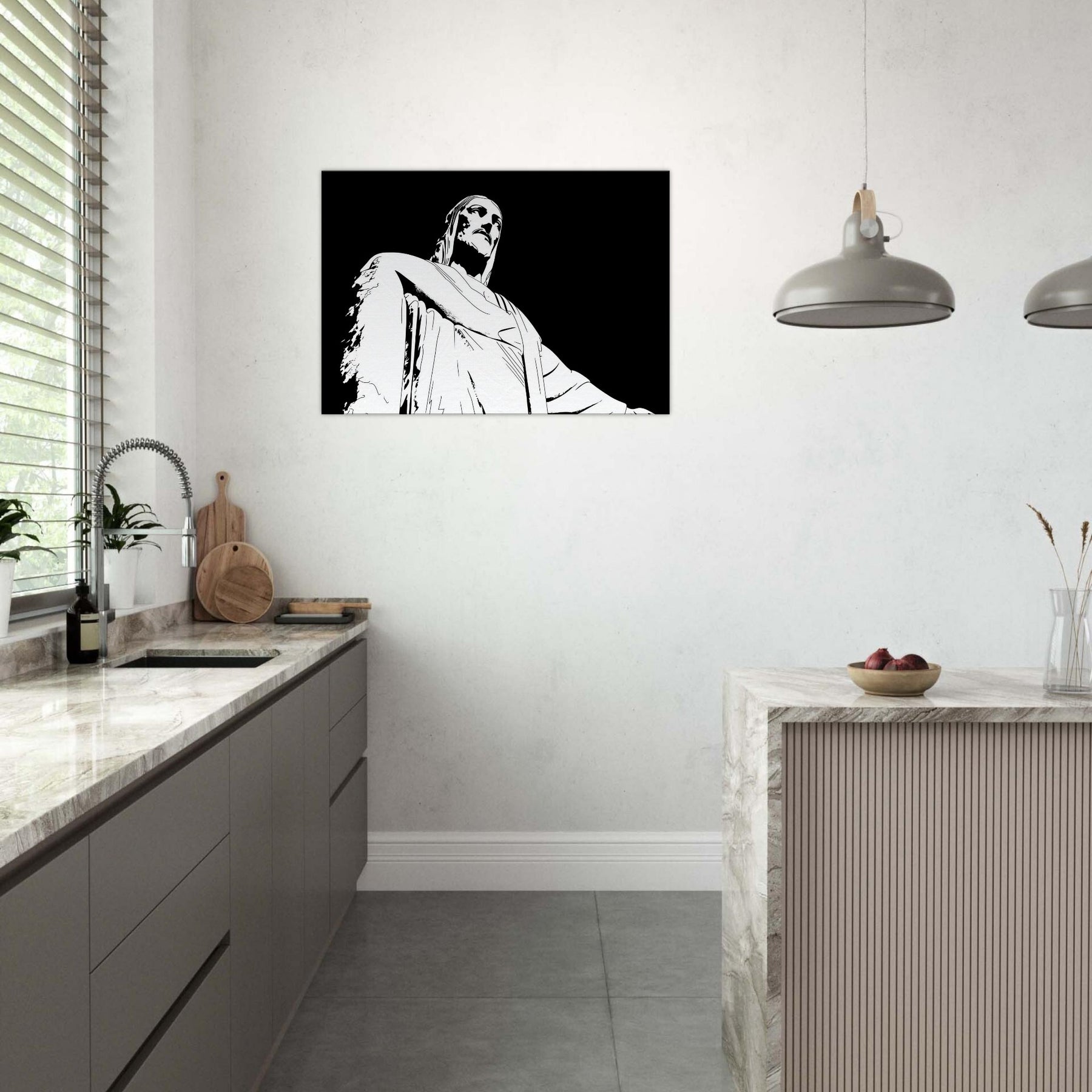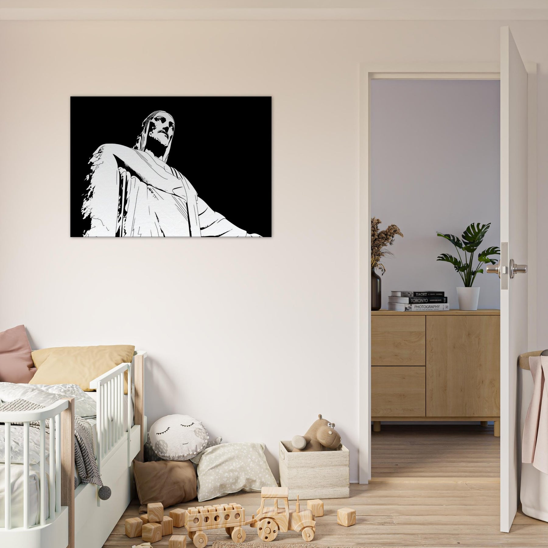 Christ the Redeemer rises in clean, continuous lines against a deep black field, a quiet anthem rendered in ink and light. This elegant monochrome illustration invites introspection, lending a serene focal point to any living space the entry hall, the library nook, or above a sofa. The bold contrast and precise contours create a sculptural presence that feels timeless yet modern, coordinating with warm woods, cool metals, or soft textiles. Hang it solo for contemplative stillness or pair it with city and architecture pieces for urban poetry.