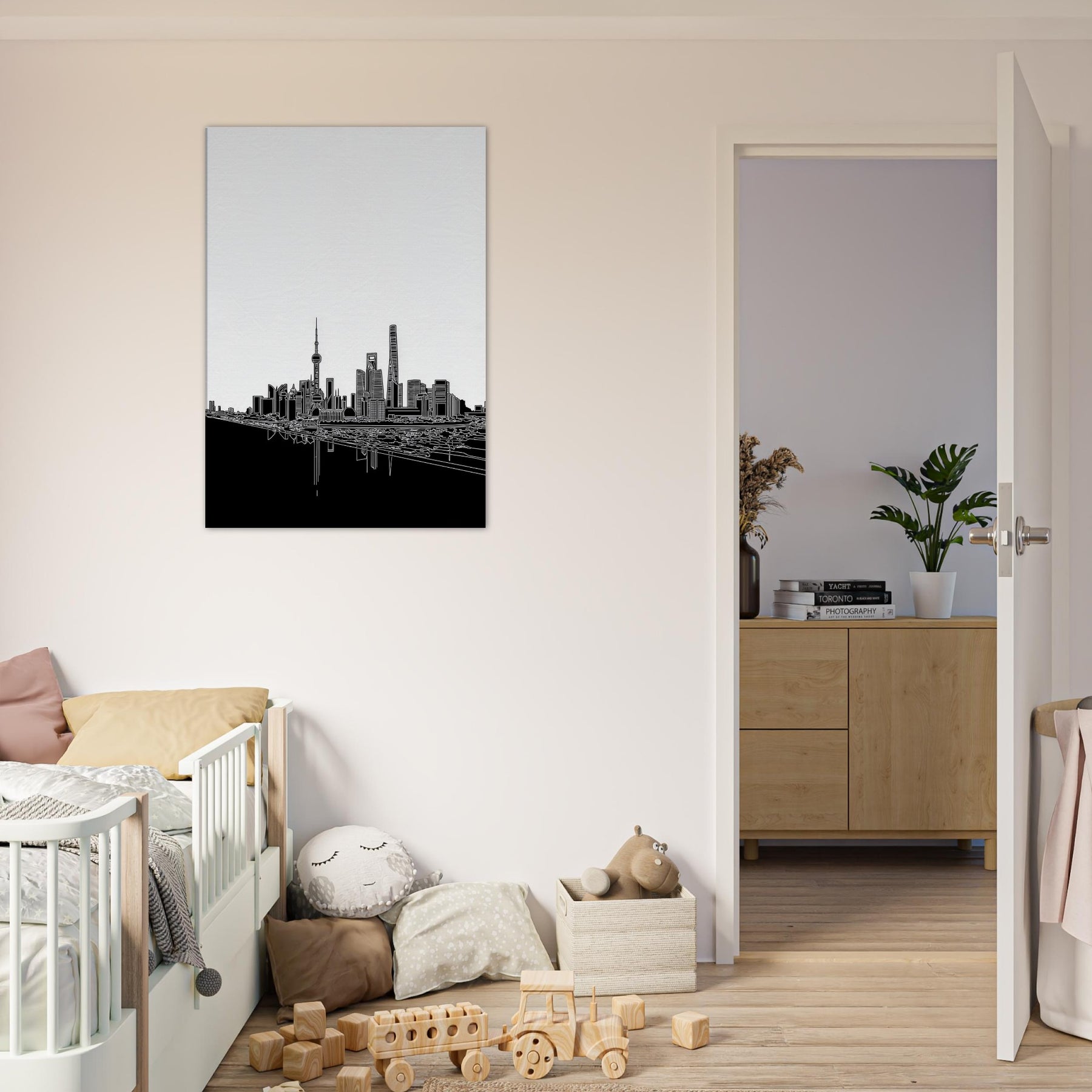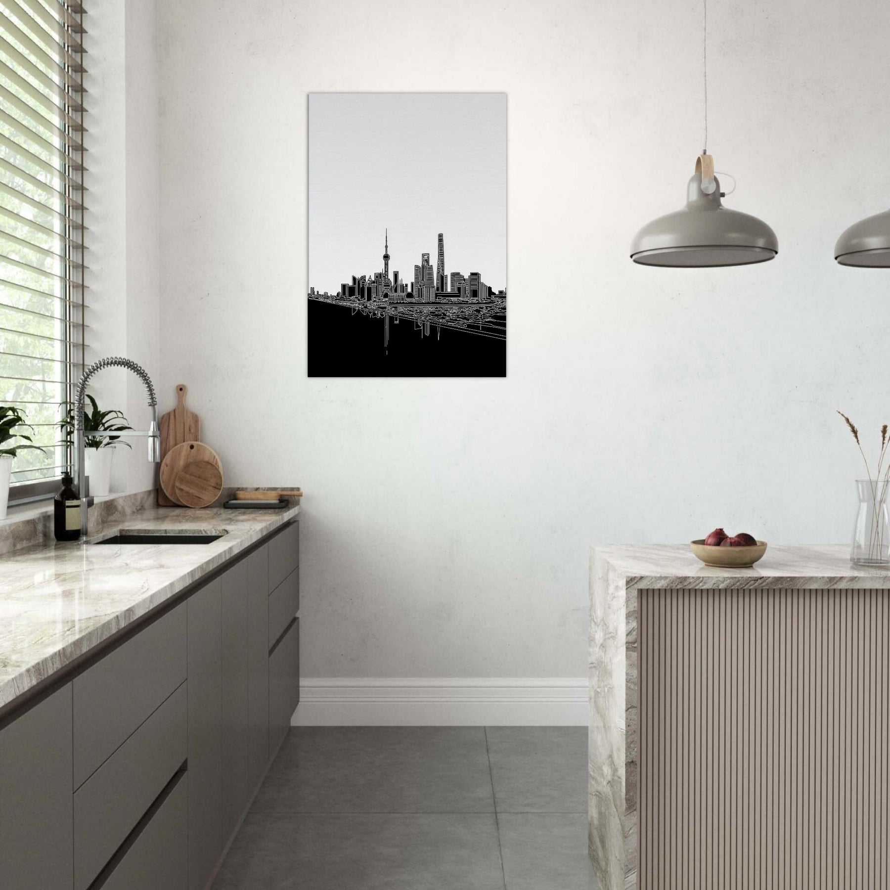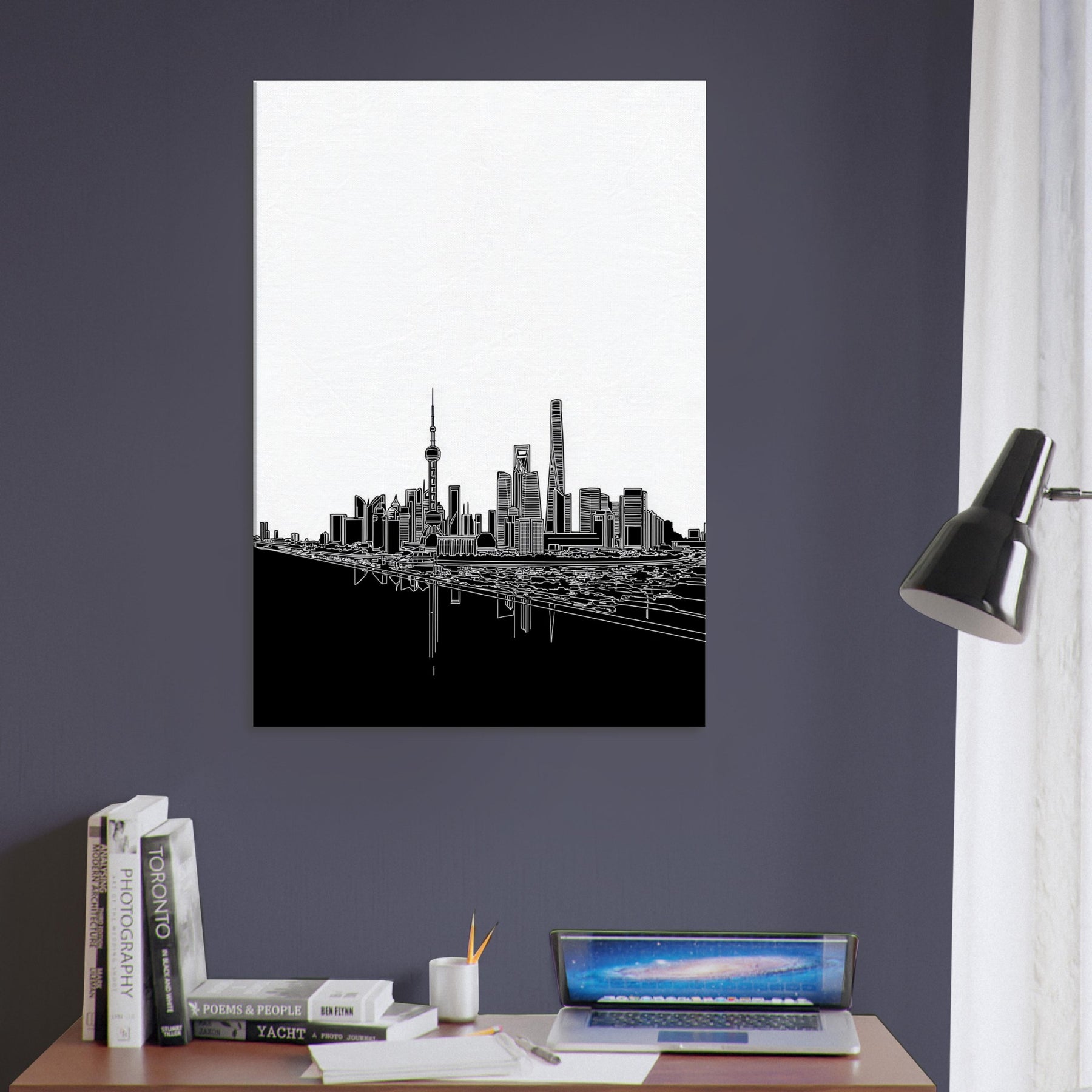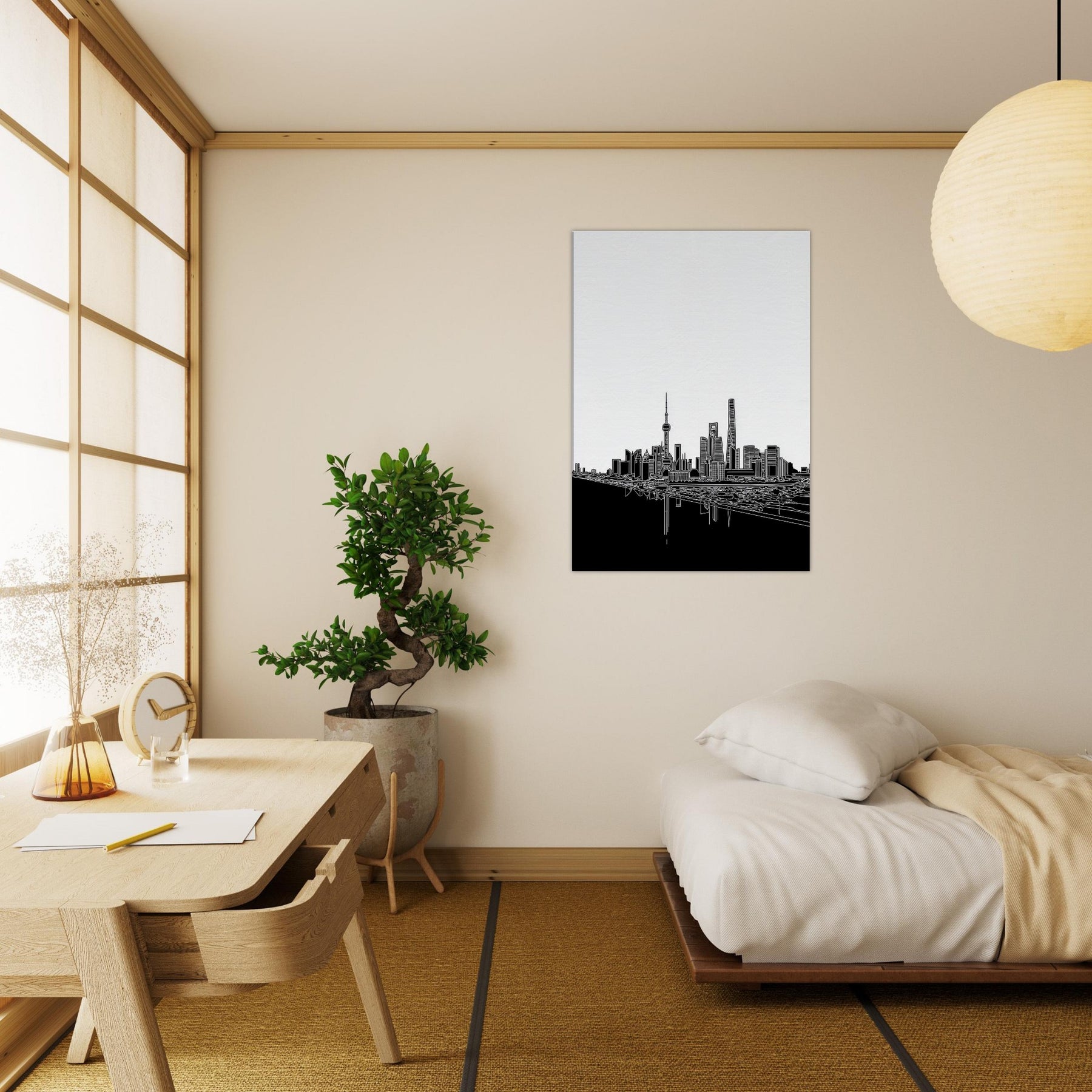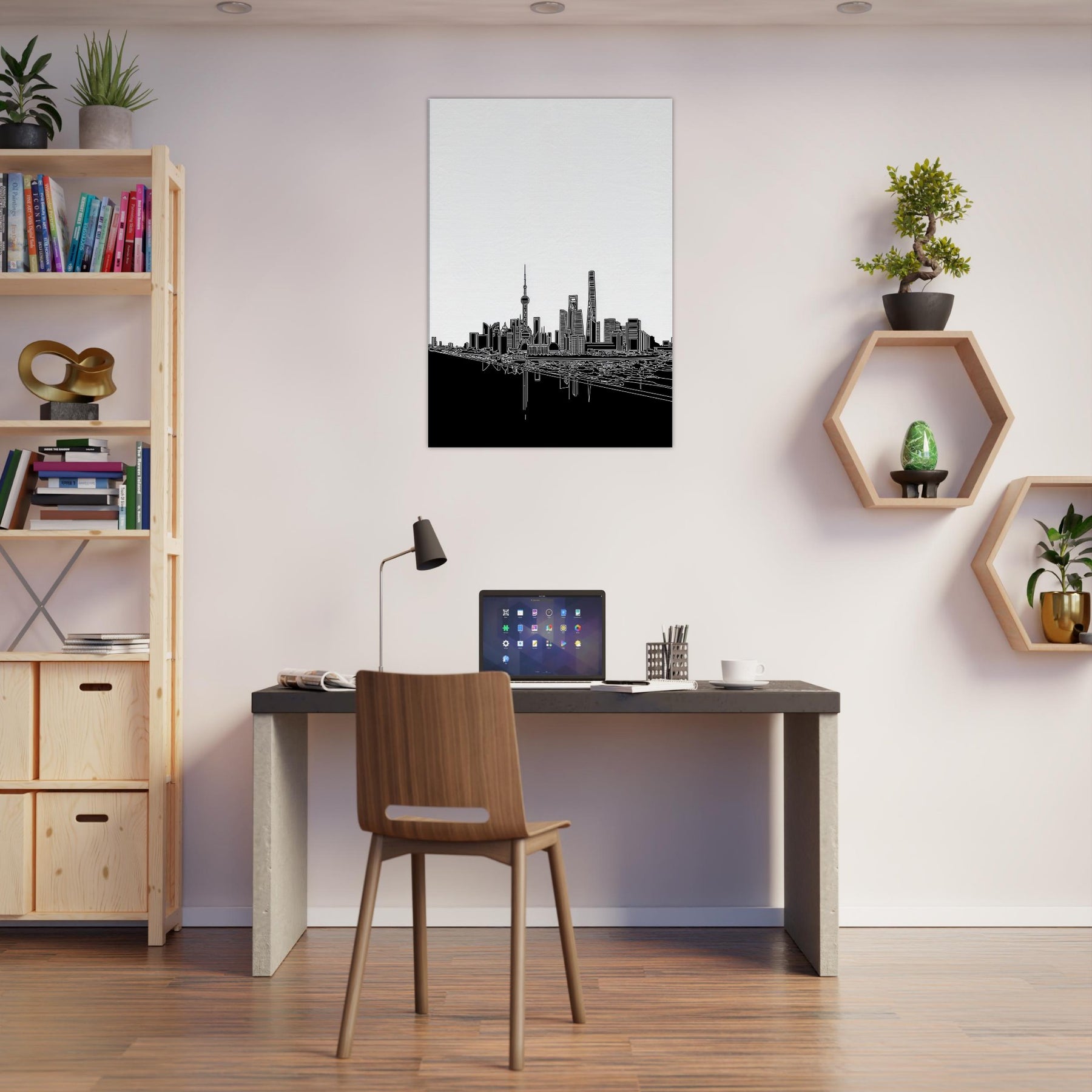 Shanghai unfurls in precise black lines, a skyline that breathes softly beside your living space. This line art captures the Bund’s glow, the graceful curve of the Pudong towers, and the quiet rhythm of bridges sketched across a water’s edge. The minimalist energy invites light to play along walls, turning a room into a serene urban observatory. Place it over a sofa or in a study to cultivate focus and calm an elegant, contemporary nod to the city’s rhythm and your own daily pace.