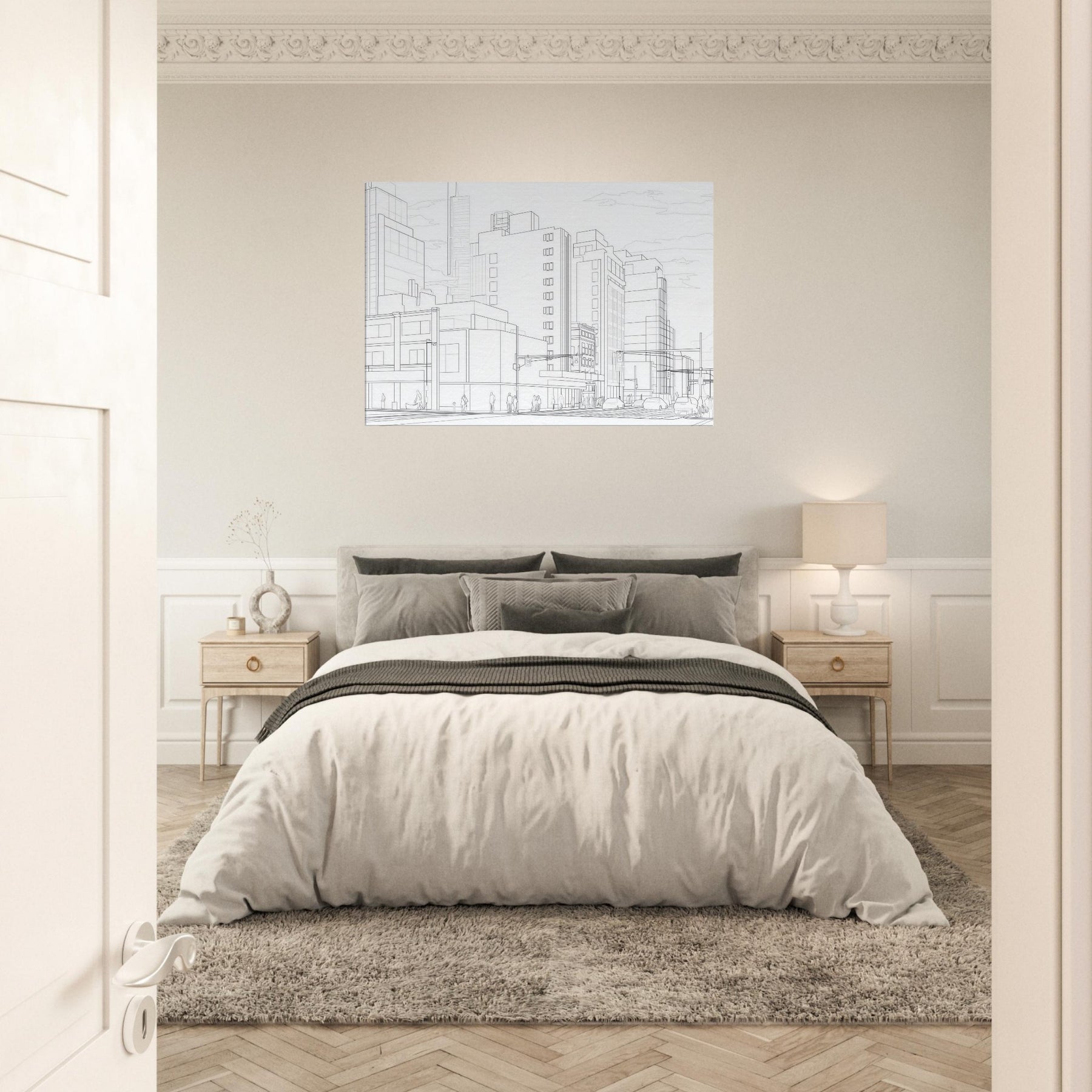 Toronto rises in a whisper of clean lines and quiet edges. This line art cityscape conjures the pulse of a busy street without clutter, allowing light to breathe across your room. The simplicity of each contour invites reflection, while the open sky above the downtown silhouettes suggests possibility. Hung in a living room or study, it adds a calm urban energy that complements modern furniture and neutral tones, turning everyday spaces into a subtle homage to city life.