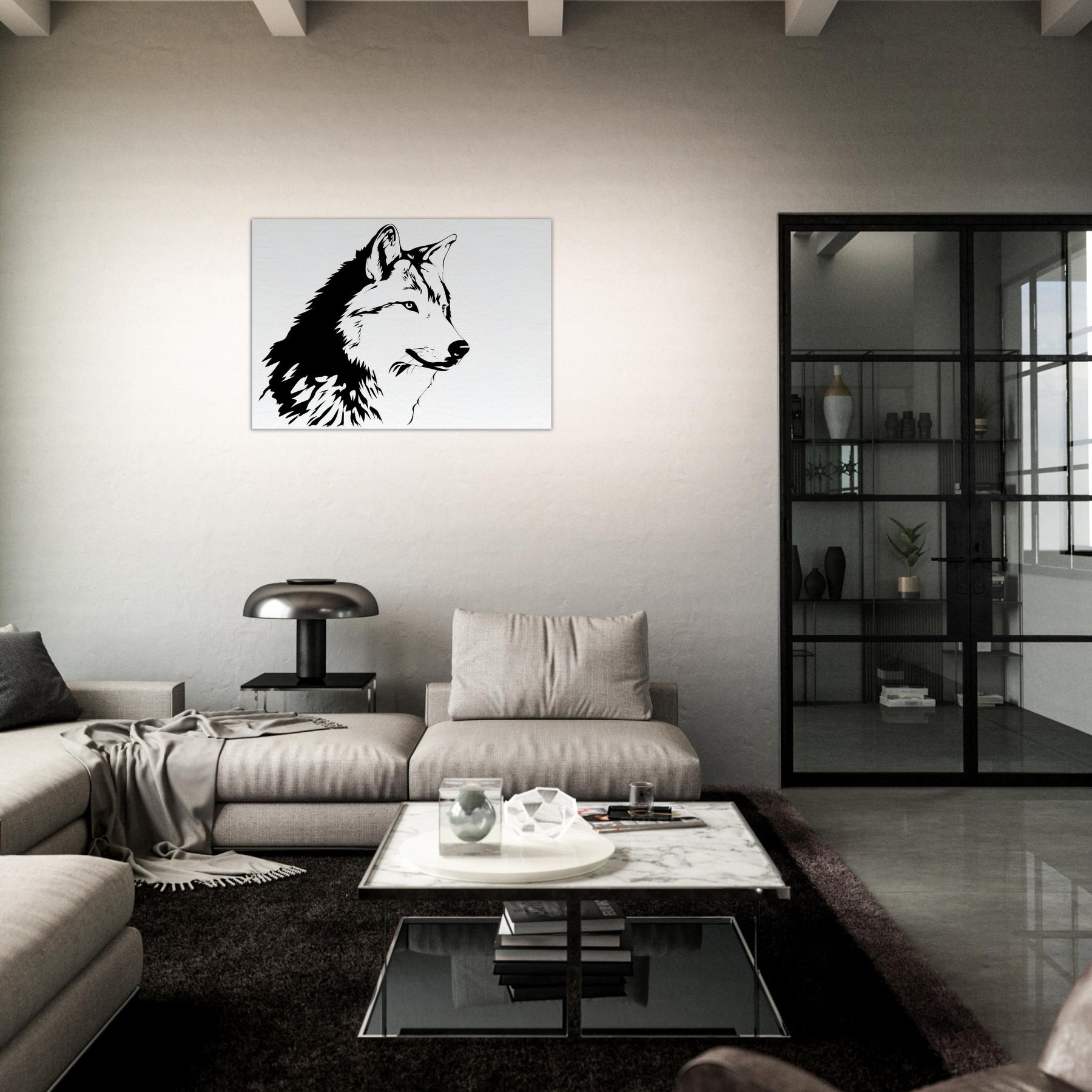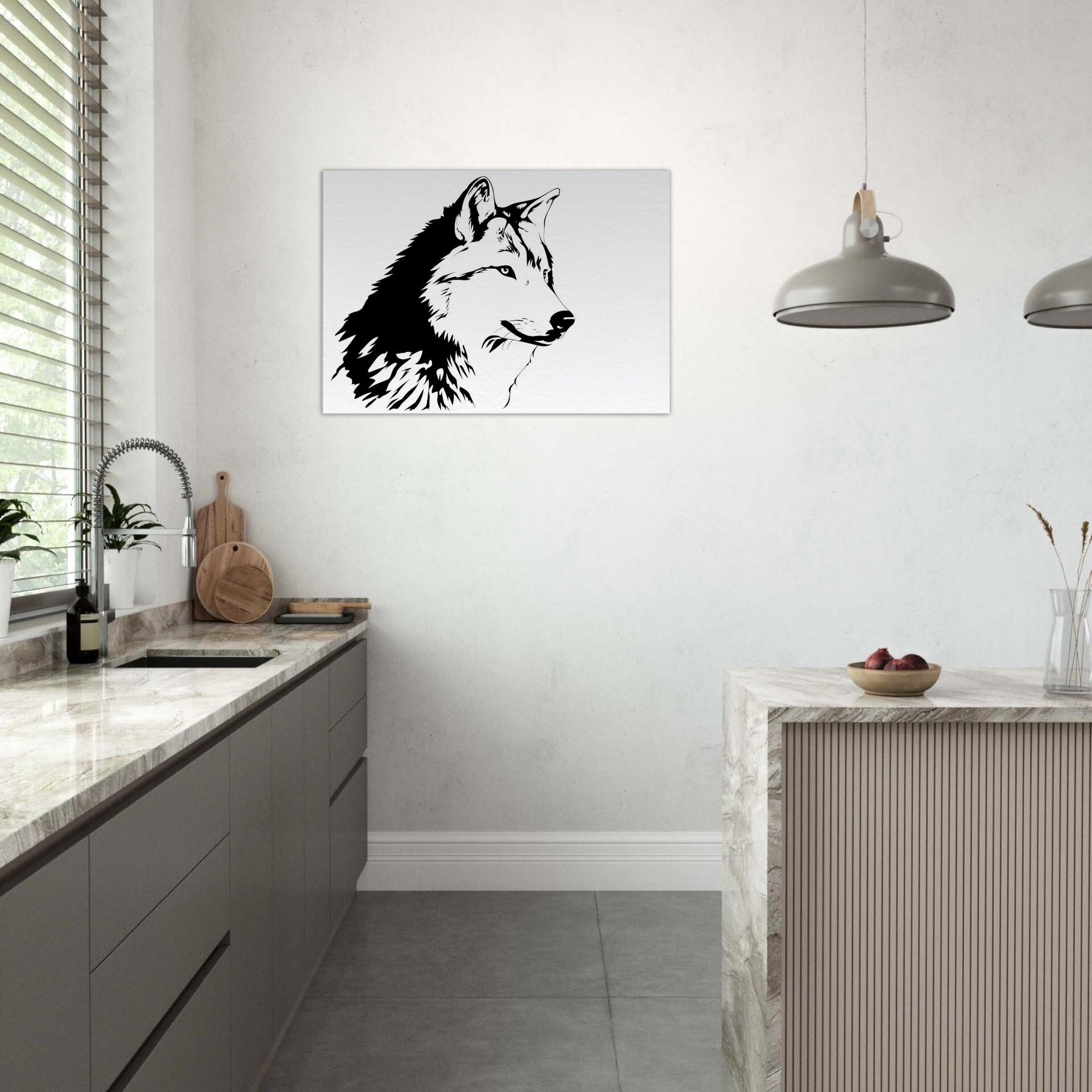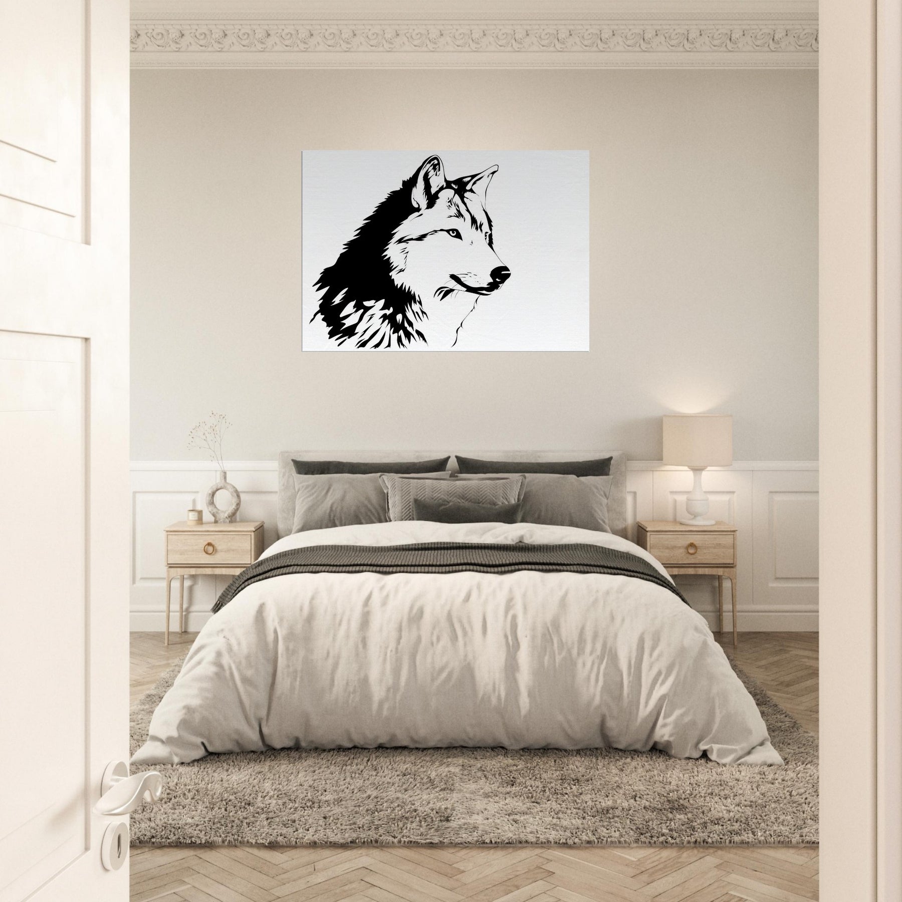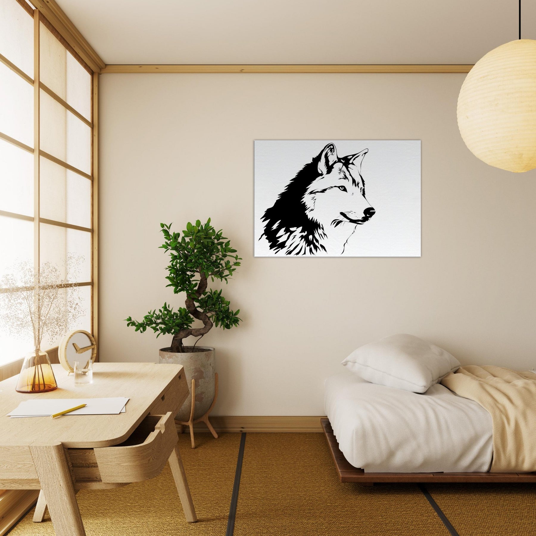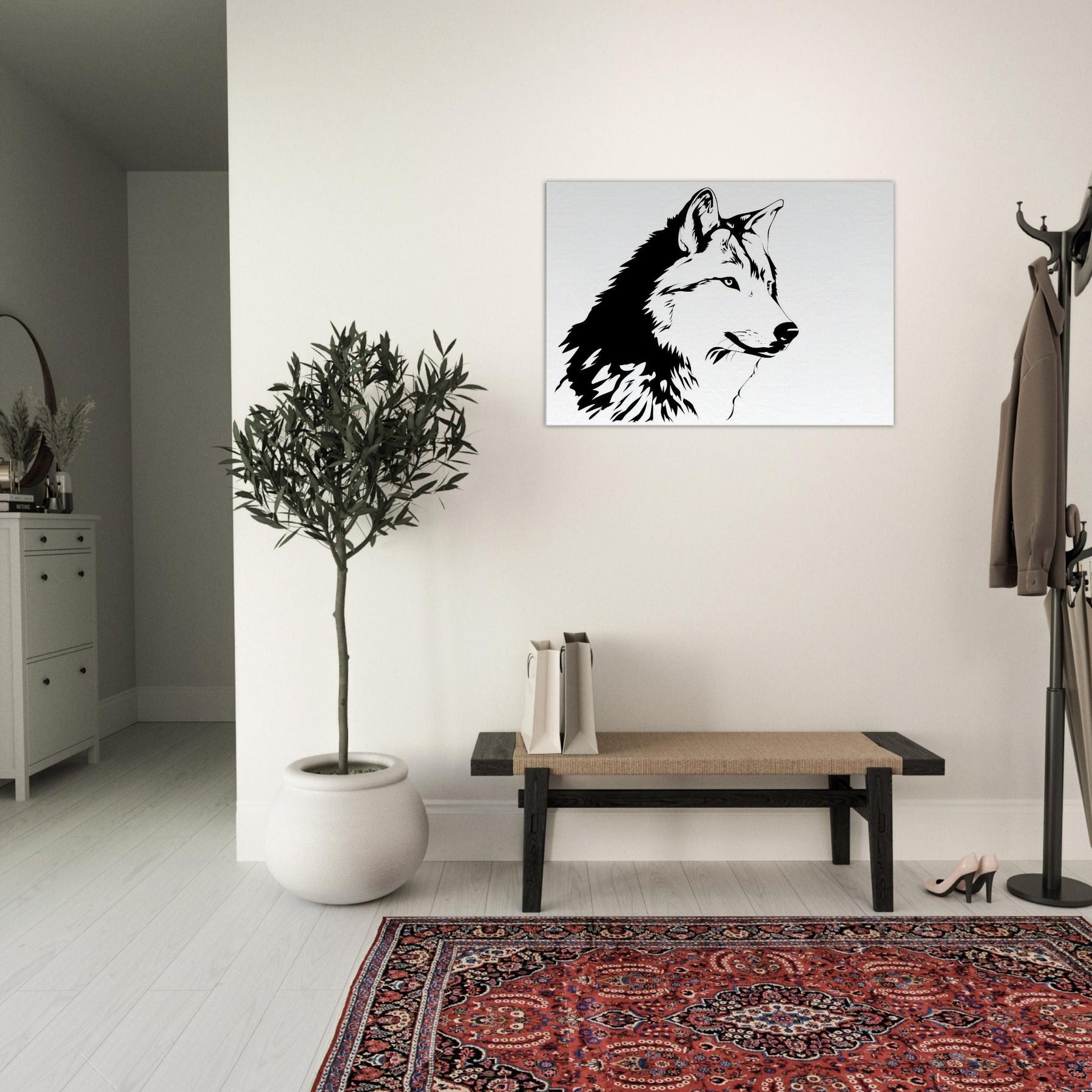 This minimalist Wolf exudes quiet authority, a study in restraint and suggestion rather than detail. The stark black and white composition sketches the animal’s noble profile, inviting a calm, contemplative gaze into your space. Perfect for a living room or study, it brings a frontier like stillness, a tactile sense of wind and open air. The artwork pairs with warm woods or cool neutrals, sharpening textures and grounding soft furnishings. Its presence transforms walls into a quiet shelter, a moment of clarity amid everyday bustle.