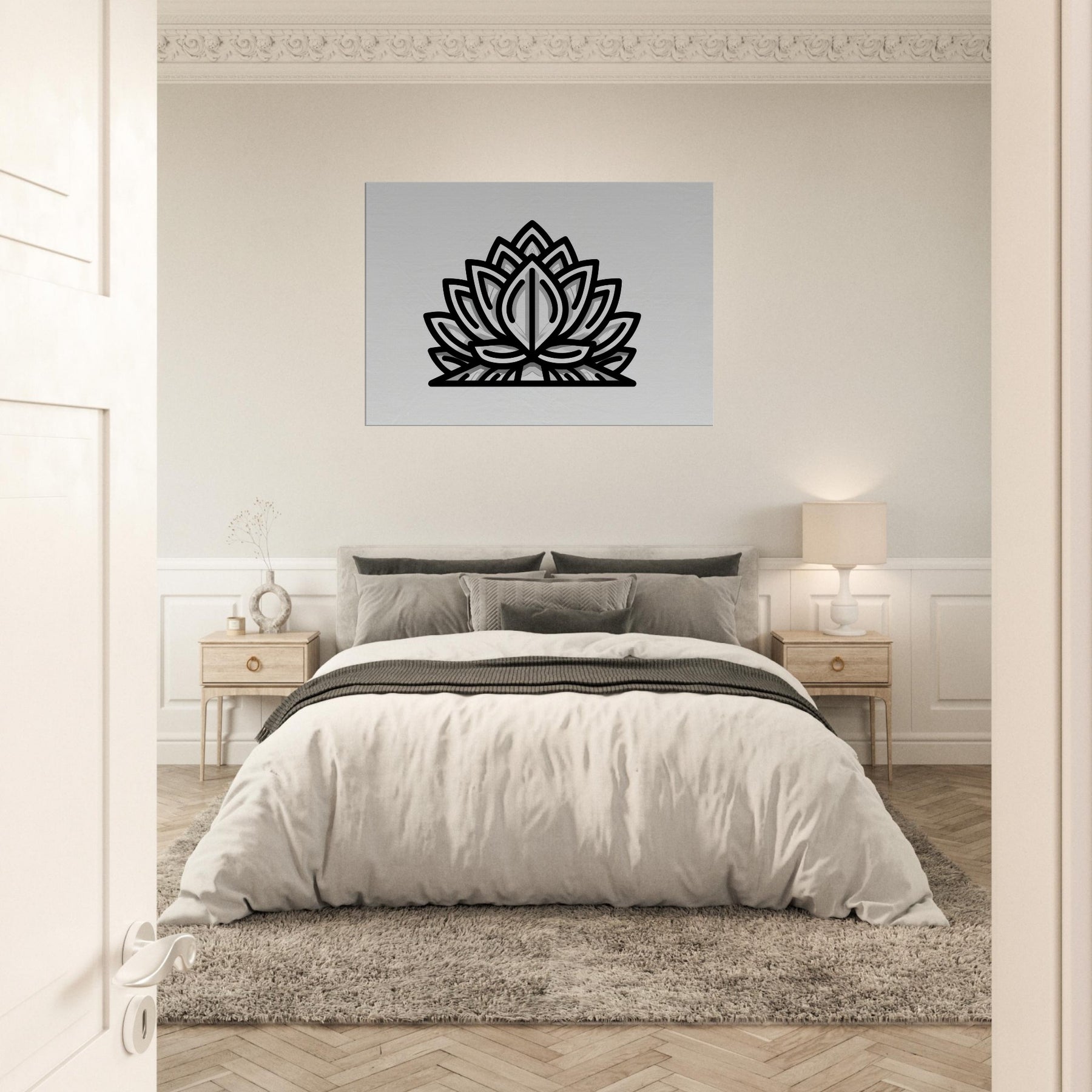 Silhouetted in bold, precise lines, the Lotus Throne rests in quiet majesty. This line art study invites stillness, its symmetrical petals unfolding like a whispered mantra. The stark black contours against a pale field create a breath of balance, turning any wall into a meditation space. Hang it in a living room or bedroom to cultivate calm, clarity, and subtle sophistication the artwork becomes a daily ritual, drawing light, texture, and contemplative mood into your home.