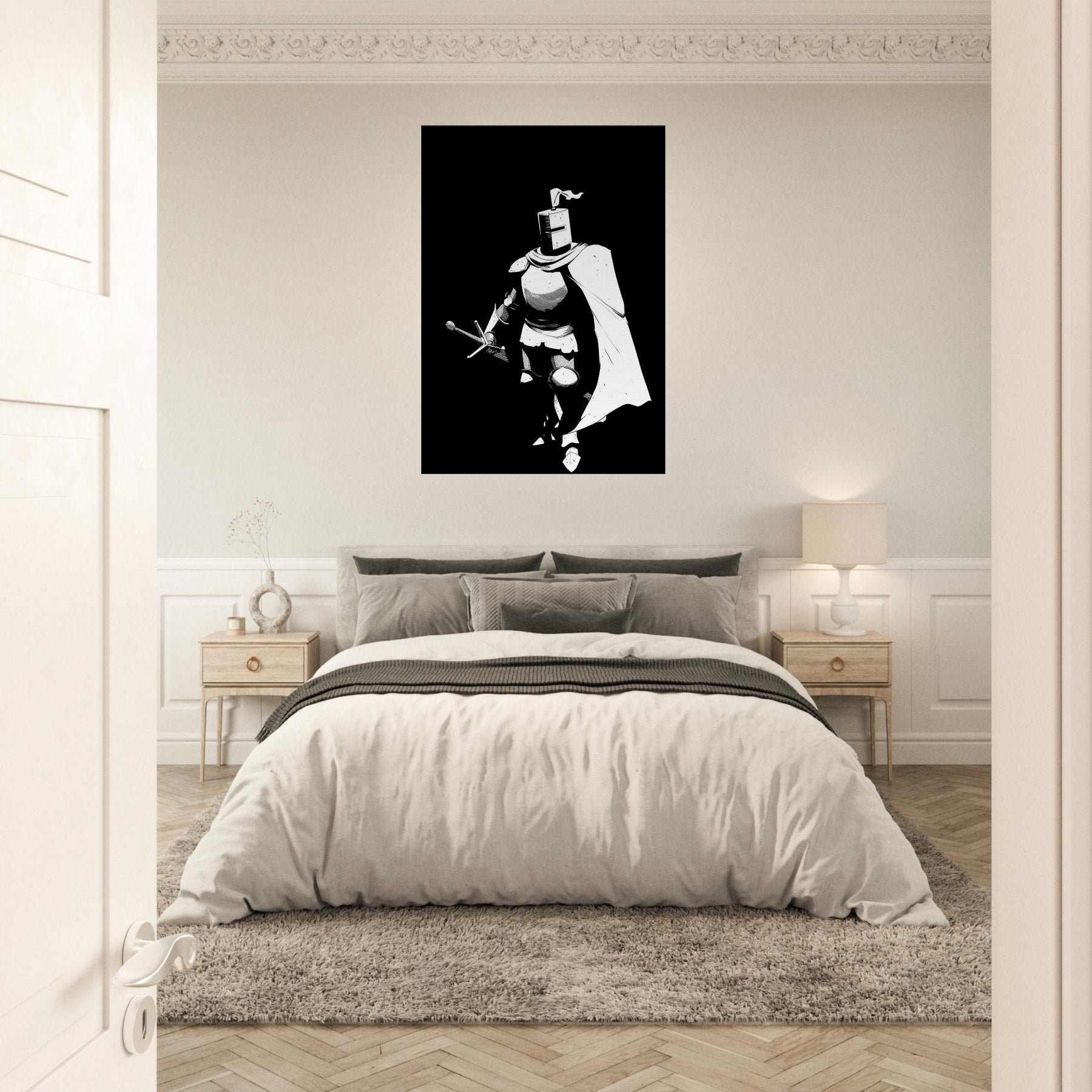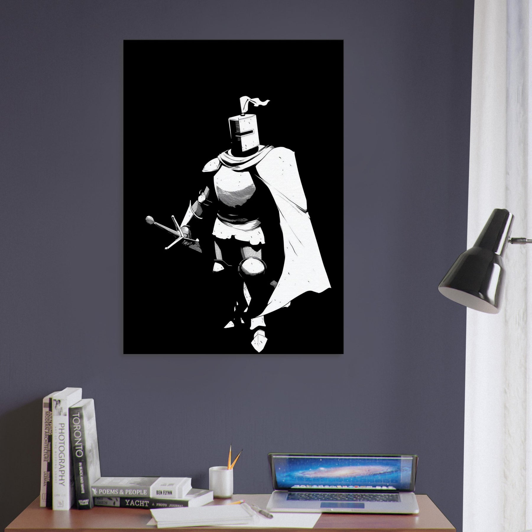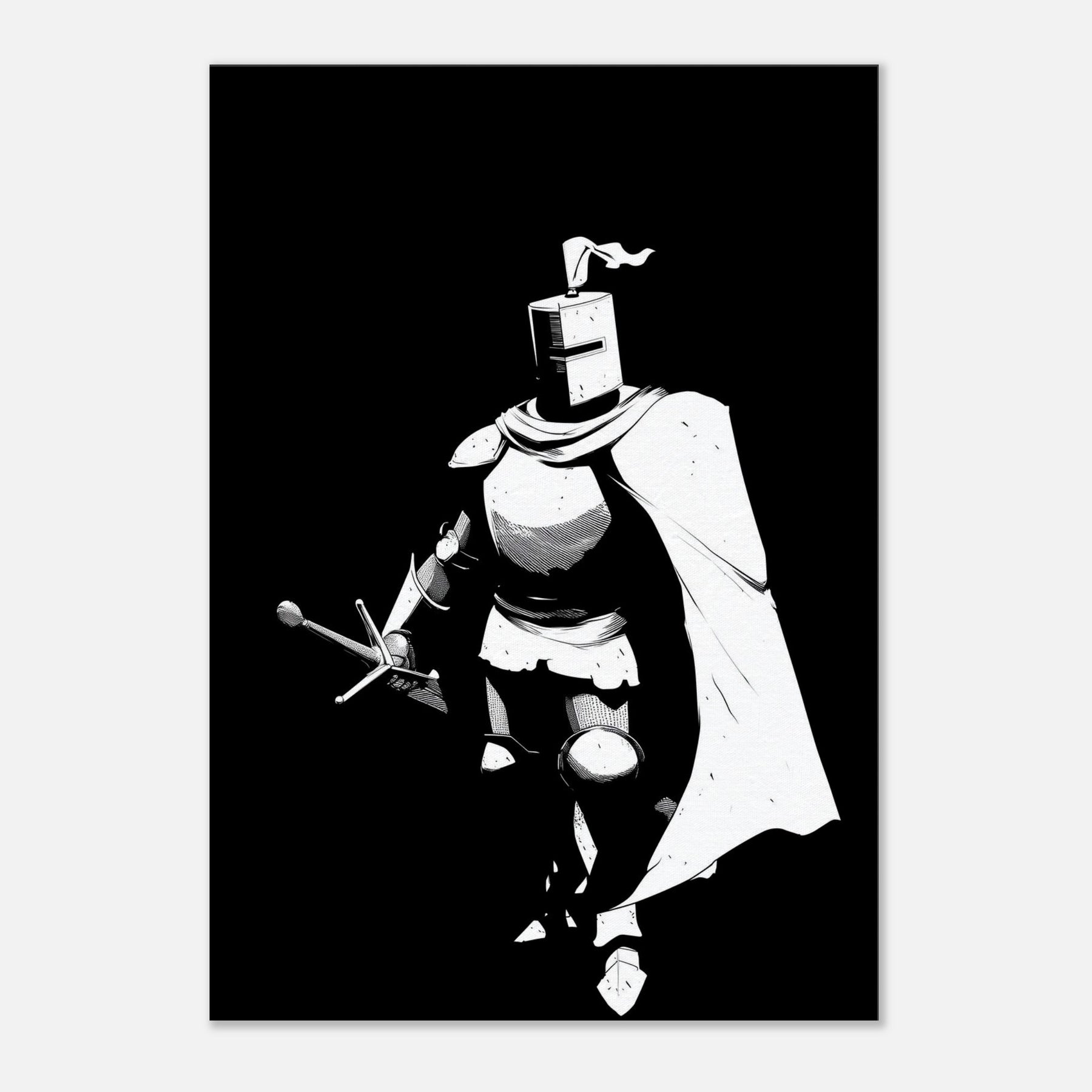 Immerse your space in the stoic glow of a Gallant Knight in Shining Armor, captured in bold line art that breathes with quiet motion. The stark black and white composition distills legend into a single, elegant silhouette, a reminder of courage and grace in a modern home. Perfect for a living room or study, this piece adds dramatic contrast and refined drama without overpowering the space. Its graphic clarity invites contemplation, turning walls into a gallery of myth, strategy, and steady, aspirational energy.