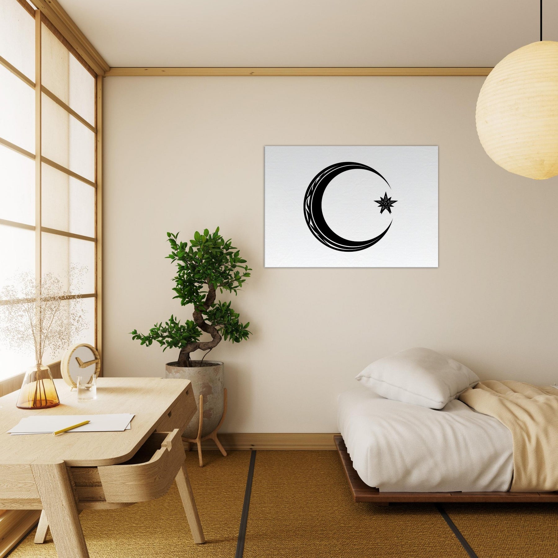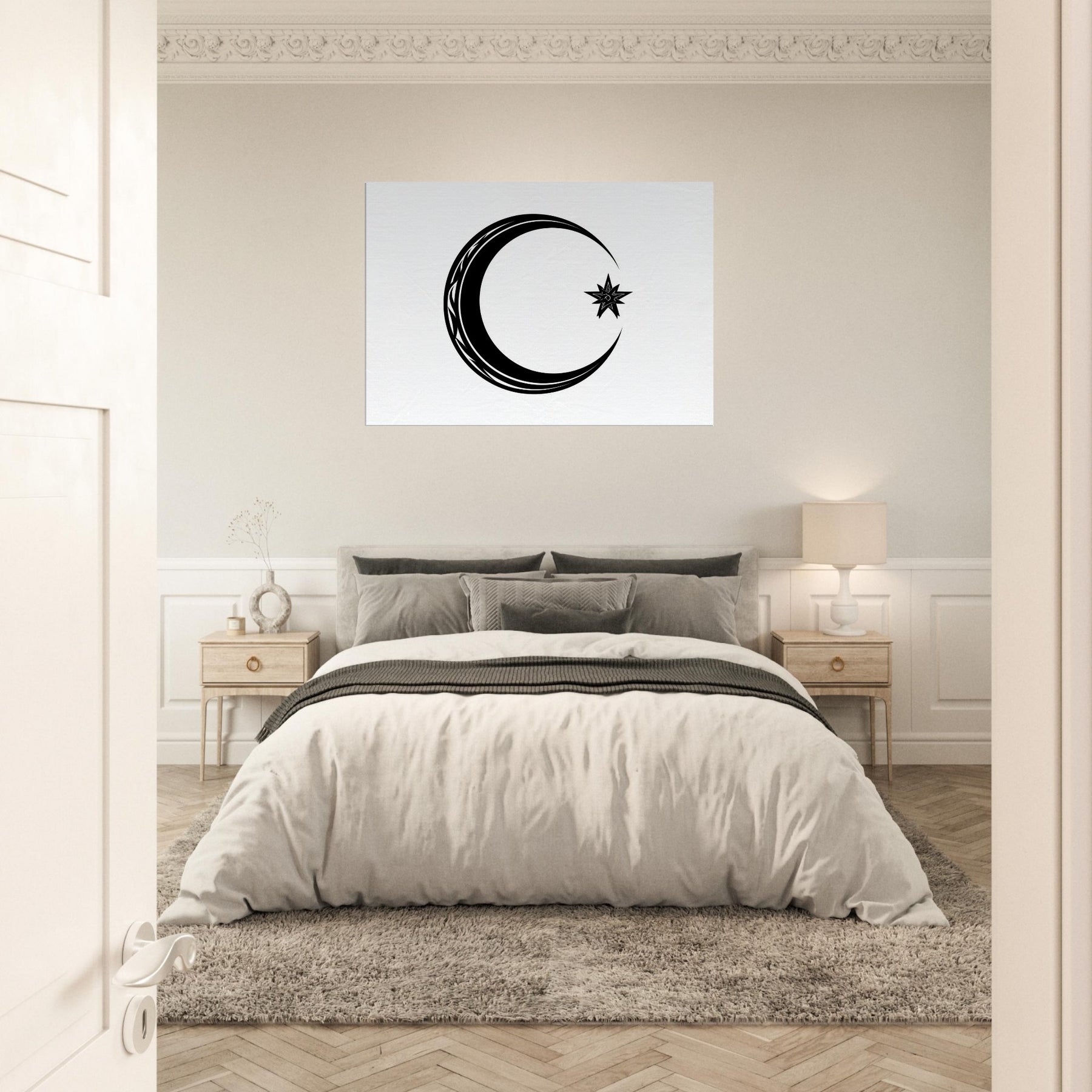 The Crescent & Star (Minimal) line art invites quiet wonder to your living space. A single, fluid crescent cradles negative space while a delicate star punctuates the void with a mystical shimmer, creating a serene rhythm on your wall. In pure black on white, the piece exudes timeless clarity, ideal for a modern living room, bedroom nook, or study alcove. It fosters a tranquil atmosphere minimal yet magnetic where conversations drift and the night's soft hush becomes part of daily life.