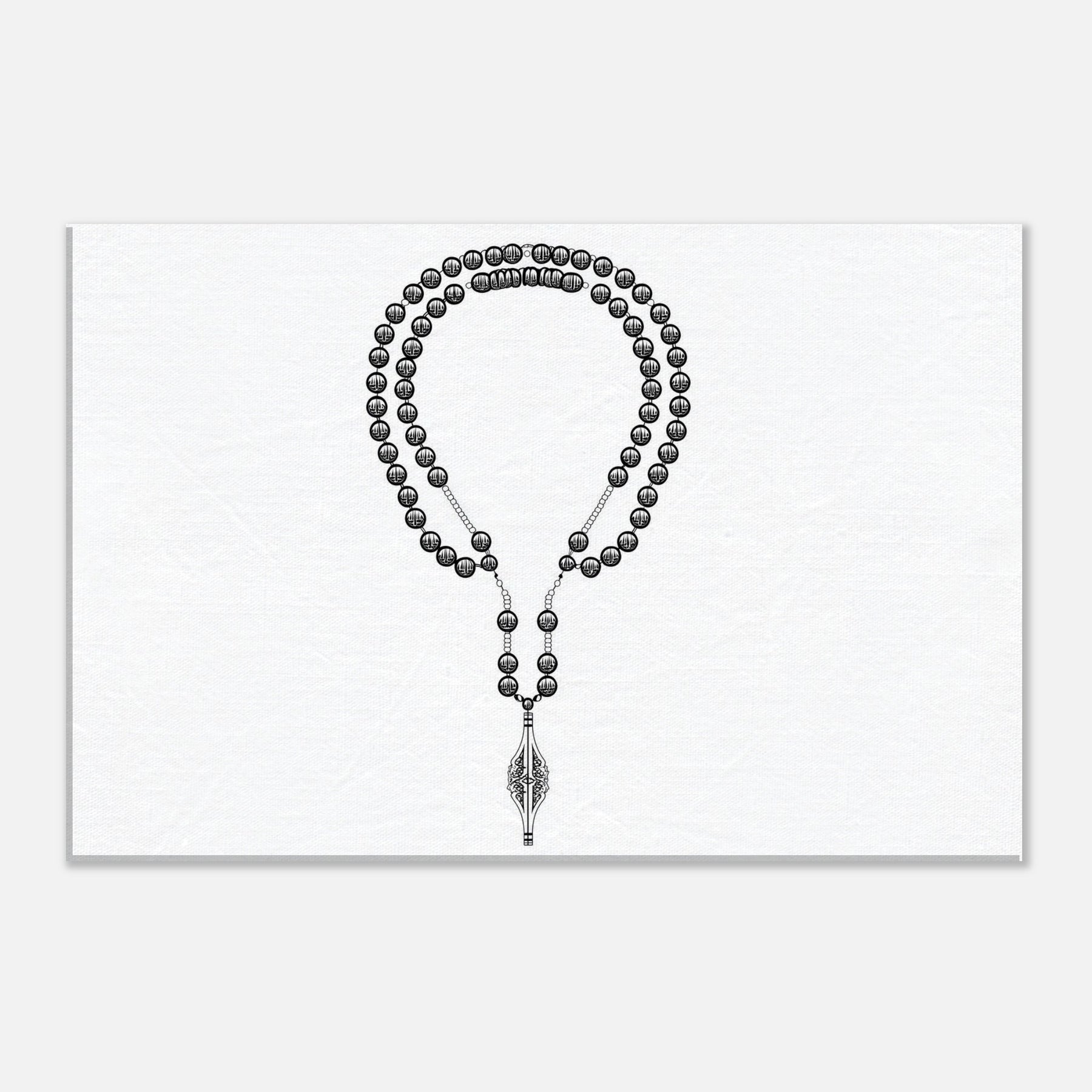 An understated meditation in black and white, this Prayer Beads line art invites quiet contemplation. The repeated orbs trace a looping path that suggests breath and intention, turning a sacred ritual into a graceful sculpture for the wall. The delicate contrasts of ink on pristine surface shimmer like candlelight, and the central pendant hints at an ancient talisman. Hang this piece in a living room or hallway to soften the atmosphere, invite stillness, and infuse the space with a mystic, atmospheric calm. The central subject is Prayer Beads (Mala/Tasbih).