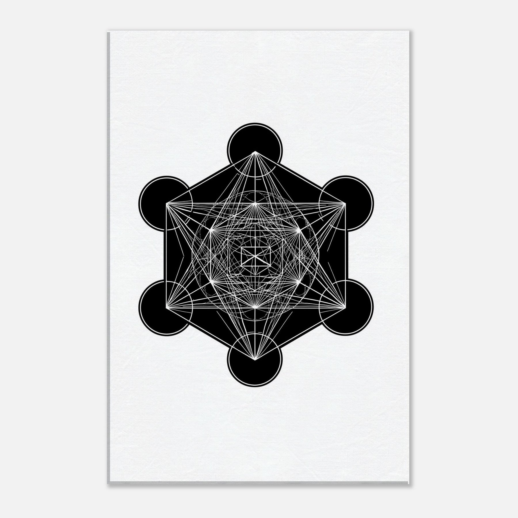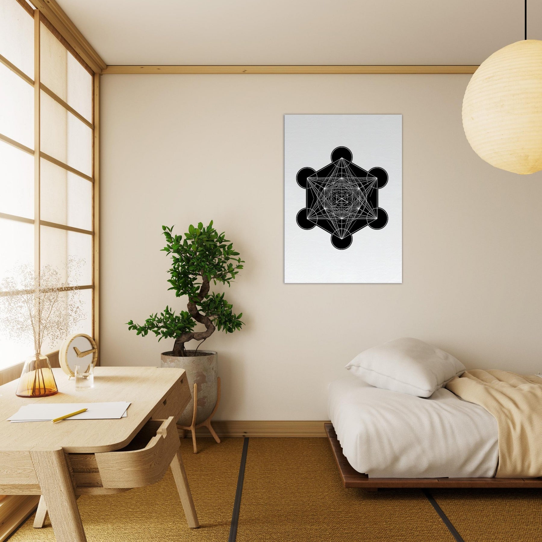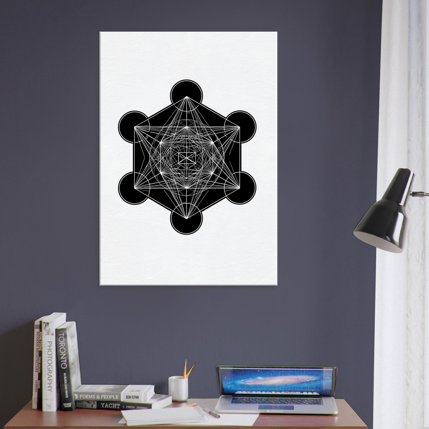 Metatron's Cube unfolds as a luminous lattice in this line art study, where nested polygons weave a quiet constellation of precision. The crisp white lines against black invite the eye to travel the web of connections, awakening a meditative hush as the room breathes with balanced energy. Ideal for a living space seeking clarity and calm, this artwork elevates walls with refined momentum, turning corners into portals of contemplation and serene focus. The central subject is Metatron’S Cube.