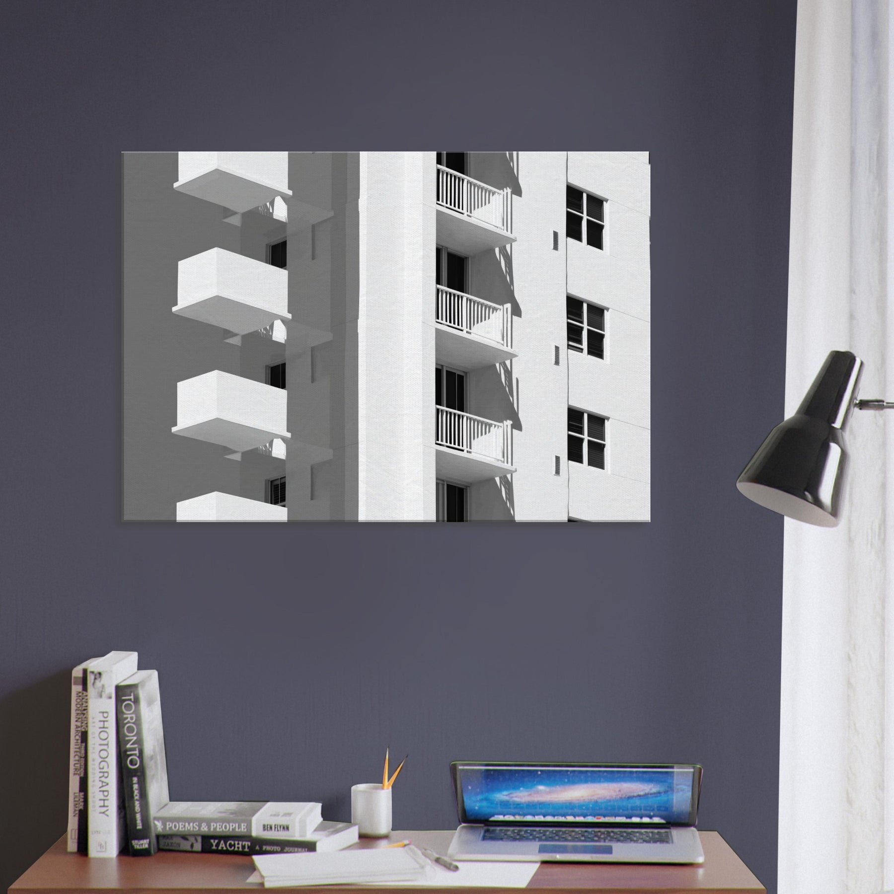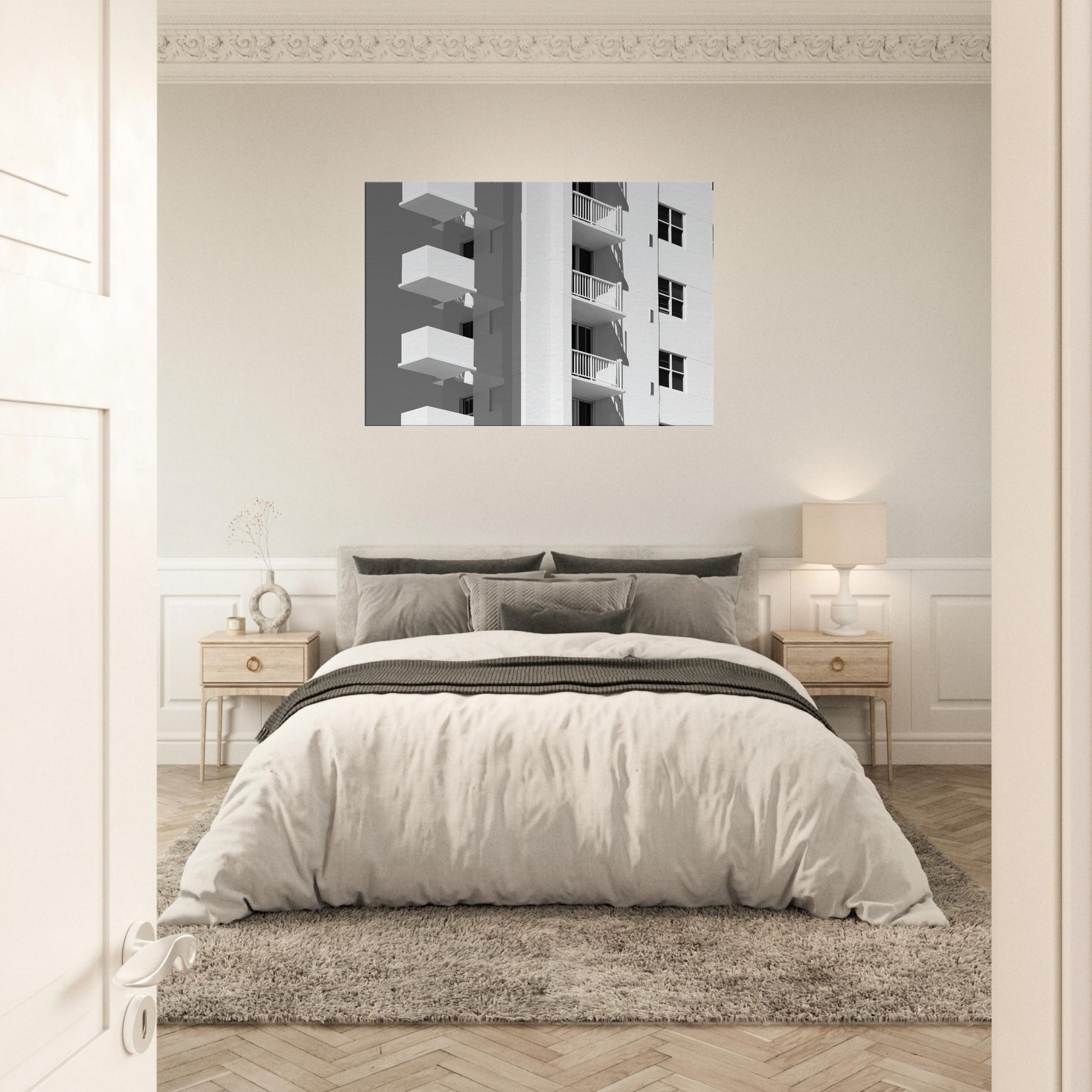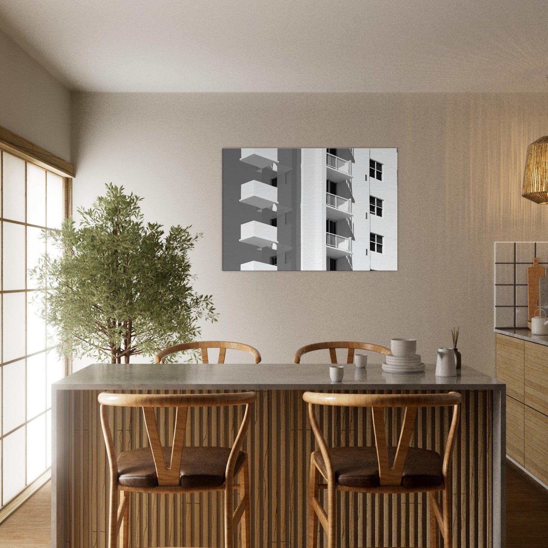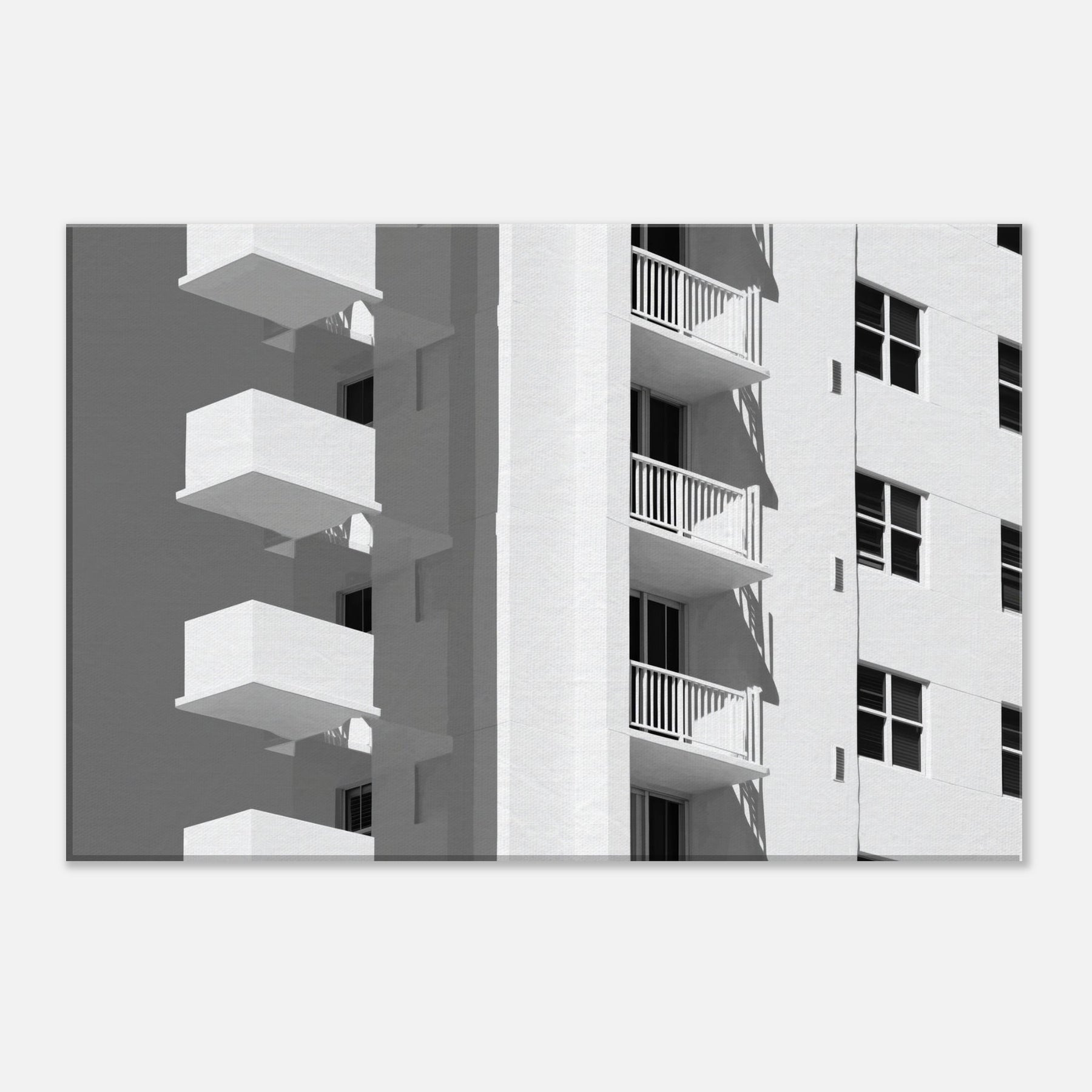 Miami rendered in light, this piece unfolds as a quiet chorus of balconies and sunlit façades. The clean lines and generous negative space invite the eye to rest, tracing shadows that fall with a languid confidence. In a living room, it becomes a calm counterpoint to daily bustle a cool, monochrome breeze that sharpens focus and makes walls breathe. The atmosphere sweetly evokes coastal warmth and city rhythm, turning any space into a gallery of modern grace and the timeless allure of Miami.