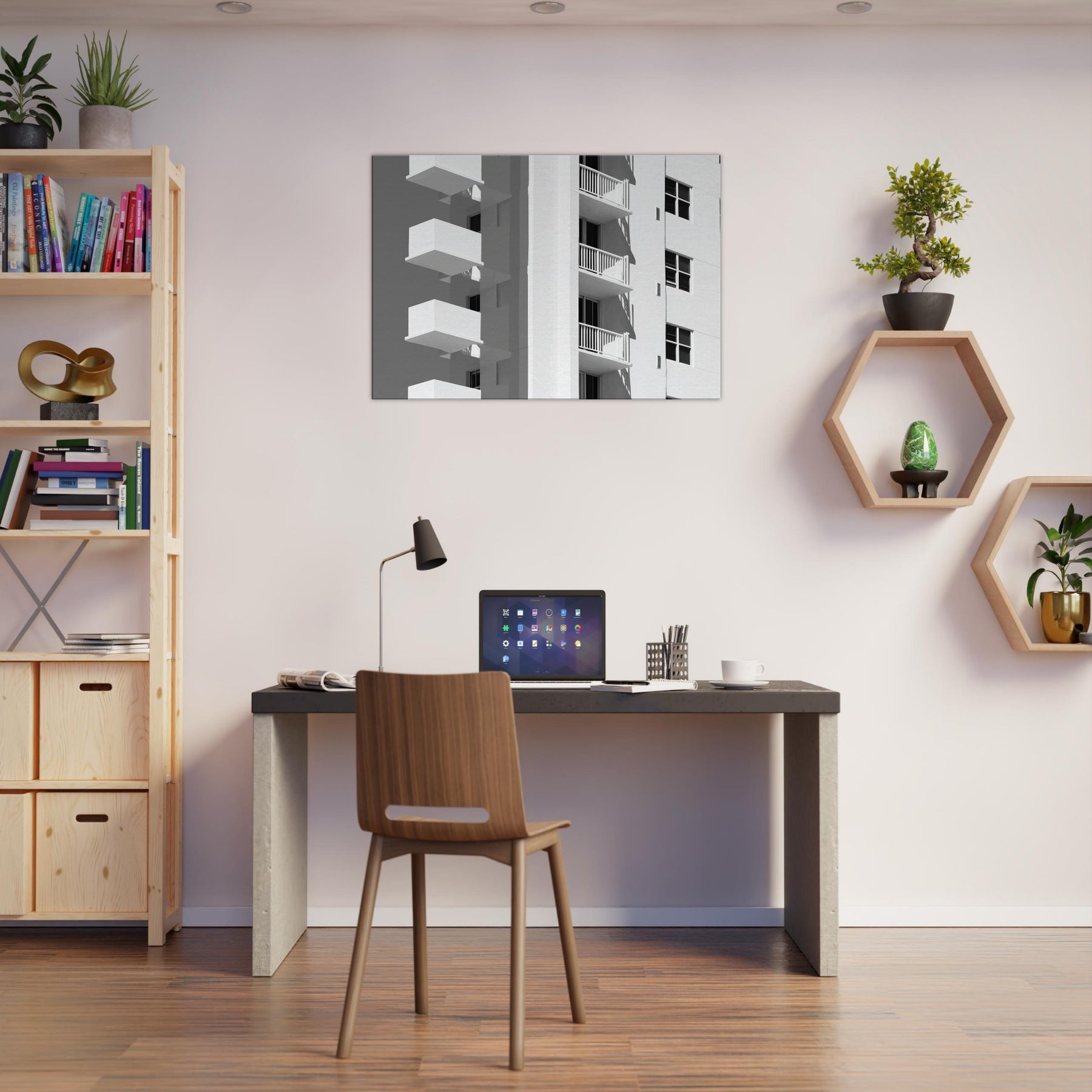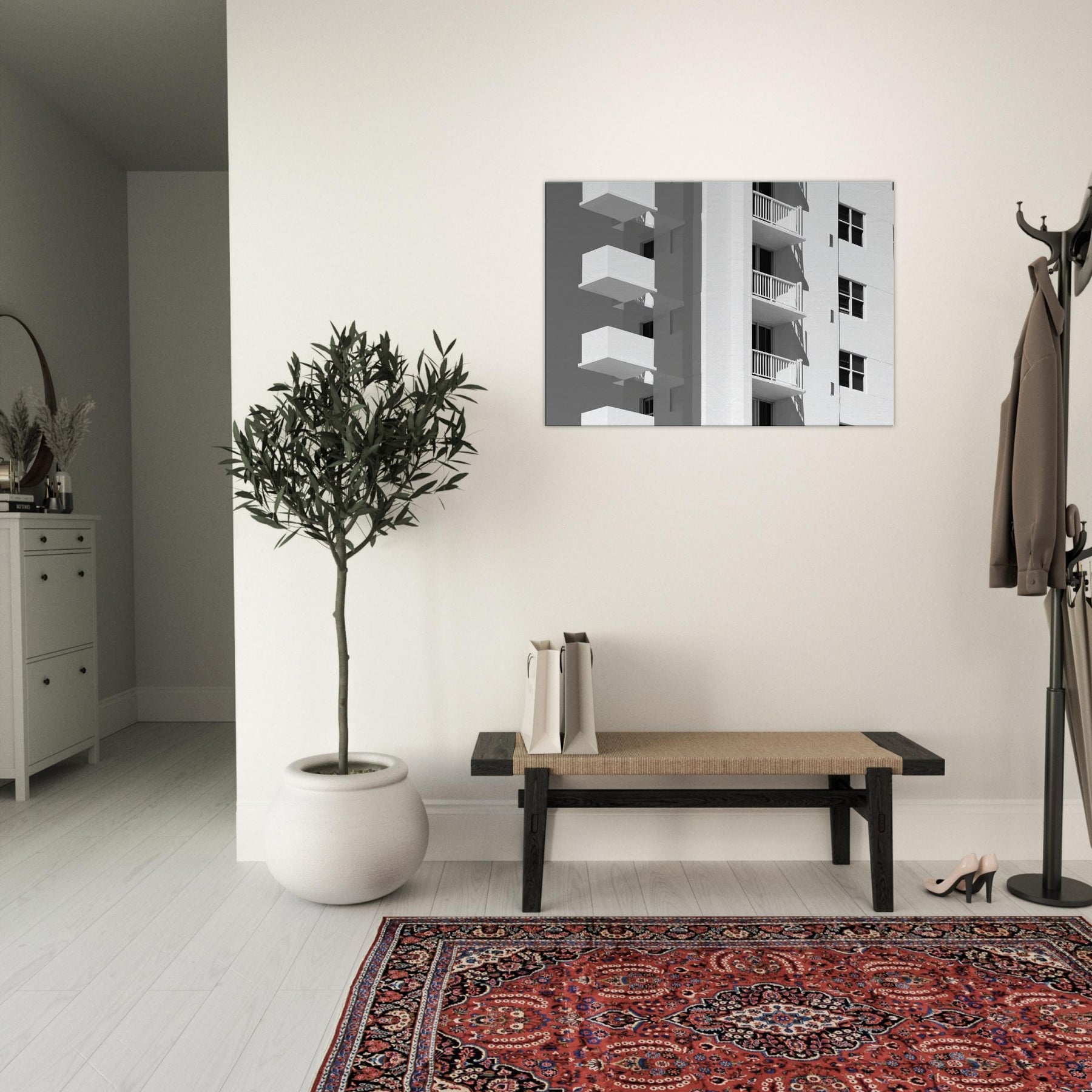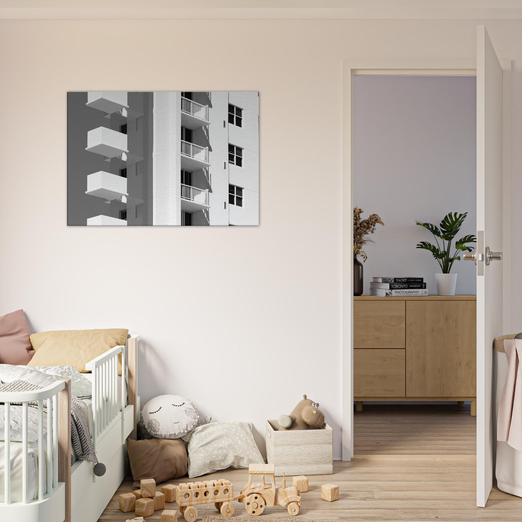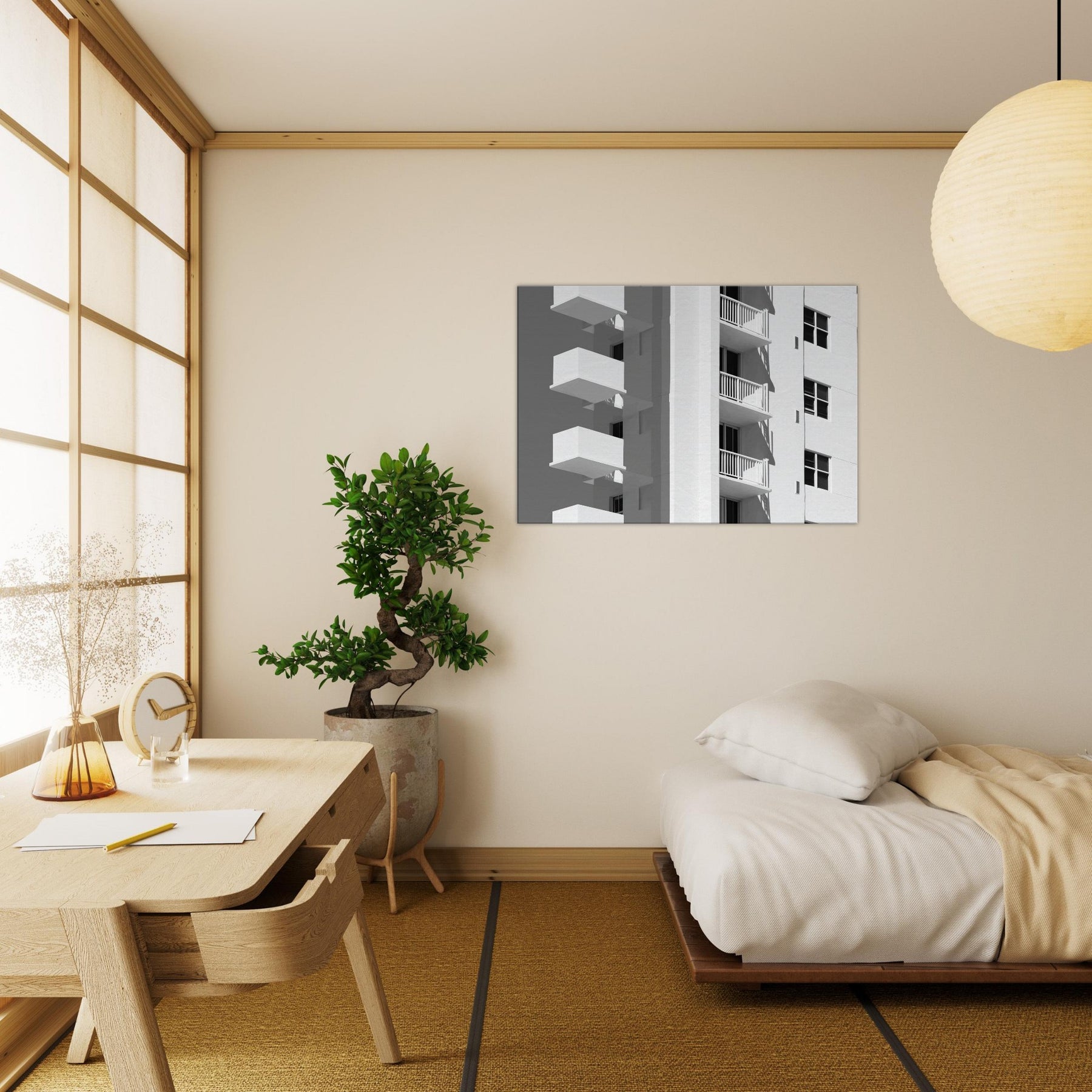 Miami rendered in light, this piece unfolds as a quiet chorus of balconies and sunlit façades. The clean lines and generous negative space invite the eye to rest, tracing shadows that fall with a languid confidence. In a living room, it becomes a calm counterpoint to daily bustle a cool, monochrome breeze that sharpens focus and makes walls breathe. The atmosphere sweetly evokes coastal warmth and city rhythm, turning any space into a gallery of modern grace and the timeless allure of Miami.