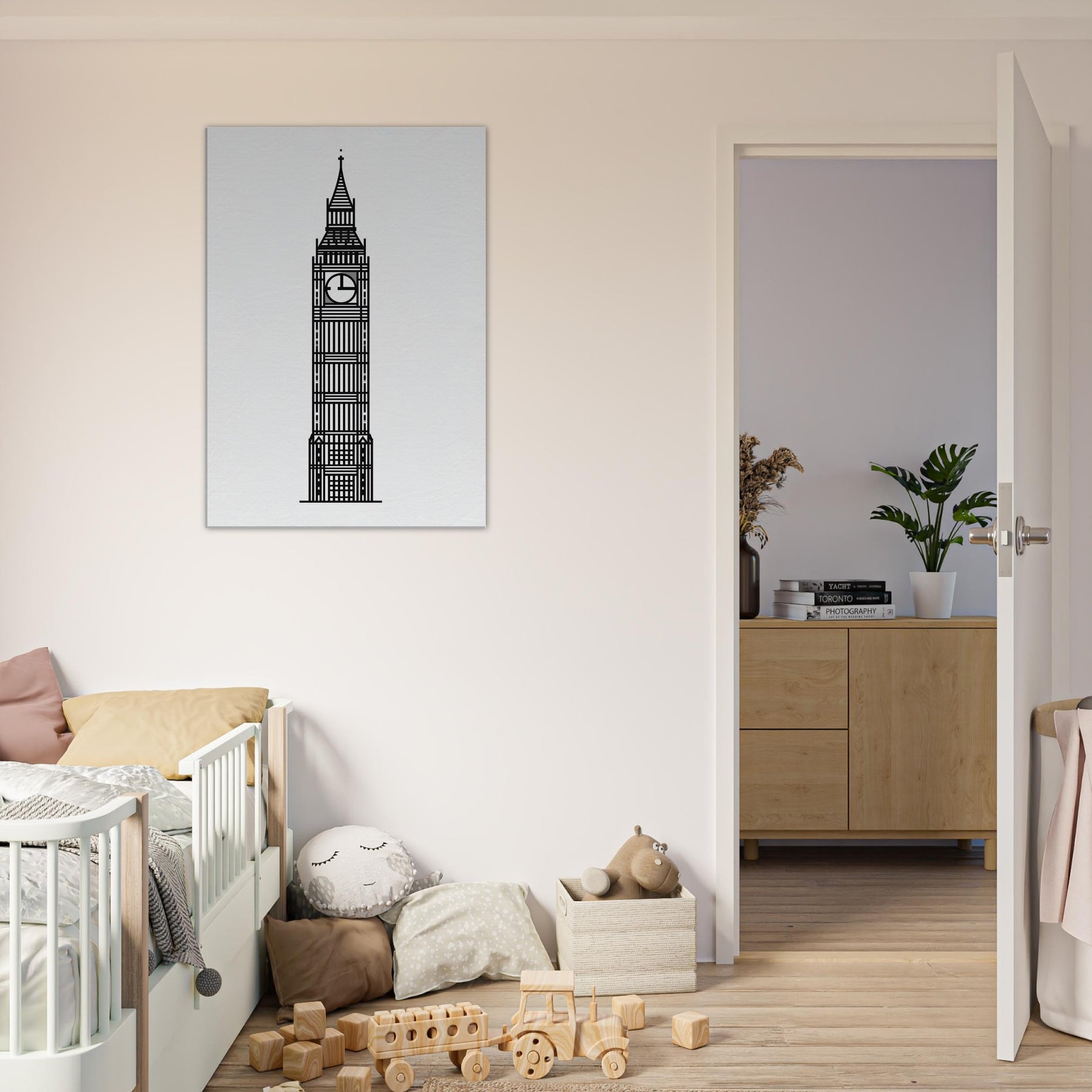 Step into a refined London dusk with this line art of Big Ben. The bold black contours thread light into shadow, turning a familiar landmark into a rhythm of verticals and circles. The clean simplicity invites calm to the busiest room, letting a seating area breathe and a wall glow with quiet confidence. In soft mornings or velvet evenings, the Big Ben silhouette harmonizes with modern decor, pairing architectural precision with poetic air ideal for living rooms, offices, or cozy corners seeking urban poetry.