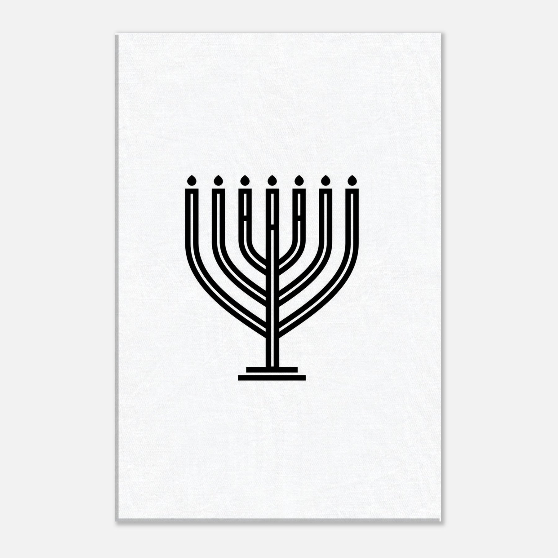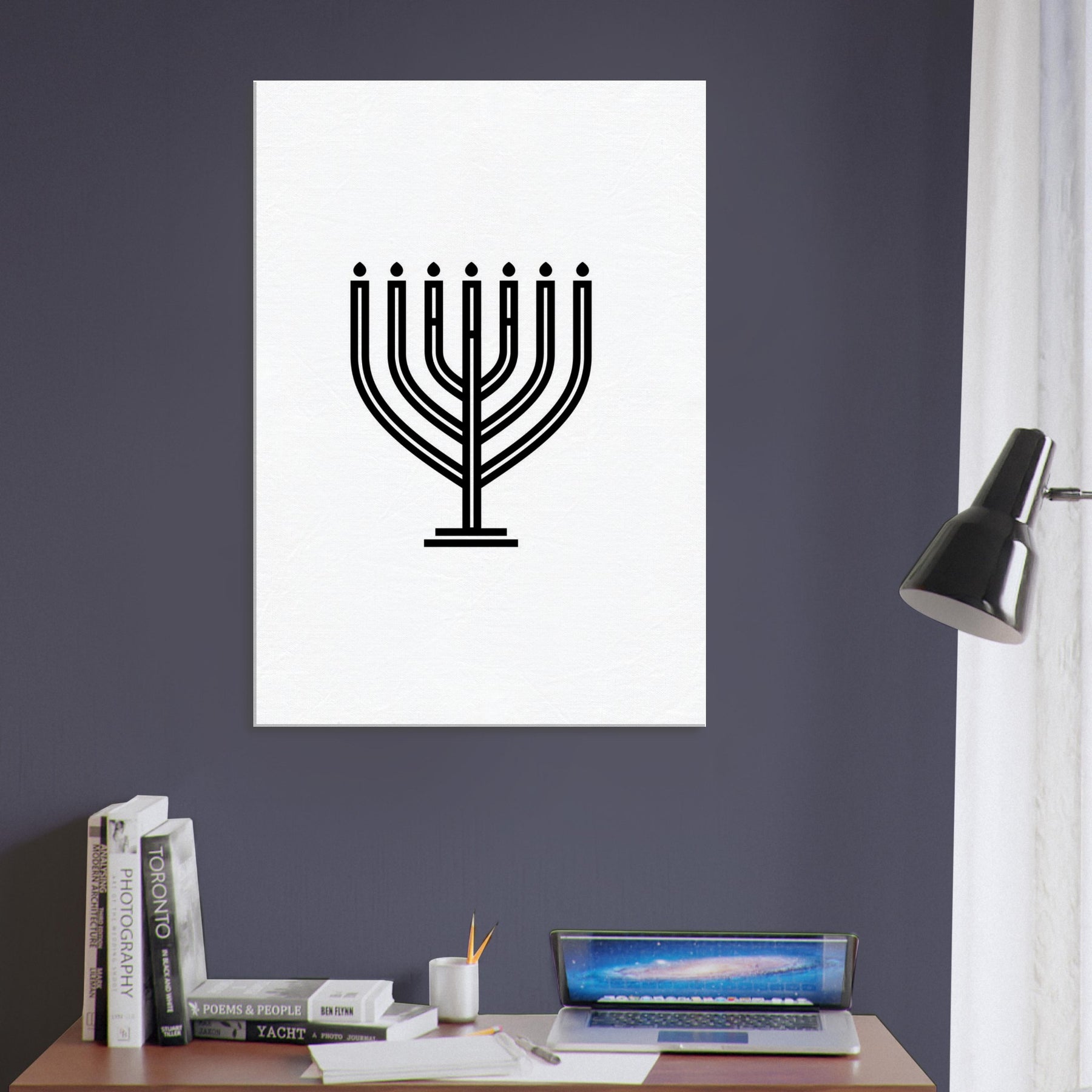 Within a single, clean stroke, this Menorah invites stillness into the room. The minimal line art renders flame and branches with quiet precision, letting the candlelight implied by negative space glow softly across the wall. The result is a modern, tranquil presence that pairs with warm woods or cool neutrals, turning everyday spaces into a sanctuary of focus and reflection. It's a scene of memory and vow, simple, elegant, and ready to illuminate any living space with subtle mysticism. The central subject is Menorah (Minimal Line).