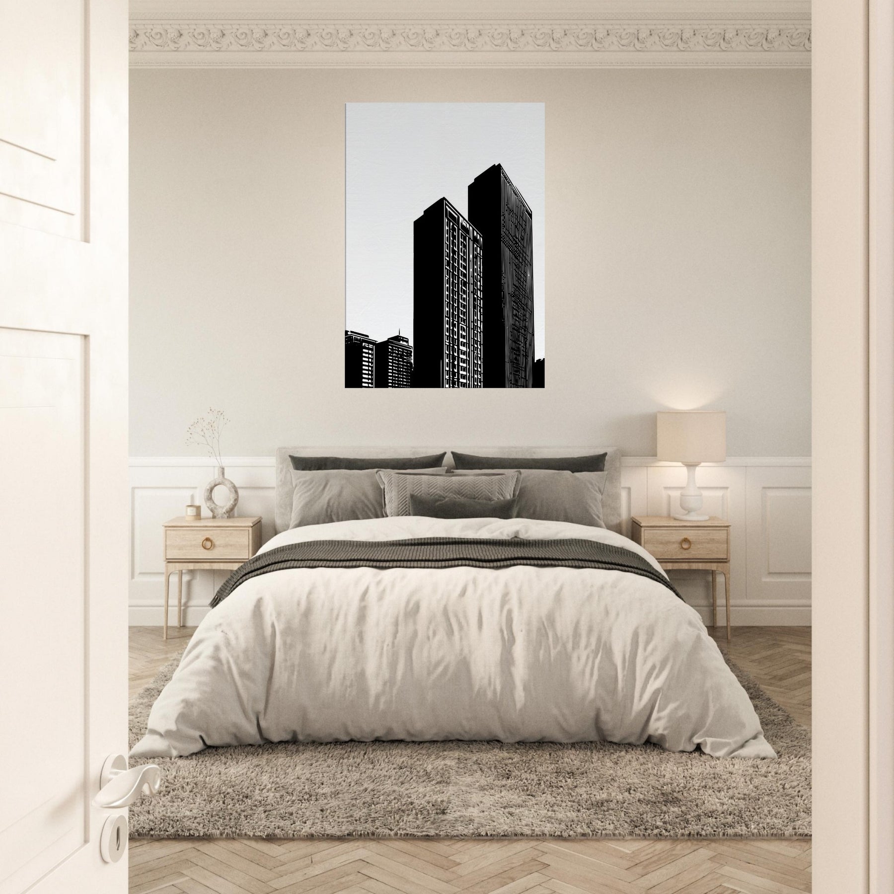 New York reveals itself in stark, elegant lines an urban heartbeat distilled into a single, decisive silhouette. The high contrast composition invites quiet contemplation, turning busy streets into still air and shadow. Hang this line art above a sofa or in a hallway to cast a refined, cinematic glow as daylight fades. The feeling of the city stays intimate and close, like a memory you can walk through, a reminder that architecture can be poetry for the walls you call home.