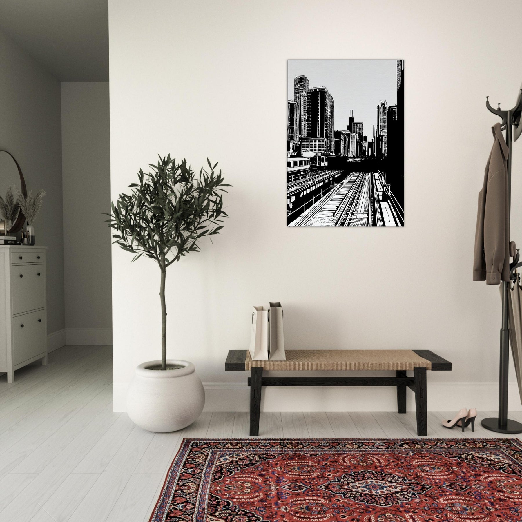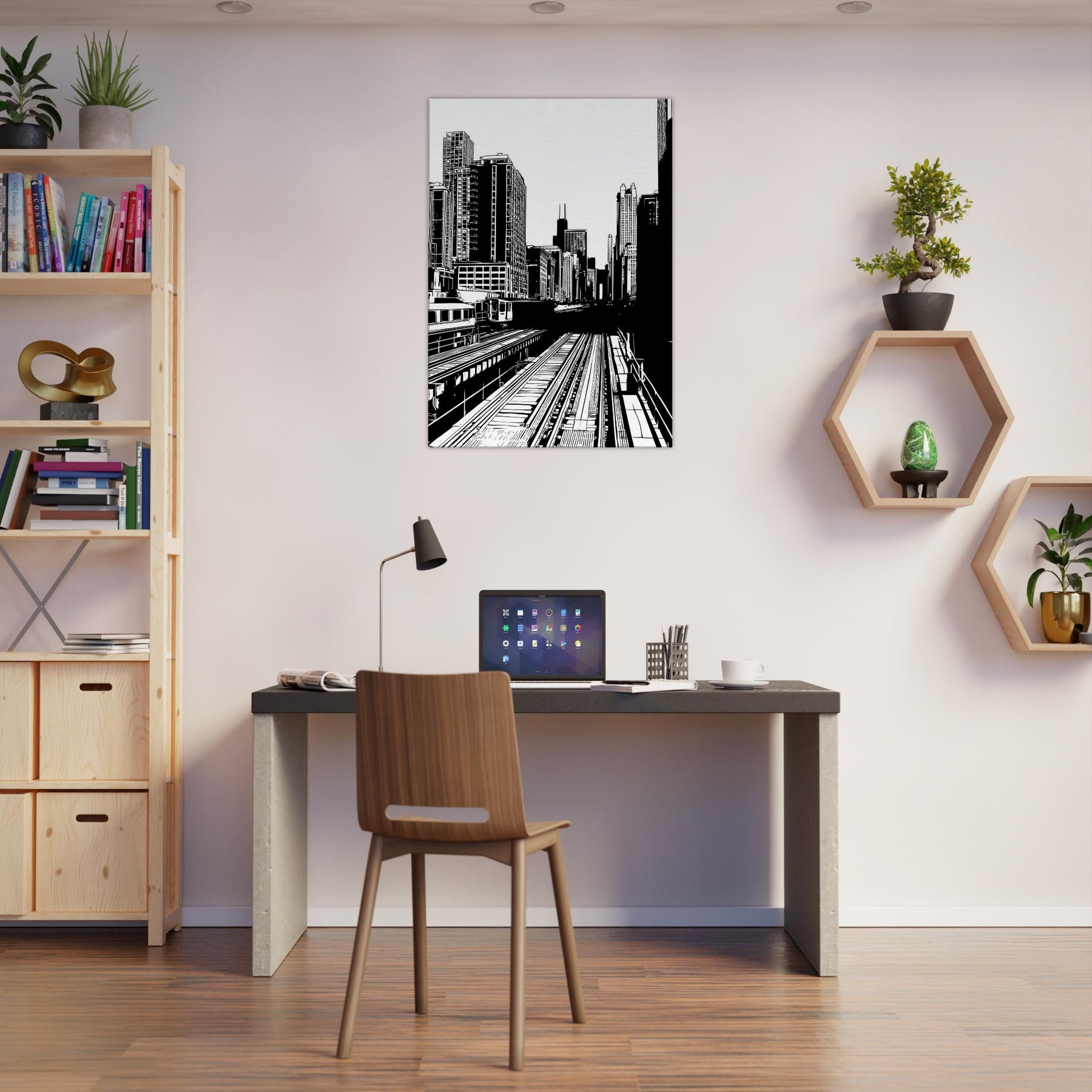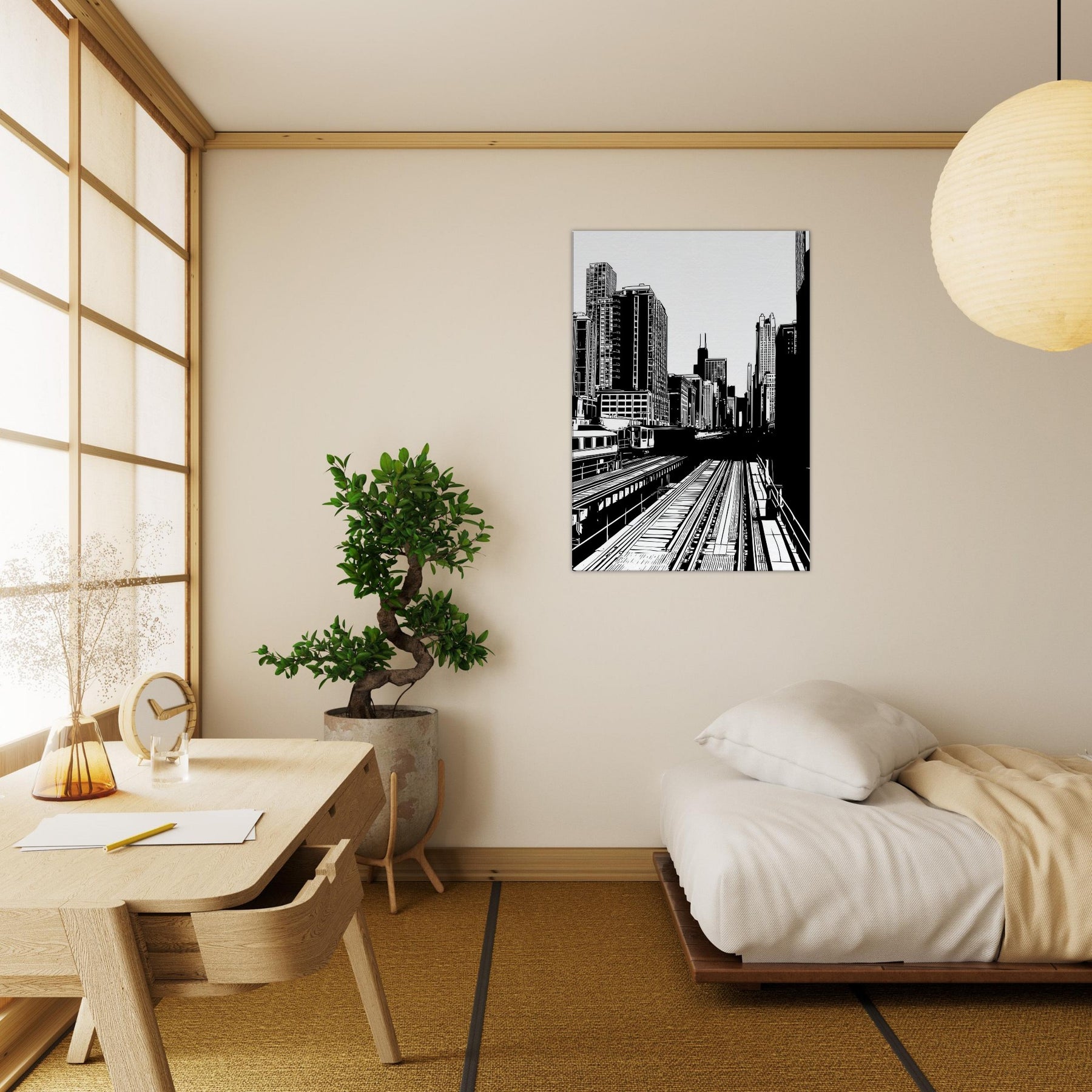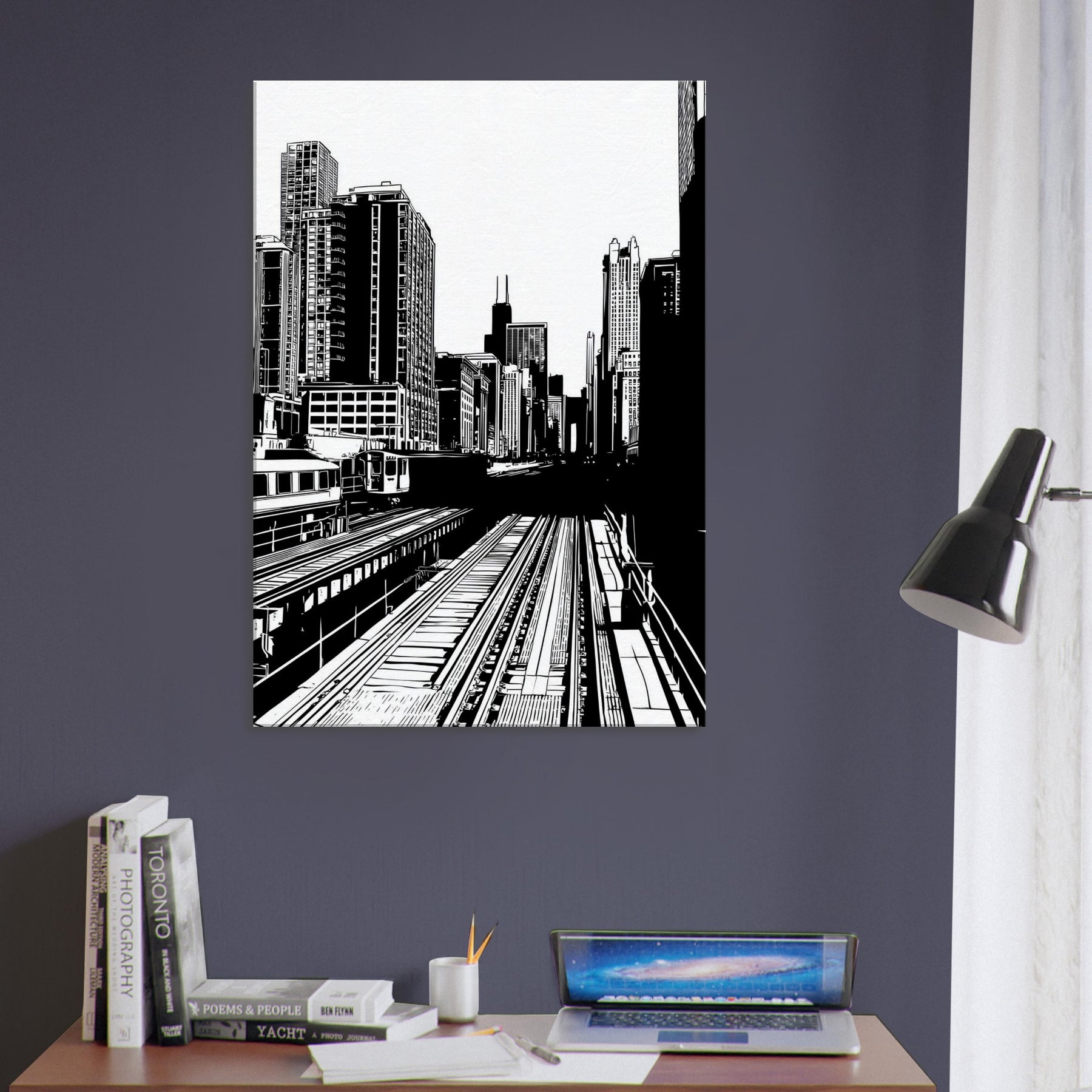 Chicago rises in bold, precise lines a city distilled to rhythm, light, and form. The stark contrast of black on white awakens each corner of a room, while the open negative spaces invite quiet moments of breath. This piece brings the pulse of an urban morning into your living space, offering clarity, balance, and a breeze of sophistication. Perfect above a sofa, it anchors conversations and adds timeless architectural elegance to any room.