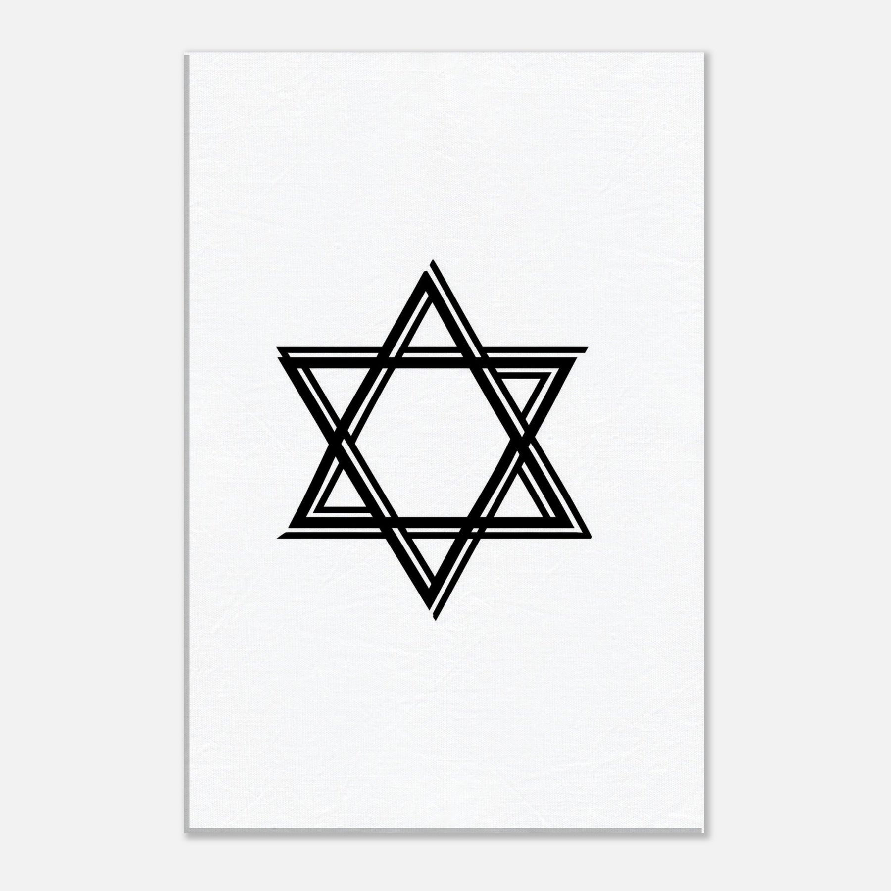 Star of David, rendered in twin, unbroken lines, this minimal line artwork invites quiet reflection. The geometric star repeats and overlaps with graceful restraint, creating a sense of balance and motion that feels both ancient and contemporary. Hung in a living room or study, it casts a calm, almost meditative atmosphere, catching the light and drawing the eye along its clean arcs. A sophisticated focal point for spaces that value clarity, intention, and spiritual resonance. The central subject is Star of David (Minimal Line).