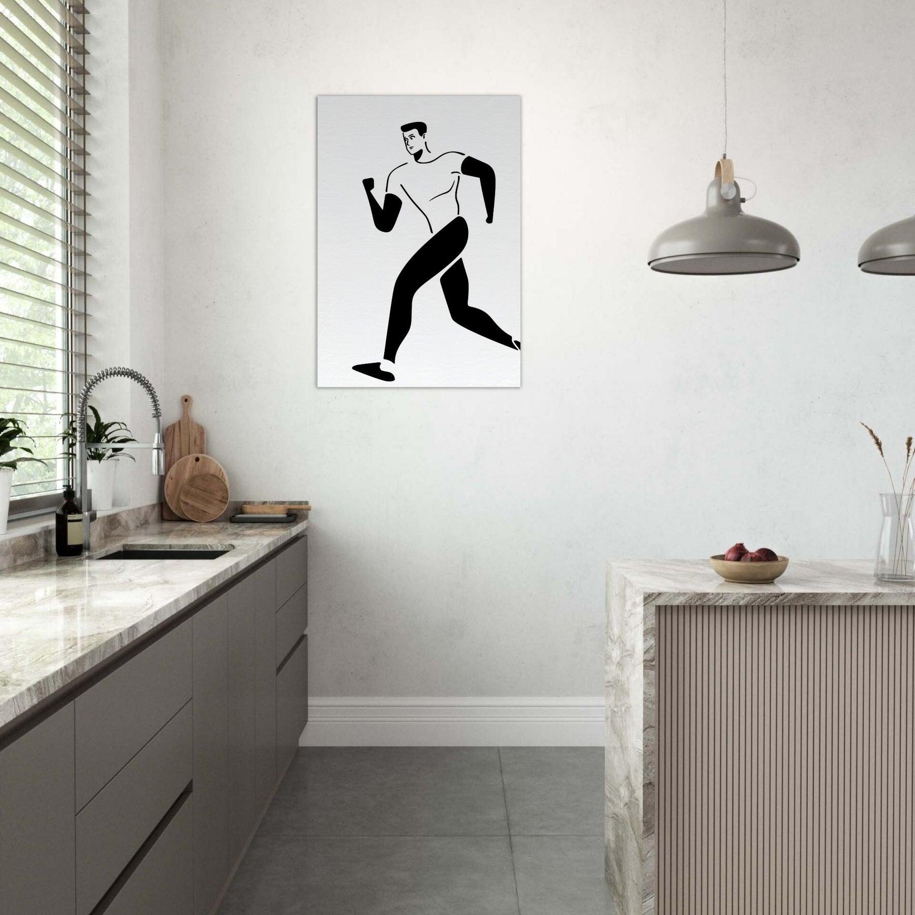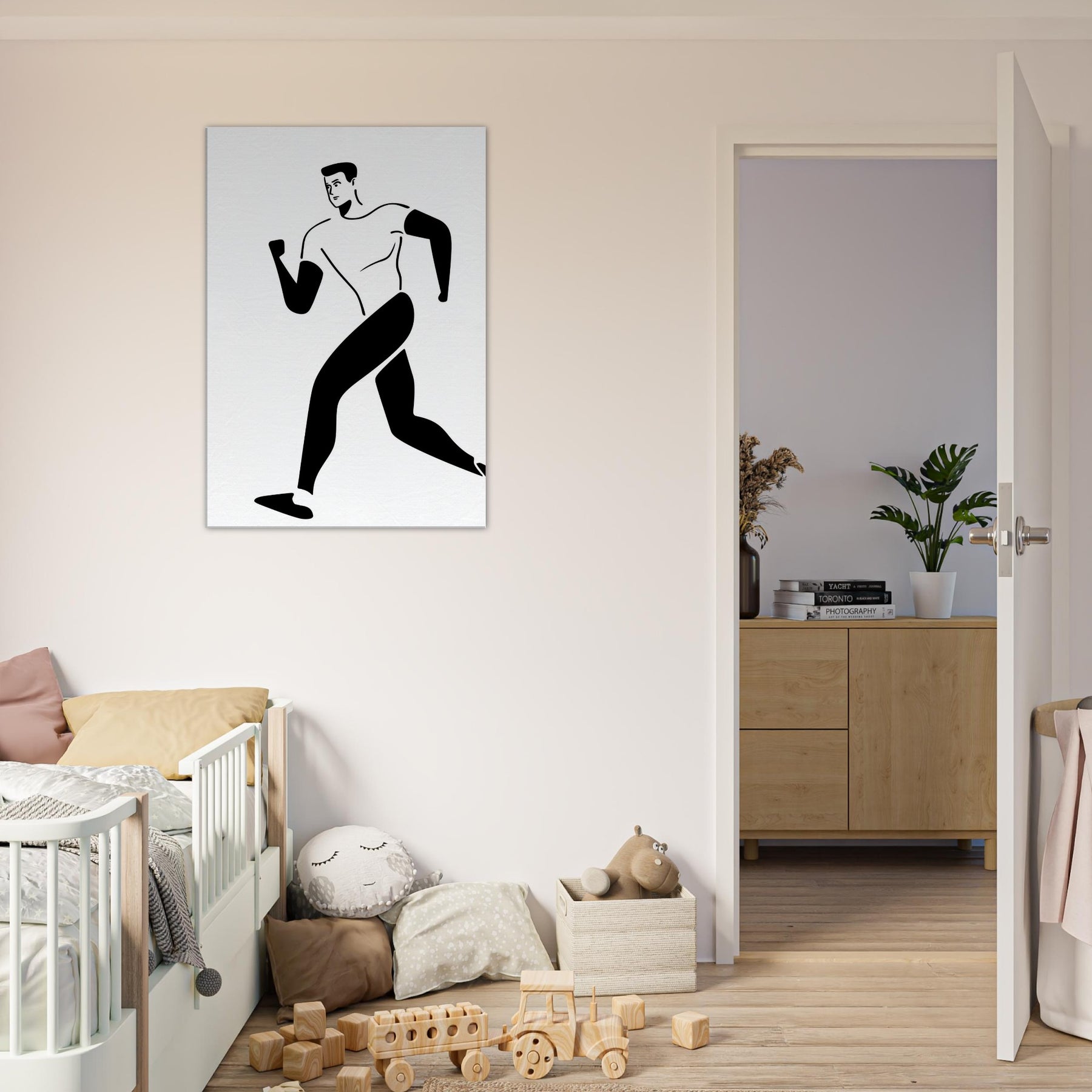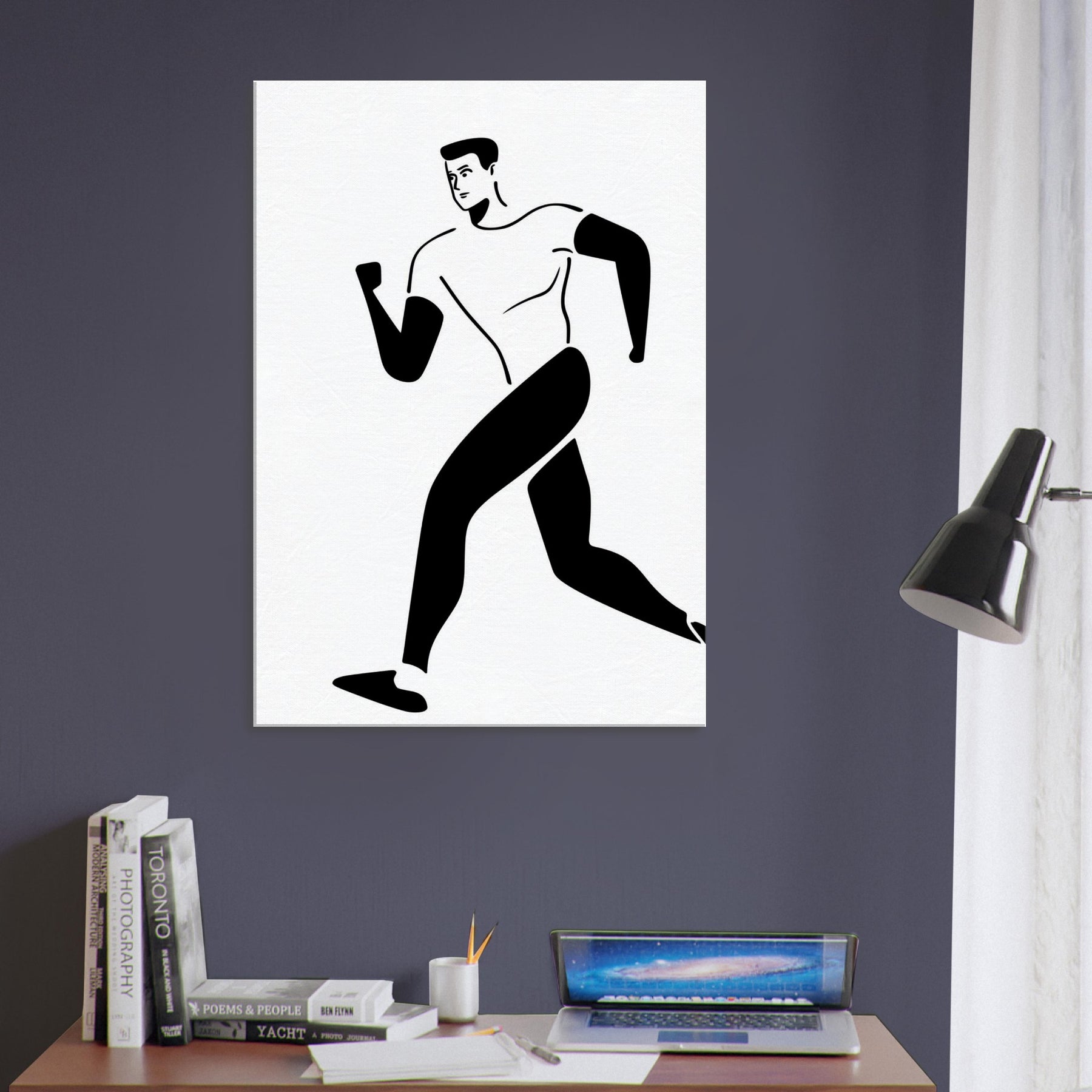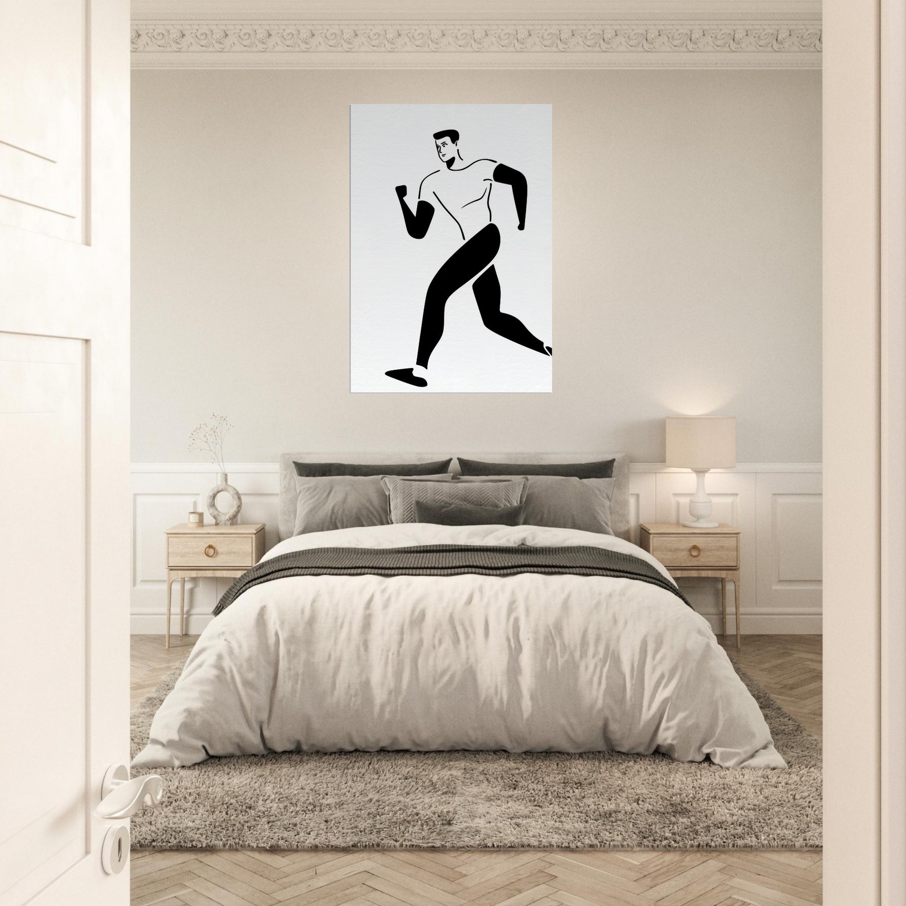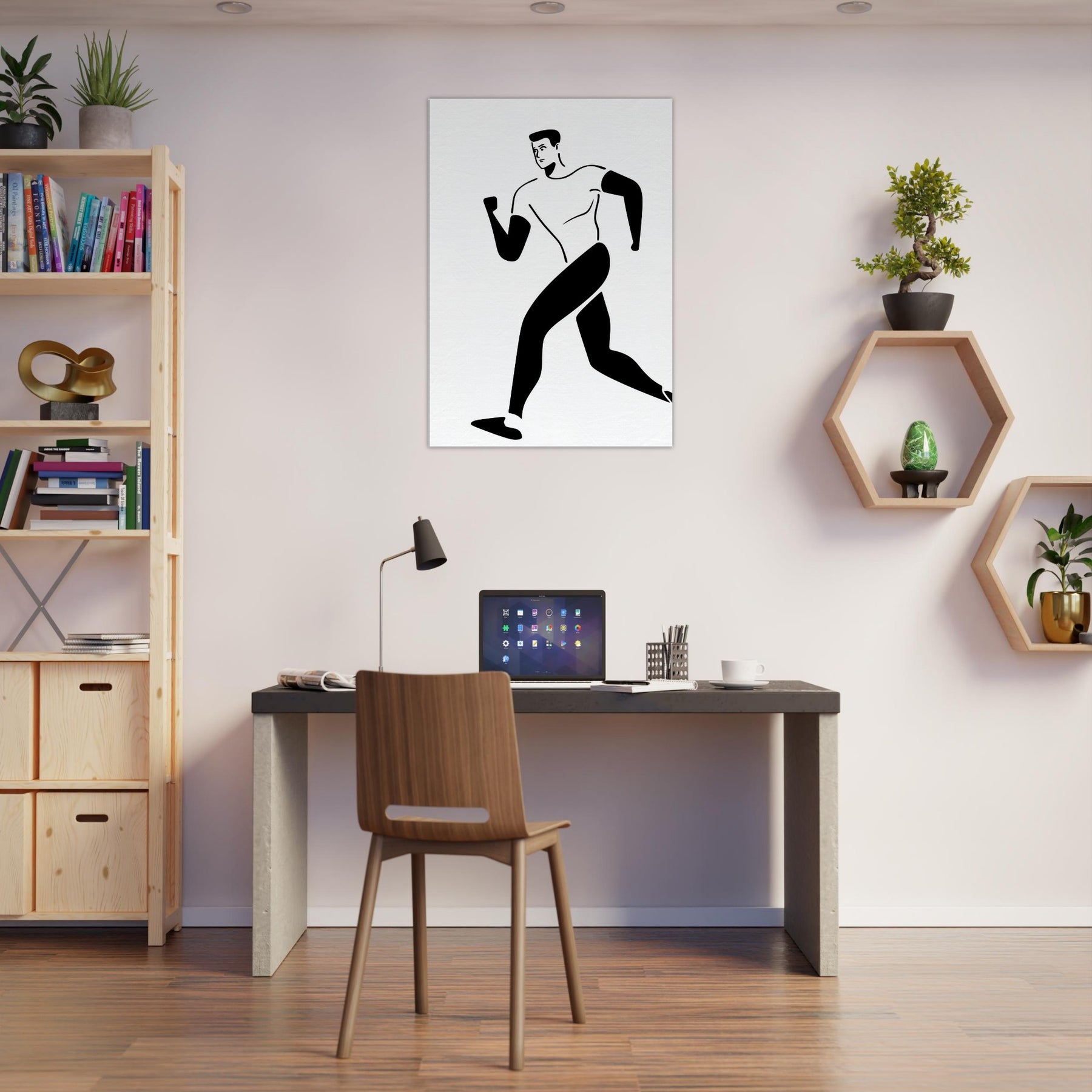 An energetic study in restraint, this piece centers the Runner in Motion with clean, unbroken lines that ripple across the page. The bold black silhouette suggests momentum and focus, while negative space hints at breath and rhythm. It brings a sense of movement to any room, inviting the eye to travel along the stride and settle in a moment of quiet power. Perfect for a minimalist living room, study, or hallway, it adds kinetic elegance without shouting for attention.