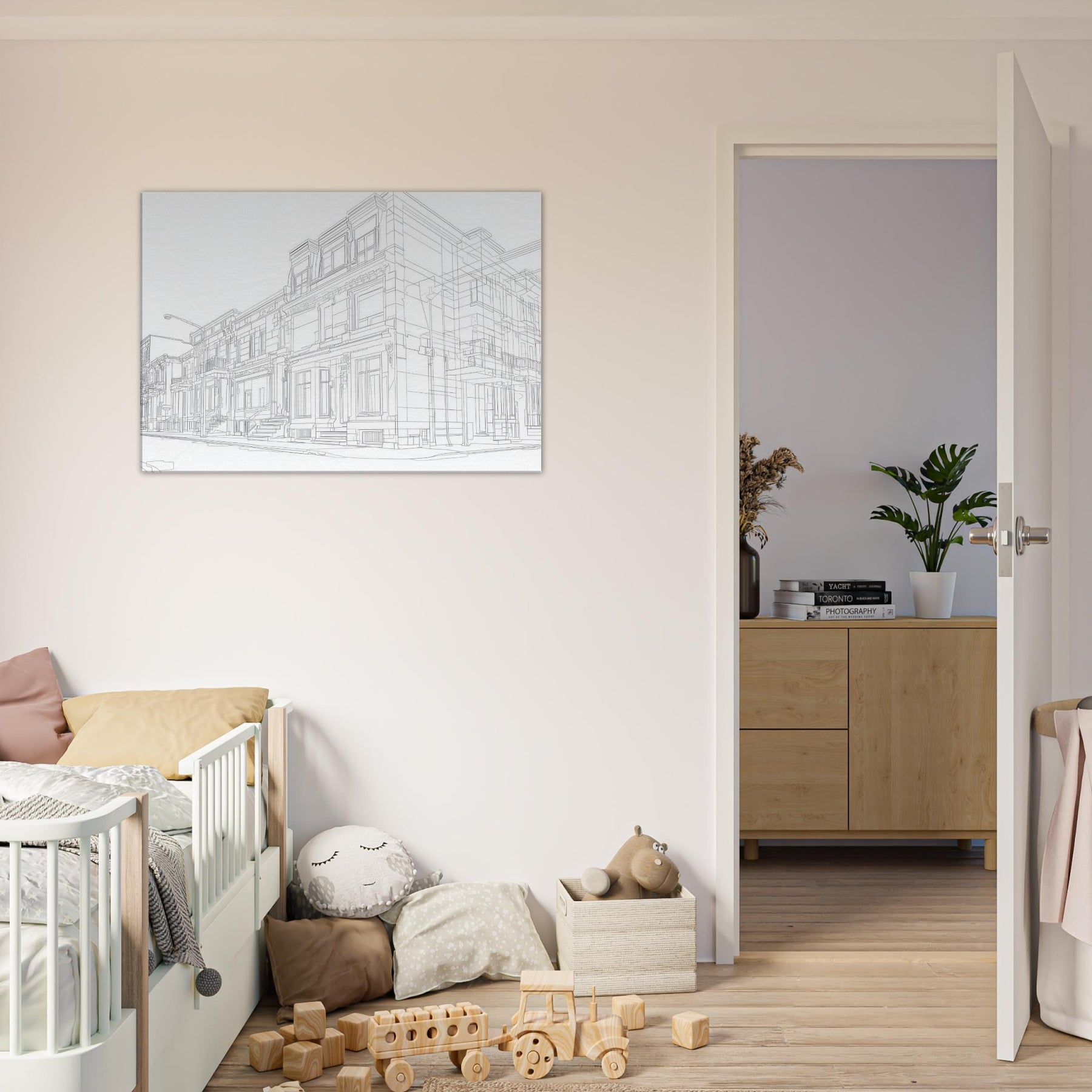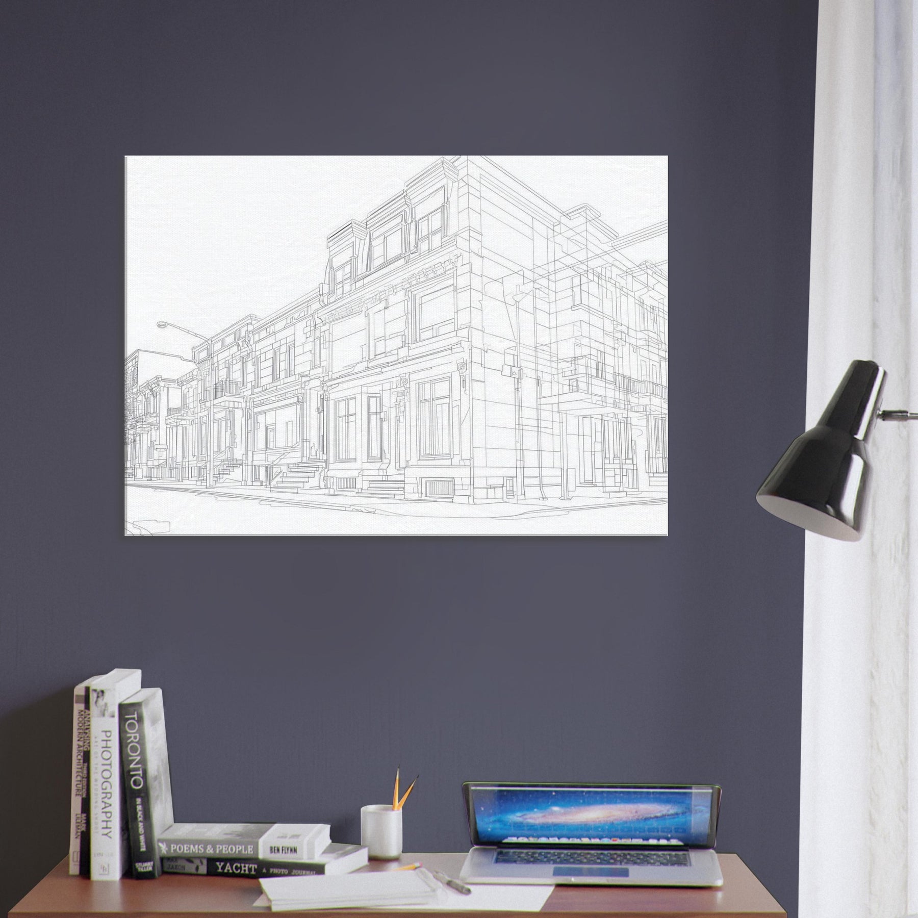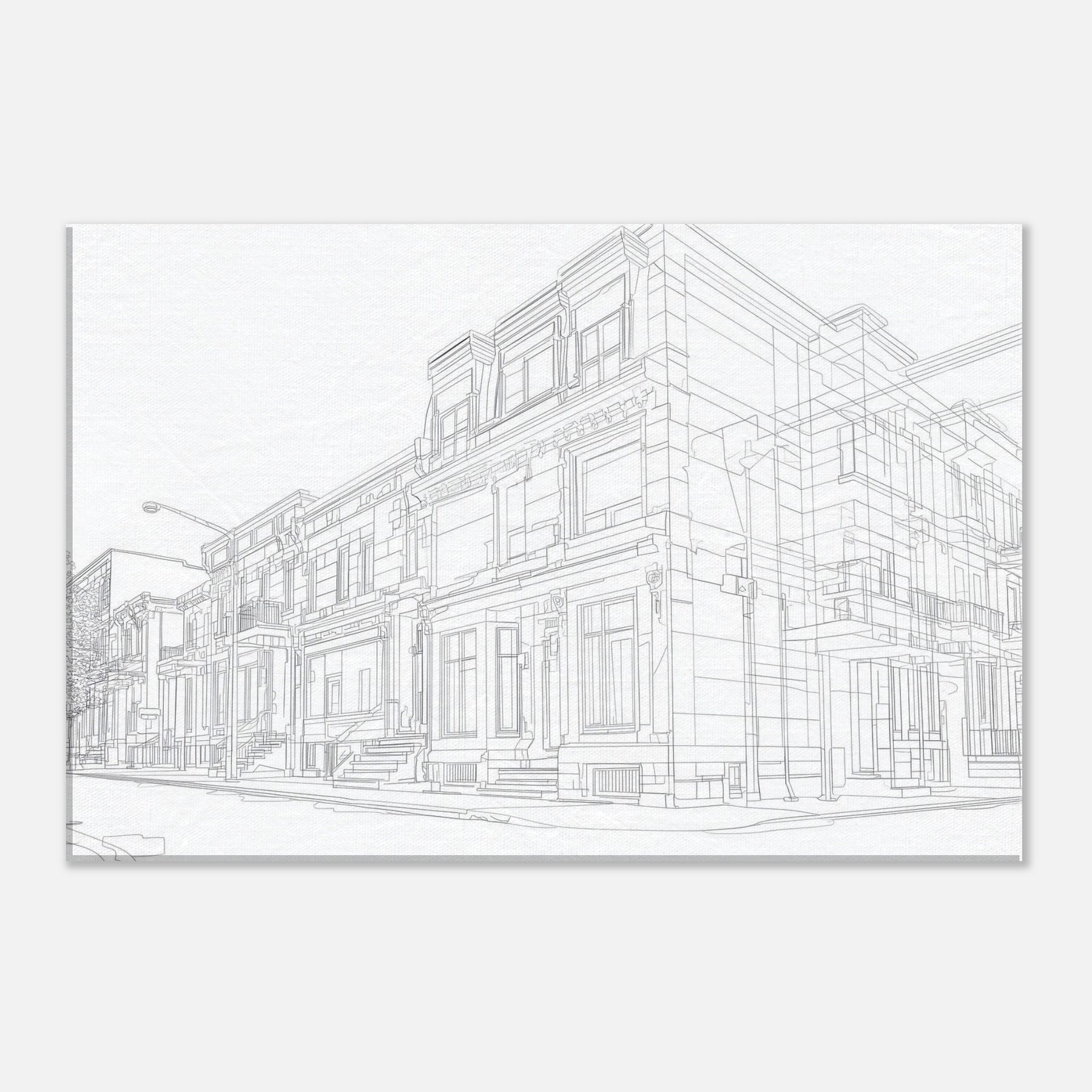 Immerse your space in the quiet grandeur of Montreal's streets, rendered in elegant line art. This cityscape gathers delicate contours, turning architectural detail into a breathing atmosphere polished windows, stoops, and lampposts tracing a rhythm that moves with you. The minimalist yet intimate composition invites reflection, turning a corner of the room into a memory of evening walks and café chatter. Perfect over a sofa or entryway, it adds a refined urban poetry to everyday living.