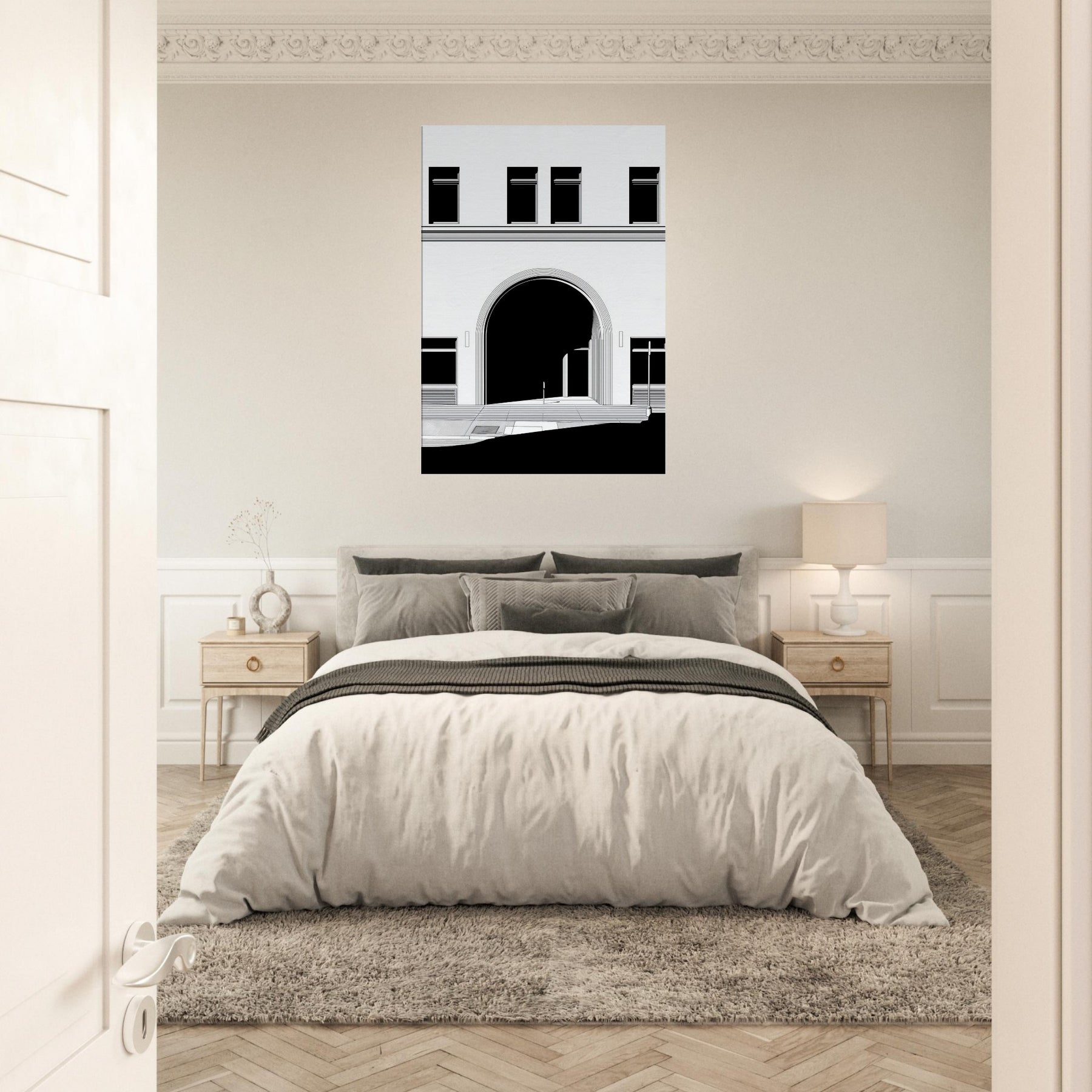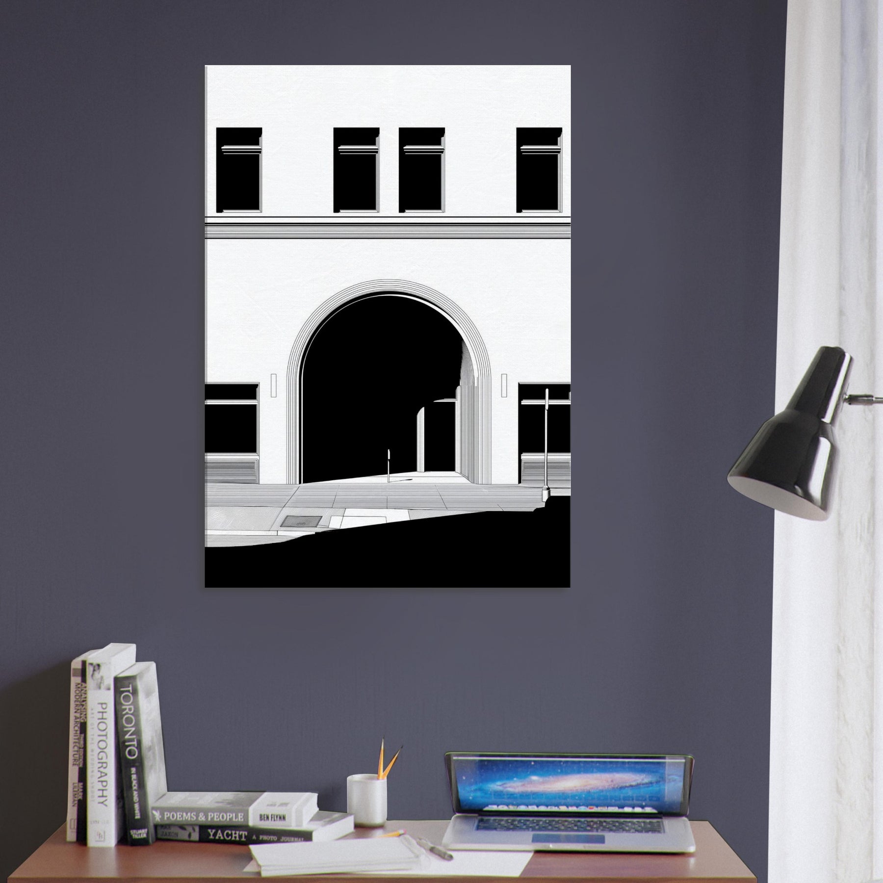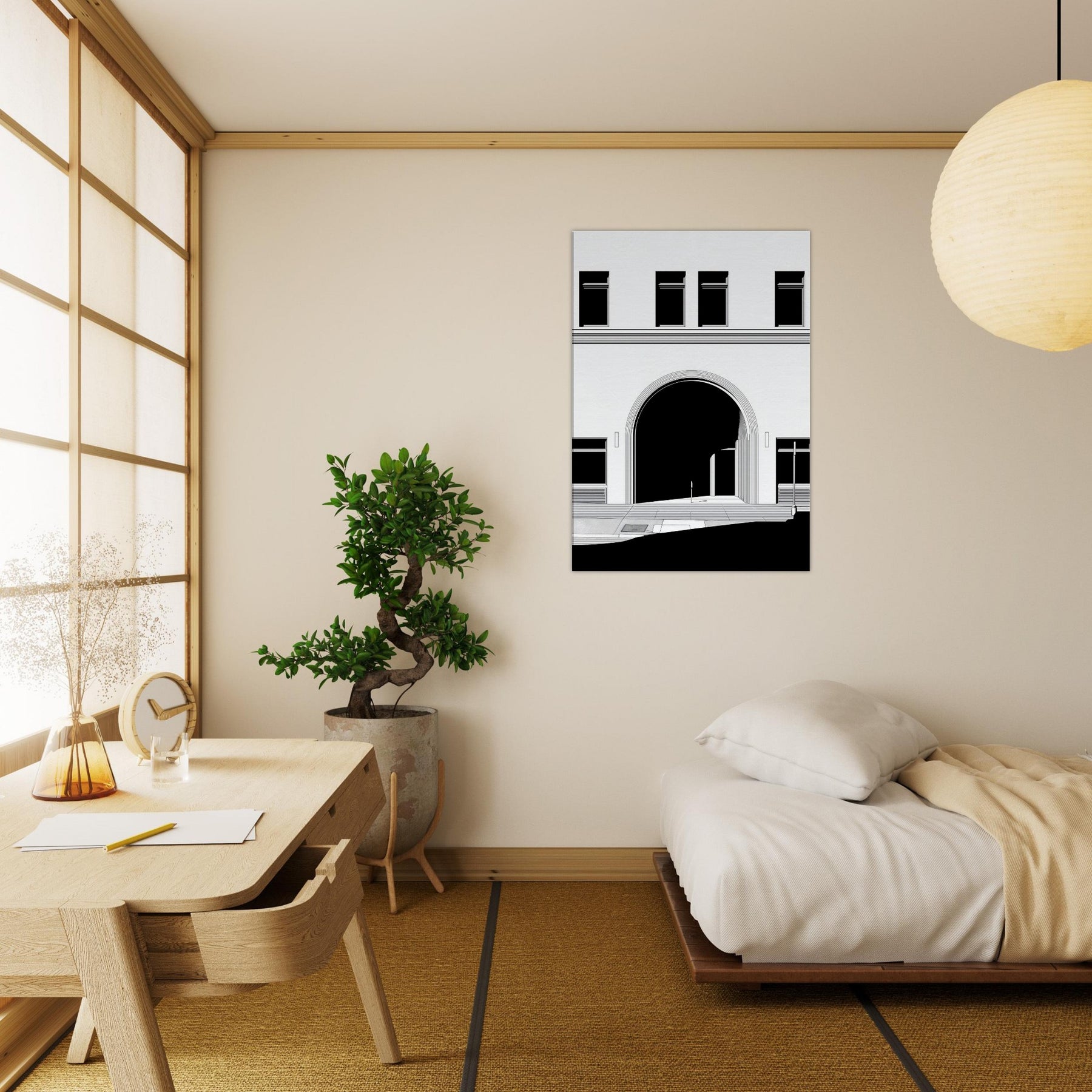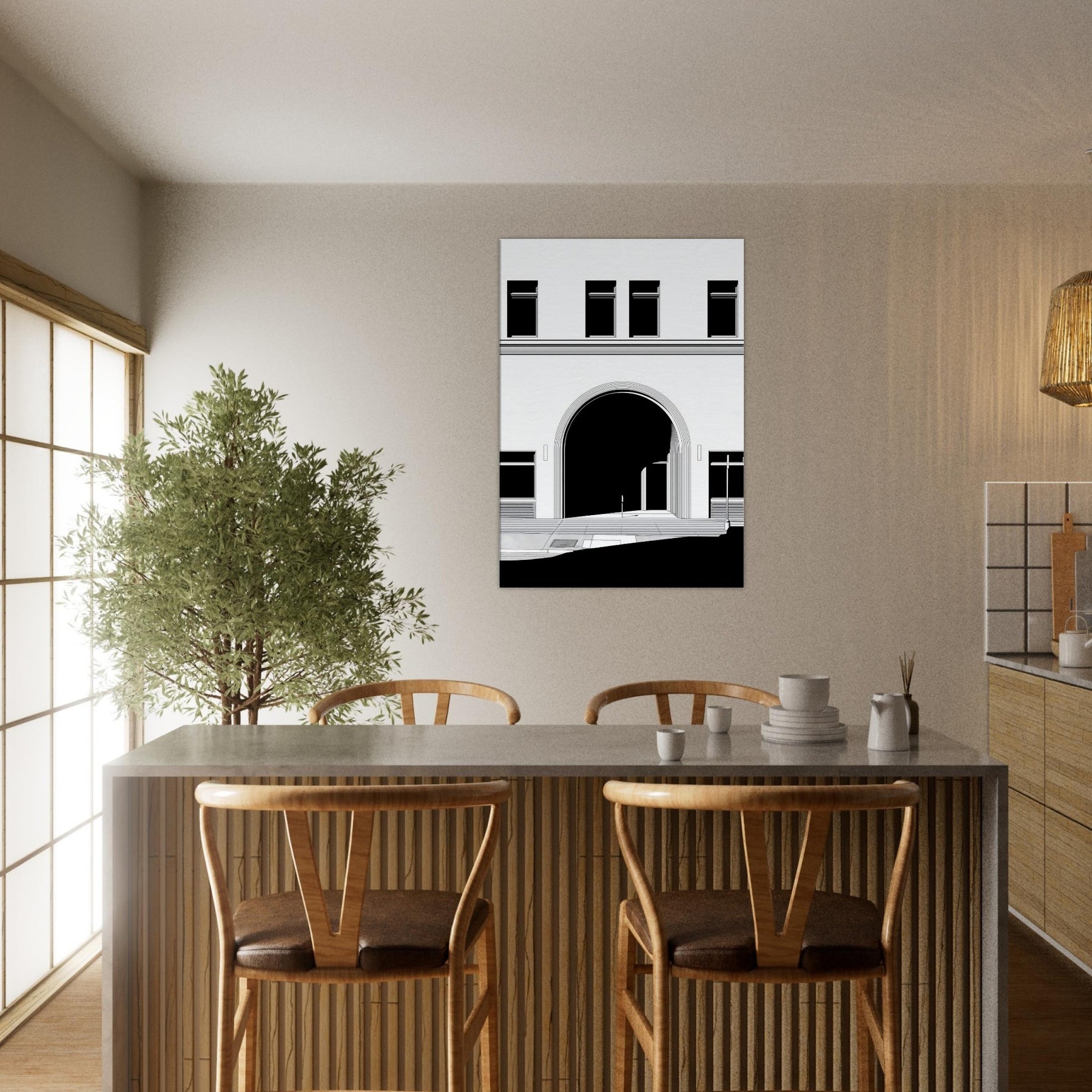 Step into a quiet street where light arcs over a stark Moon Gate rendered in clean line work. This architectural study fuses restraint with rhythm, inviting calm to spring from any wall. The contrast of black and white creates depth and shadow, while the arch suggests openness and movement. Perfect for a living room, study, or hallway, it lends a serene focal point that heightens color, texture, and everyday moments.