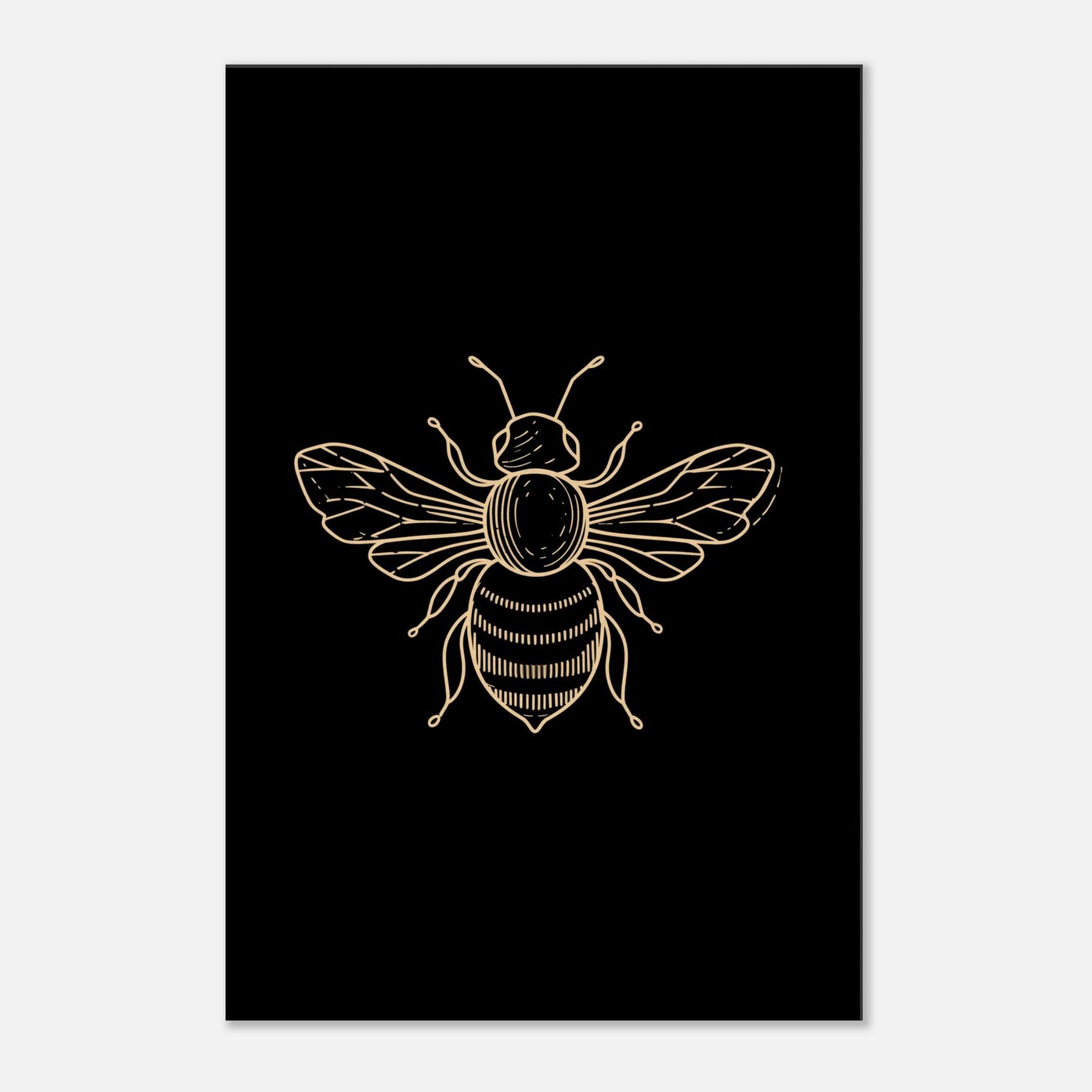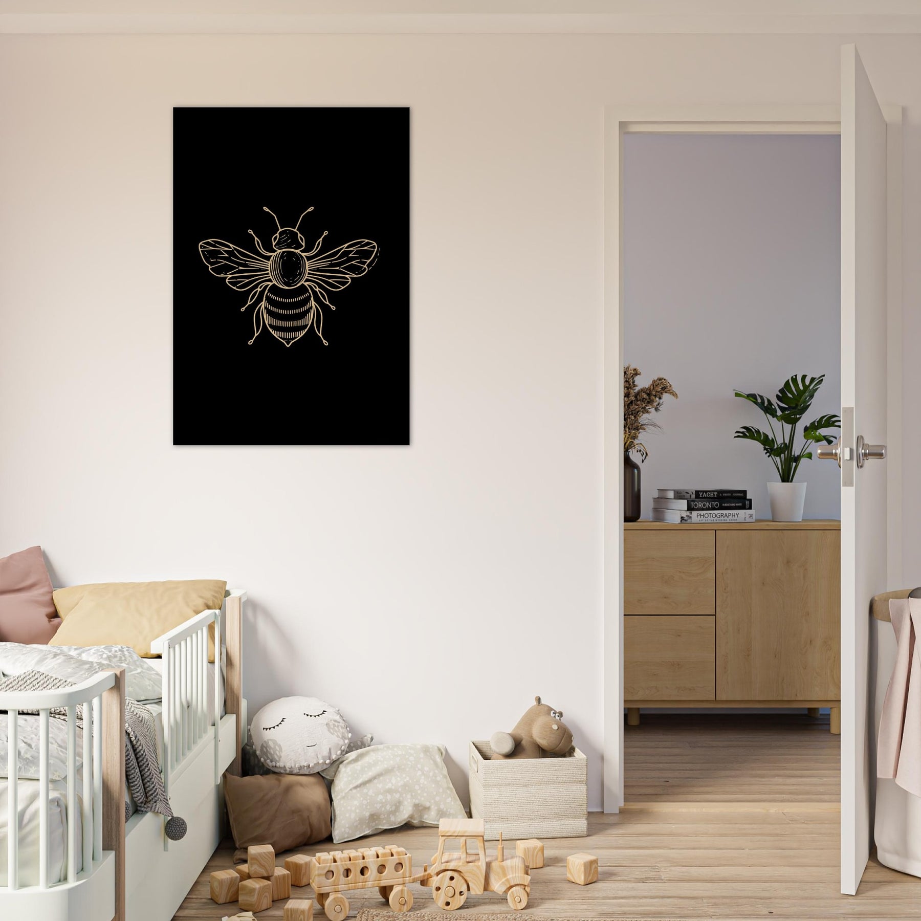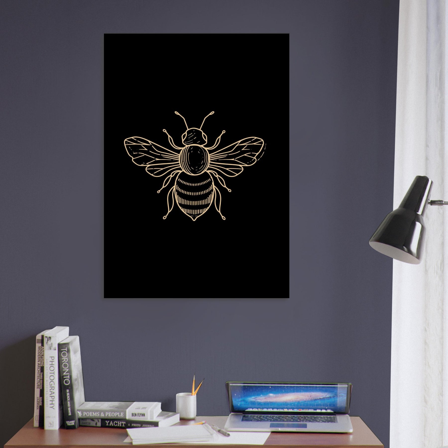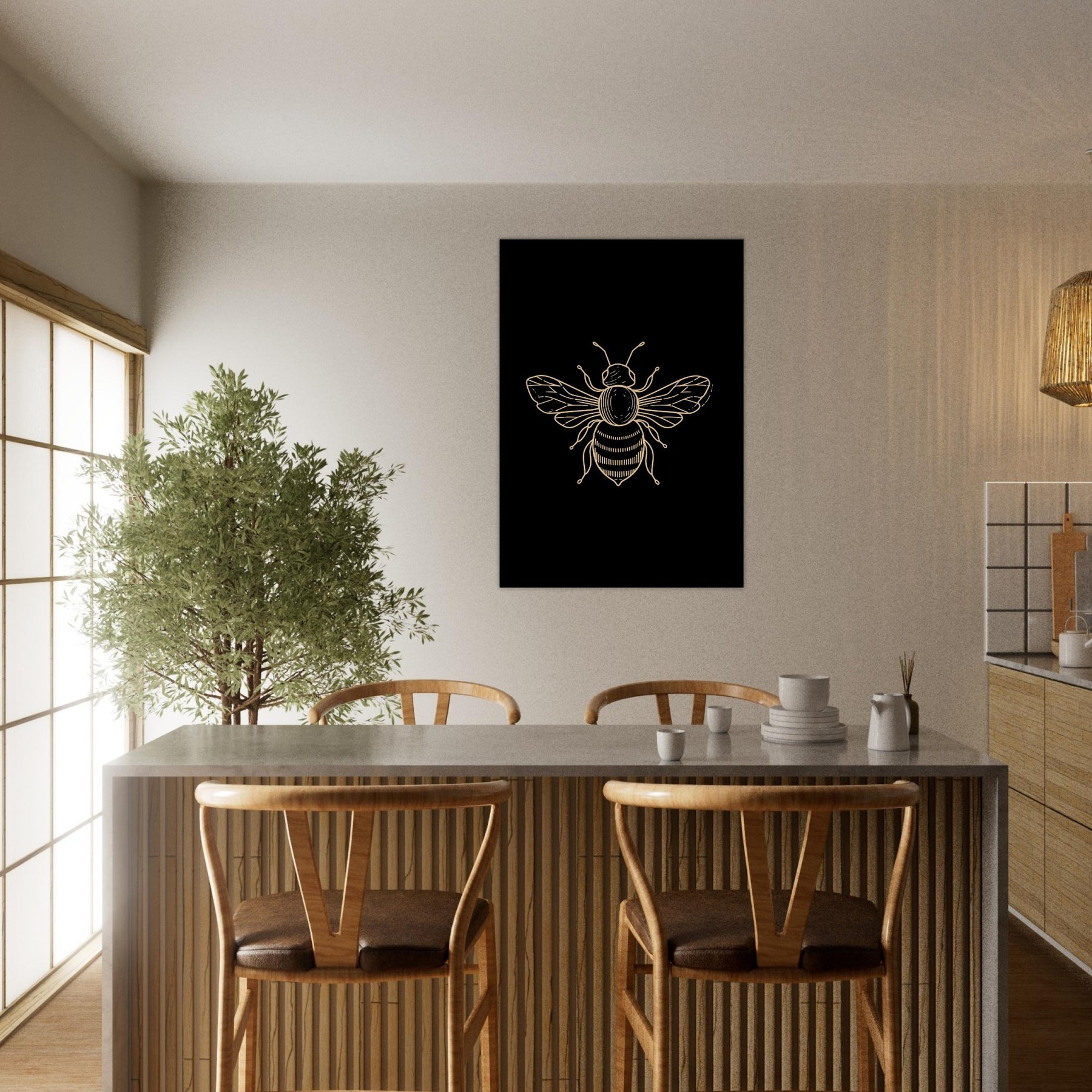 Drawn in delicate lines, this bee feels both ancient and modern, a quiet beacon hovering over a midnight field. The warm ink glows against the black, inviting contemplation and calm. The minimalist contour whispers of nature's diligence and the sweetness of momentary flight, turning any wall into a window of stillness. Perfect above a sofa or in a hallway, it pairs with soft textures and warm wood, adding kinetic grace without clutter. Let the subject, the bee, busy at its timeless work, anchor your space with grace.
