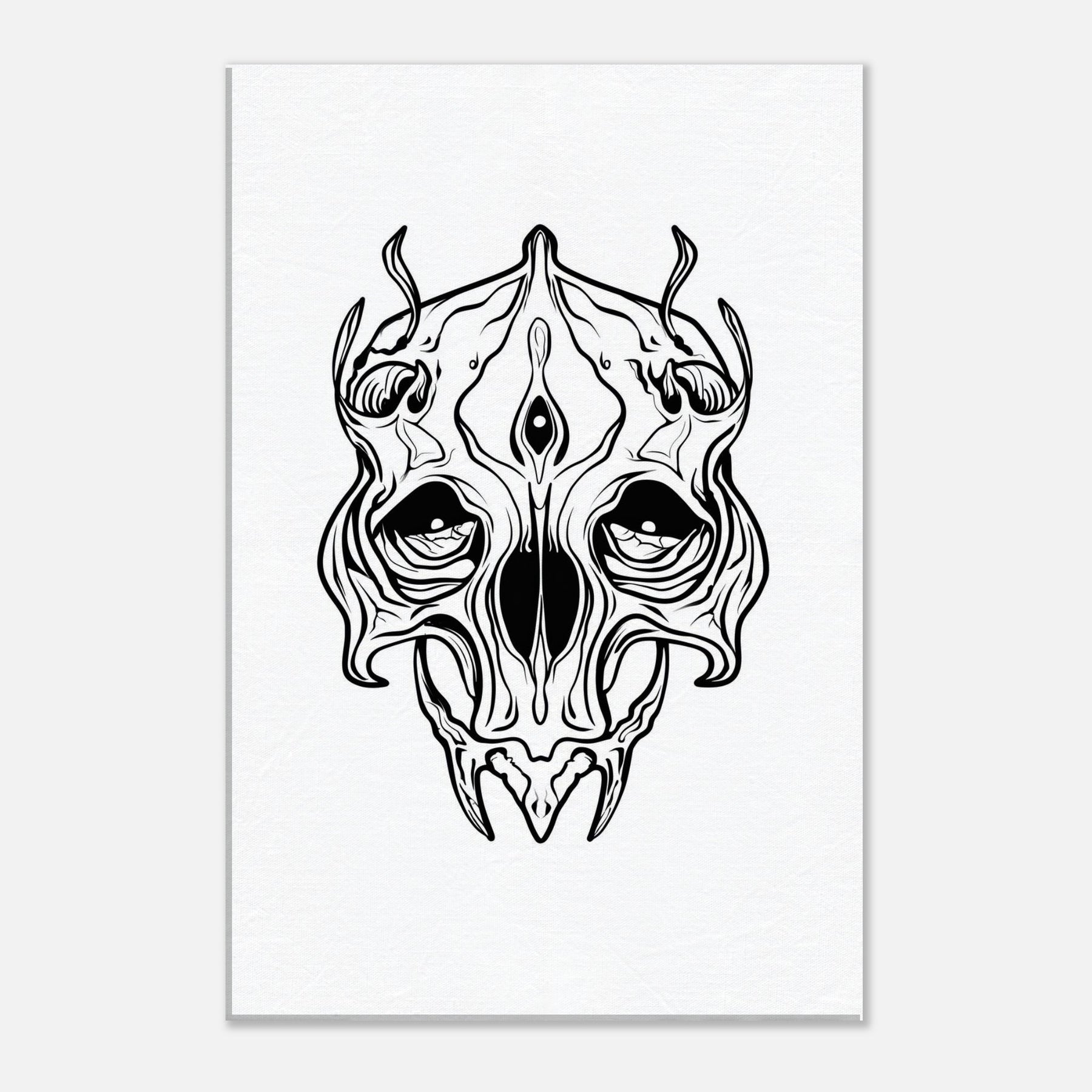 The Mystical Skull emerges in clean, sinuous line art that feels ancient yet contemporary. Its hollow eyes and delicate contours weave a nocturnal dreamscape, where shadow and light converse in quiet, hypnotic rhythm. Perfect for a calm focal point or a dramatic accent, the piece invites contemplation and conversation, softening bedrooms, study corners, and living rooms with a touch of ceremonial elegance. Crafted in bold black and white, it pairs with modern textures and adds ethereal depth to any wall.