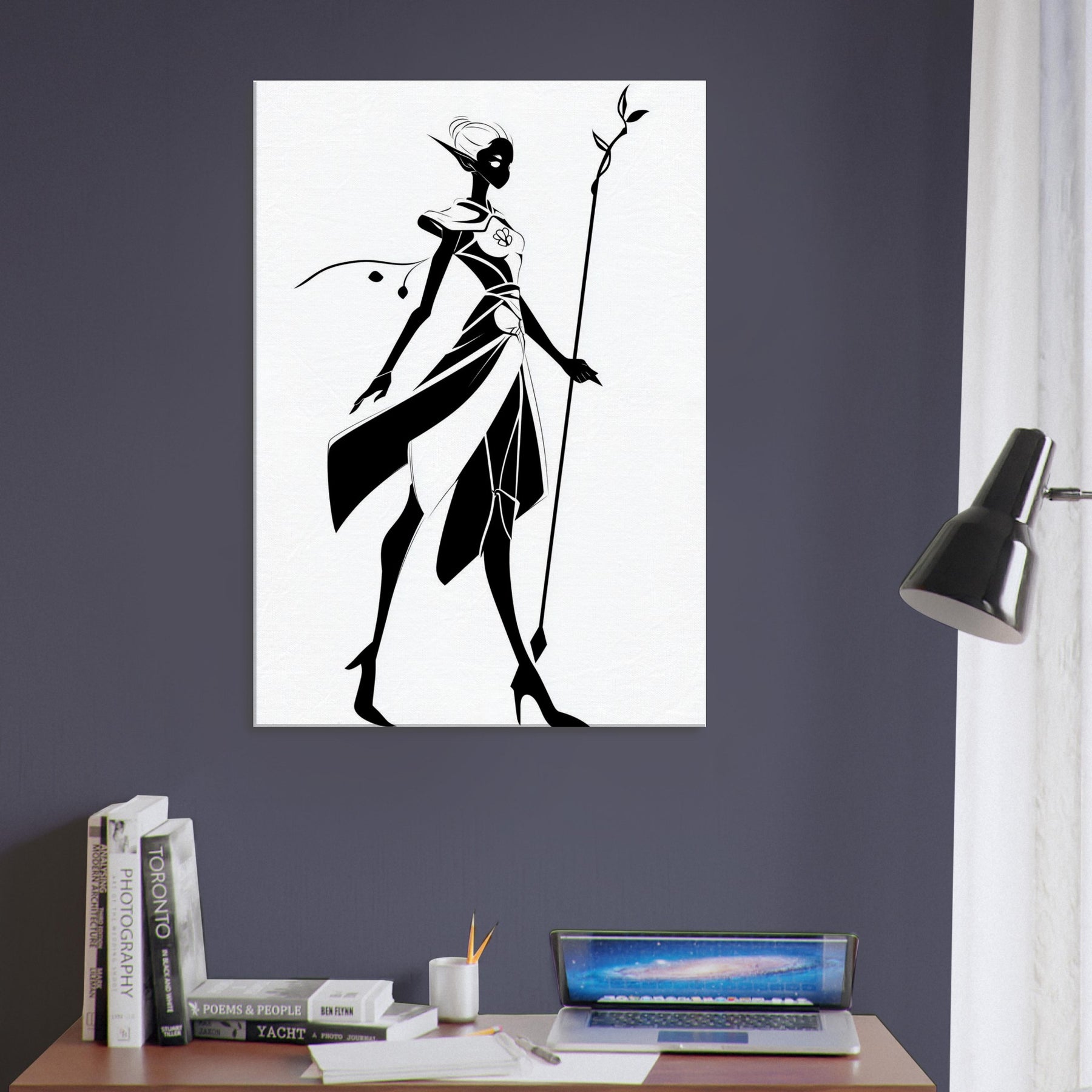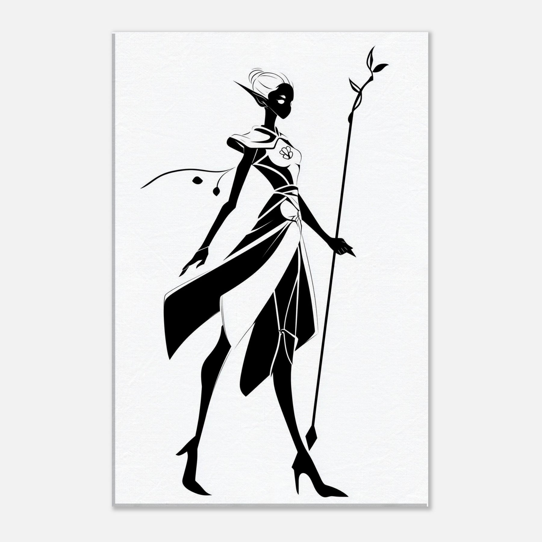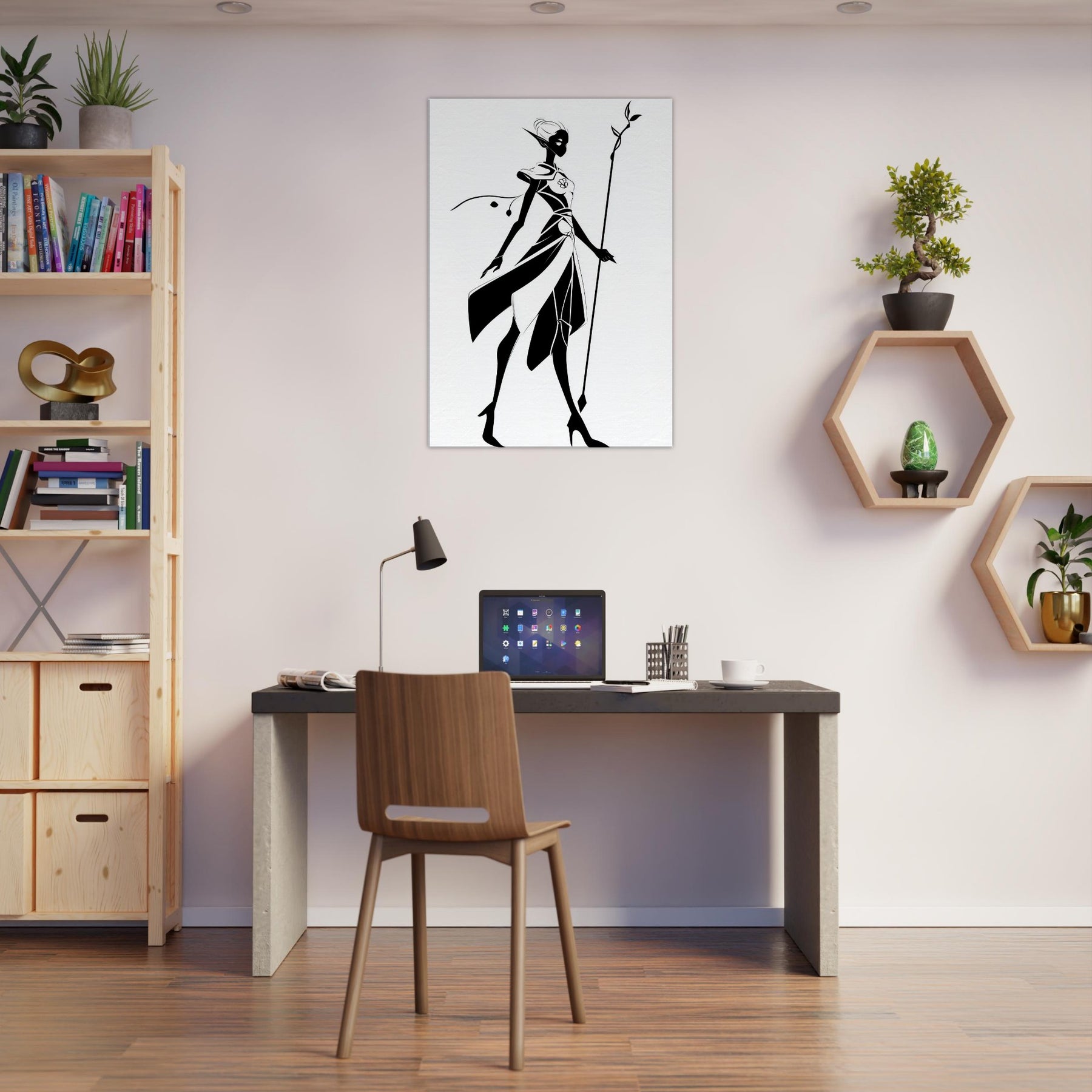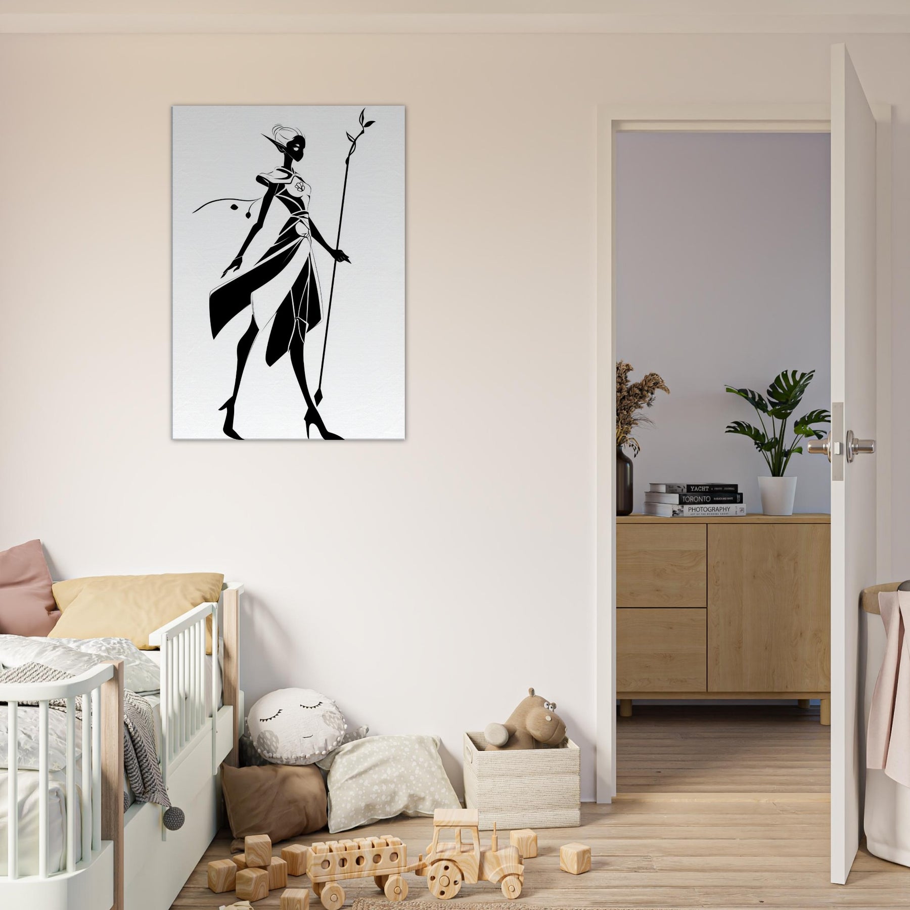 A graceful study in negative space, the Mystical Elf strides with quiet authority in bold line art. This ethereal figure, wreathed in a slender cloak and a tall staff, invites the viewer into a mythic realm where silence speaks and shadows gleam. Perfect for a living room, study, or meditation corner, the piece adds drama without clutter, guiding light and mystery into the everyday and turning any wall into a portal of fantasy.