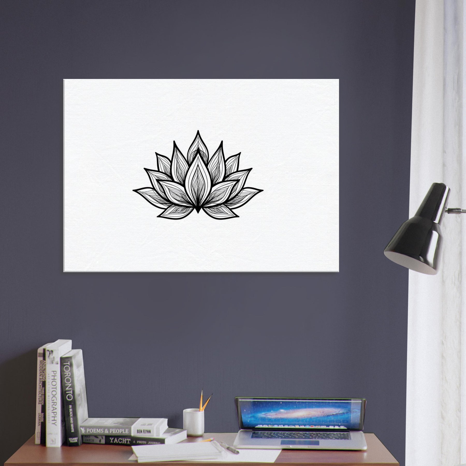 Breathe in the quiet orbit of this Mandala, rendered in clean line art that glides across the page with meditative grace. Each petal unfurls like a whispered mantra, inviting balance and focus in a living room or bedroom. The black ink cushions white space, creating a serene contrast that anchors a cozy corner or minimalist wall. Hang above a sofa or console to invite calm mornings and reflective evenings; the mystical energy of this design softens harsh light and turns daily rituals into a quiet ceremony.