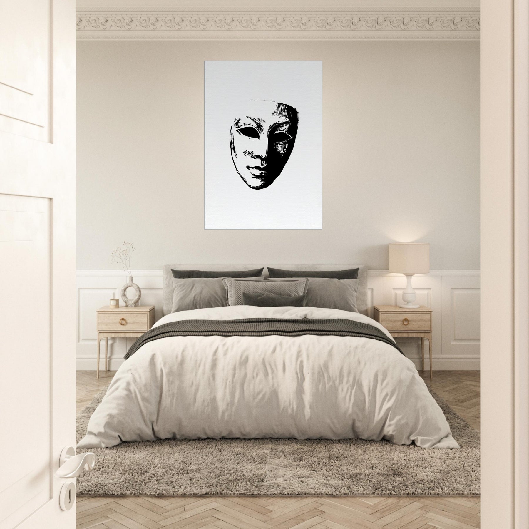 Let the Venetian Mask drift into your space as a study in restraint and presence. This line art dissolves into clean black and white strokes, capturing mood and mystery with each contour. The stark contrast and delicate gestures invite quiet reflection, turning a wall into a stage for atmosphere perfect beside a reading nook or above a sofa. In a serene living room or modern bedroom, this piece radiates timeless elegance, offering a subtle invitation to pause, breathe, and simply observe.