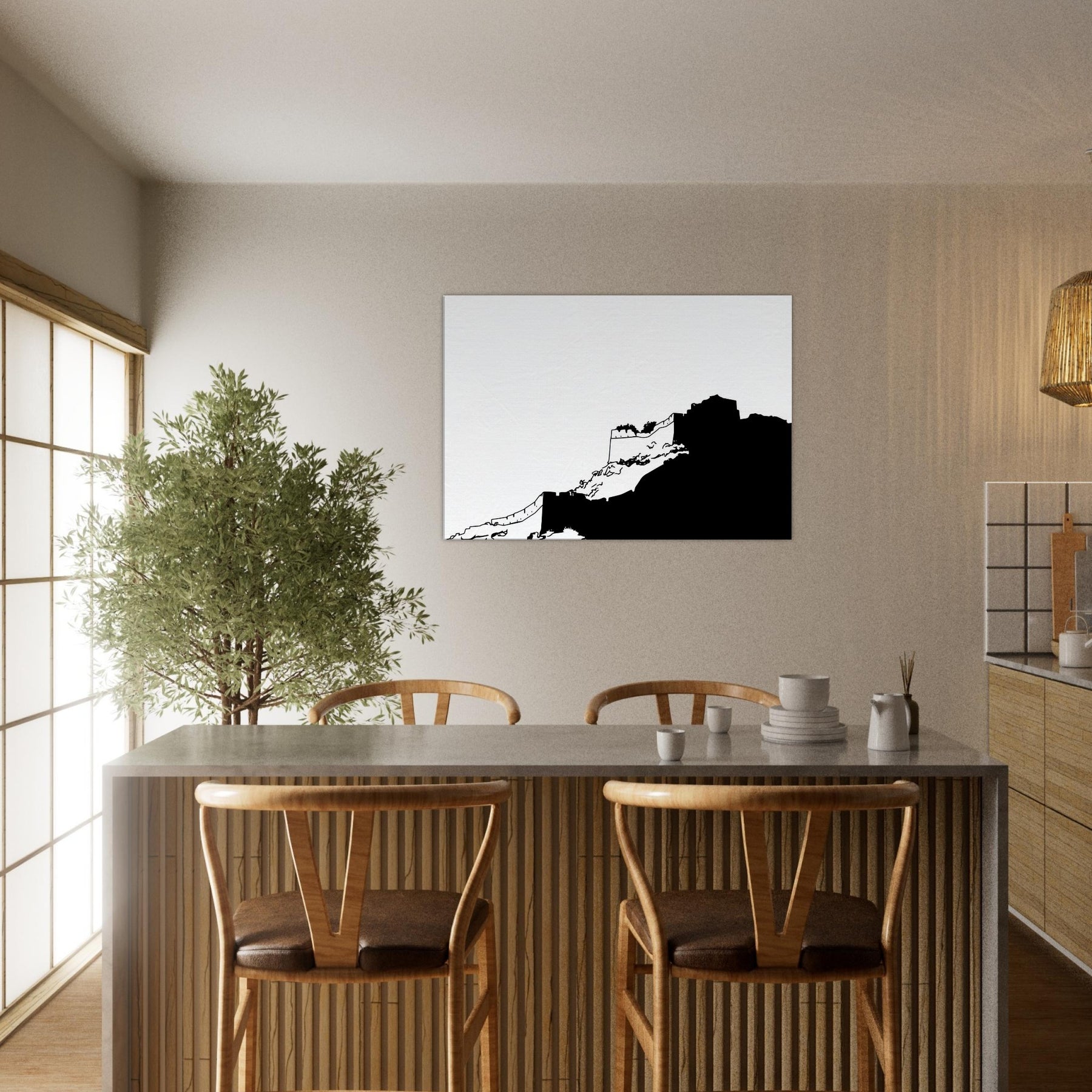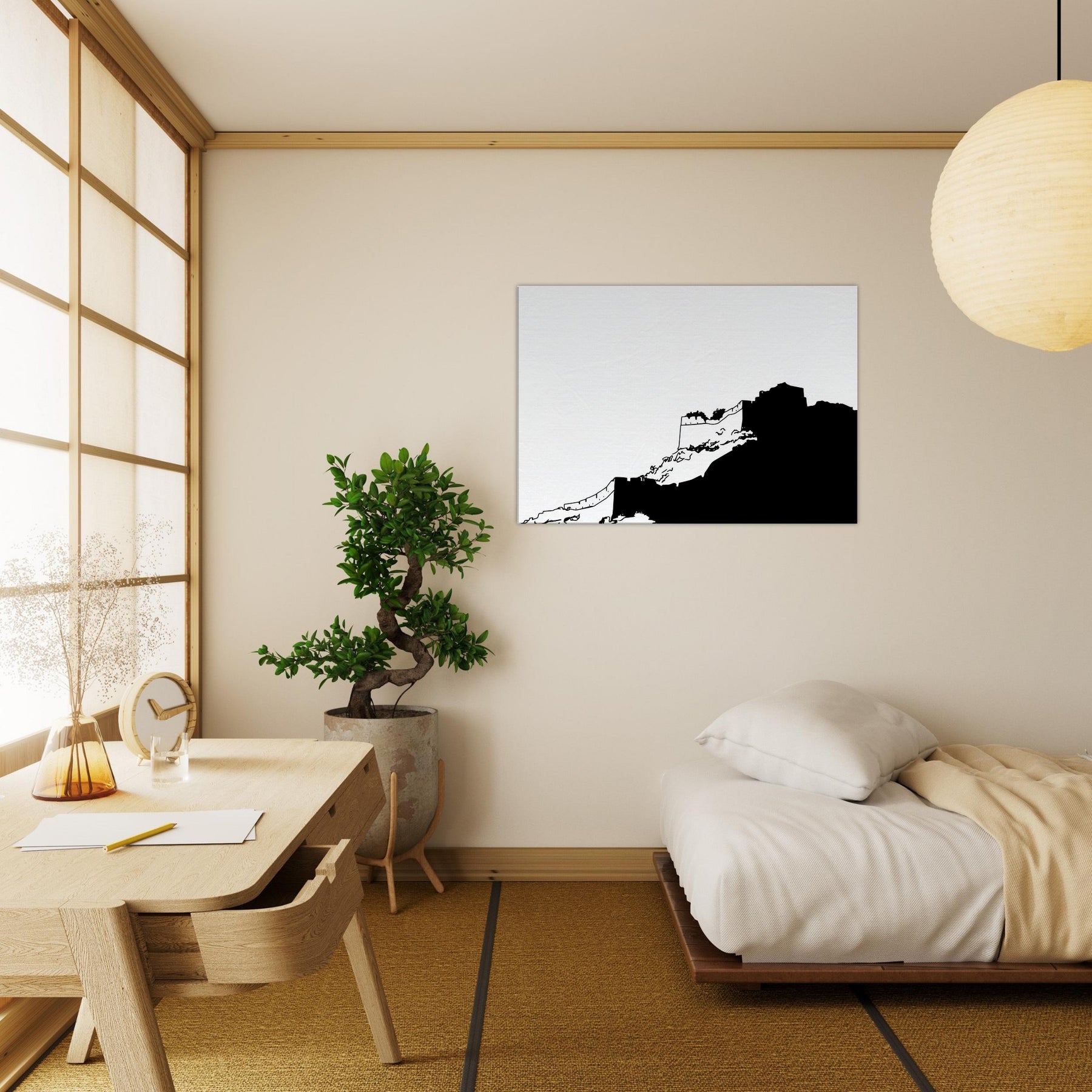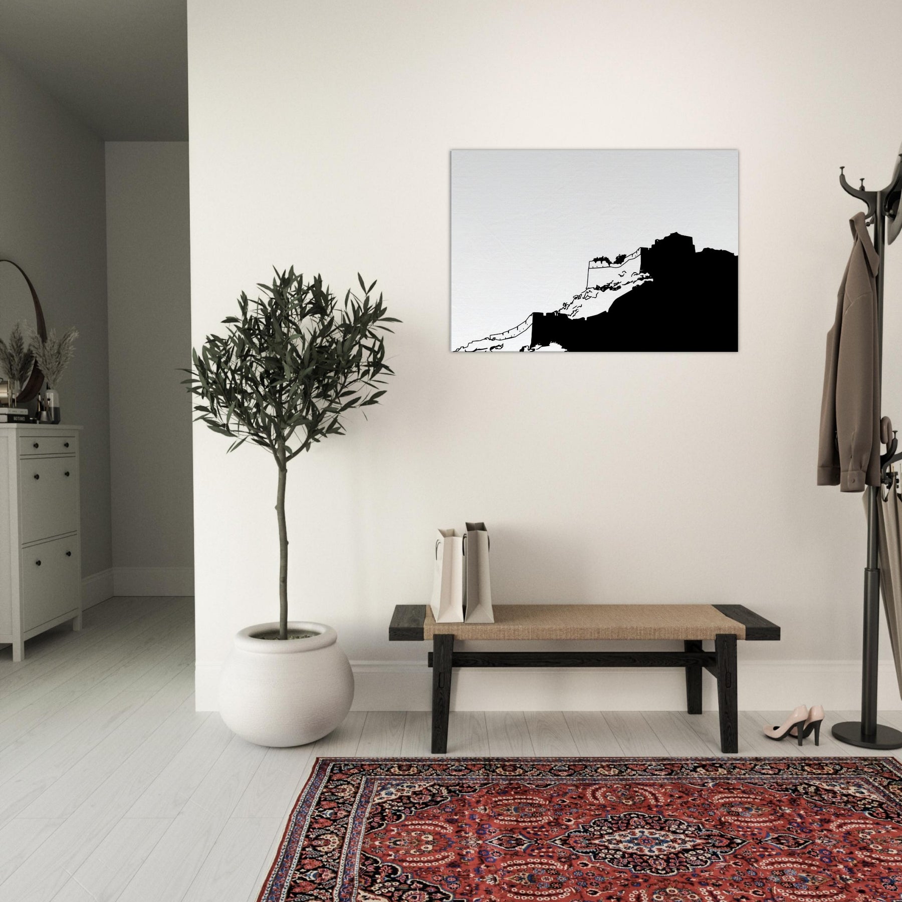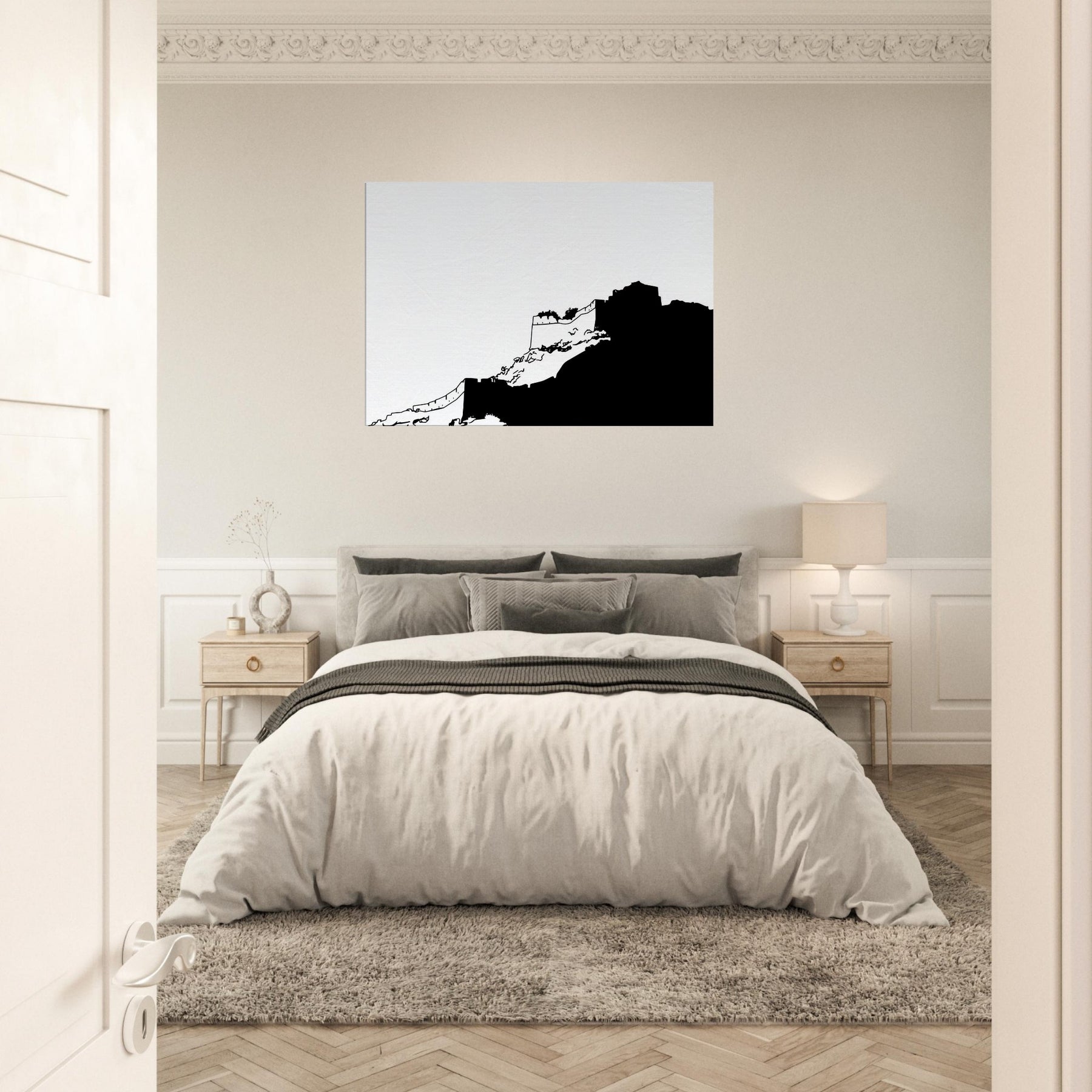 Let the Great Wall Silhouette unfold across your wall in quiet, monochrome poetry. This line art study captures a timeless where ancient stone meets modern silhouette, inviting calm focus and subtle awe. The stark black on white creates a tactile rhythm, guiding the eye along the fortifications as if strolling a tranquil moonlit ramp. Perfect for a living room, studio, or entry, it pairs with clean furniture and soft textures to elevate space with urban grace and contemplative atmosphere.
