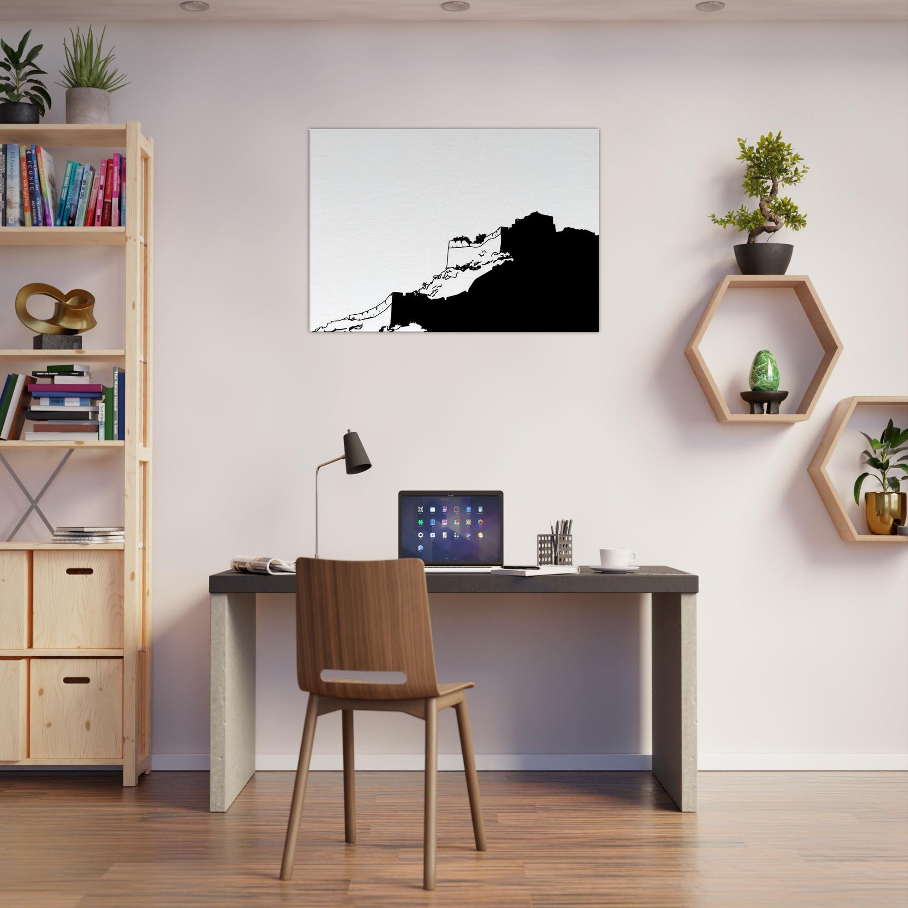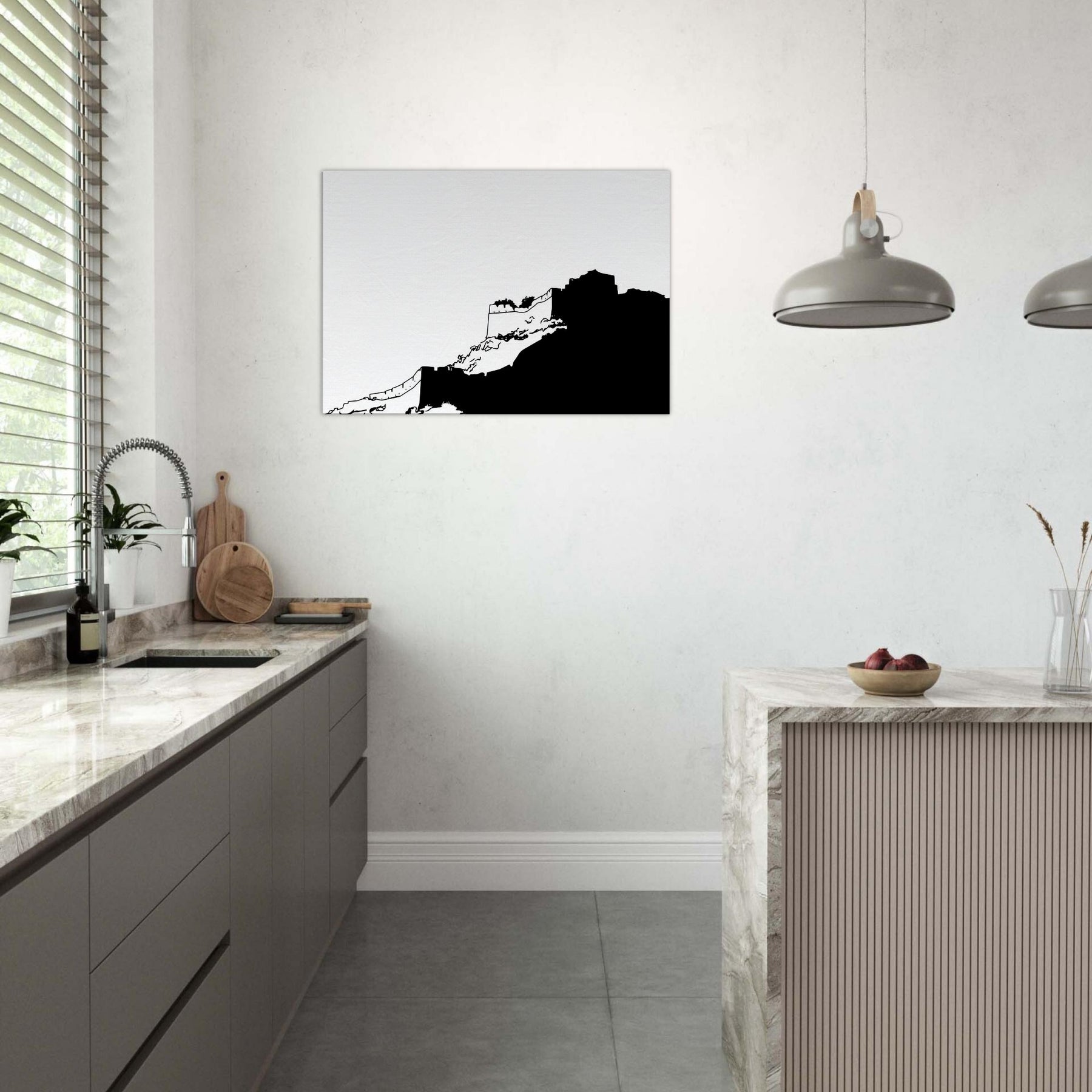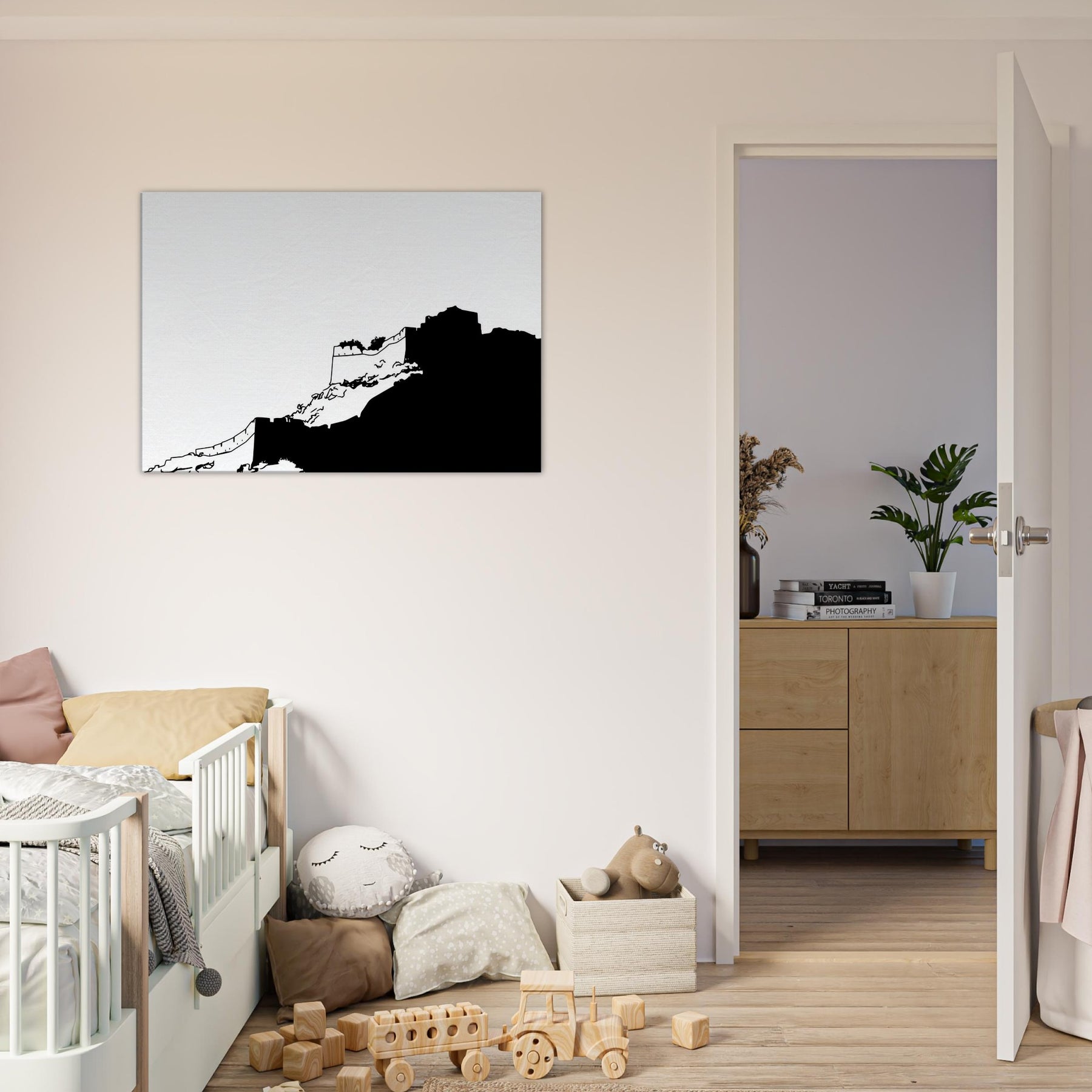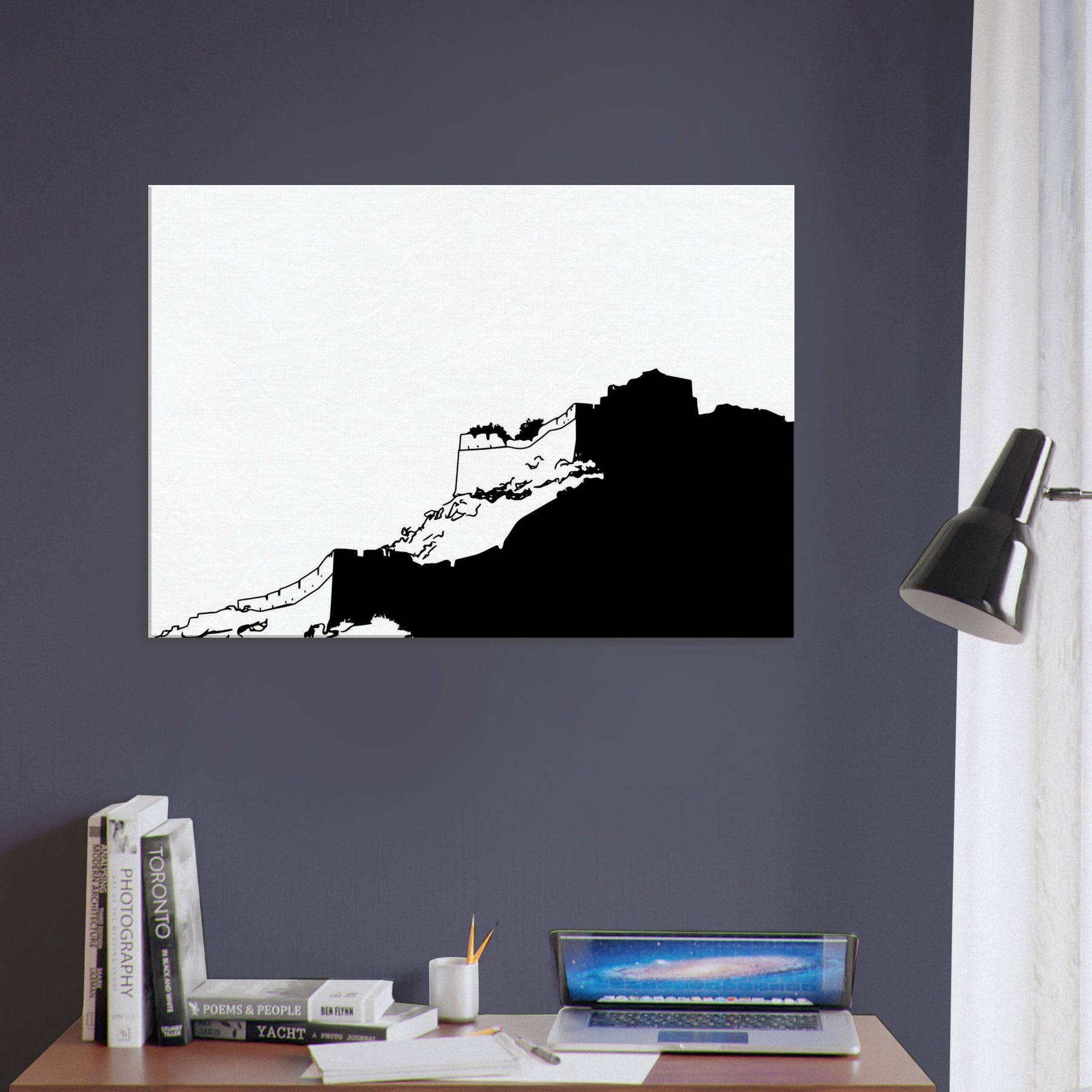 Let the Great Wall Silhouette unfold across your wall in quiet, monochrome poetry. This line art study captures a timeless where ancient stone meets modern silhouette, inviting calm focus and subtle awe. The stark black on white creates a tactile rhythm, guiding the eye along the fortifications as if strolling a tranquil moonlit ramp. Perfect for a living room, studio, or entry, it pairs with clean furniture and soft textures to elevate space with urban grace and contemplative atmosphere.