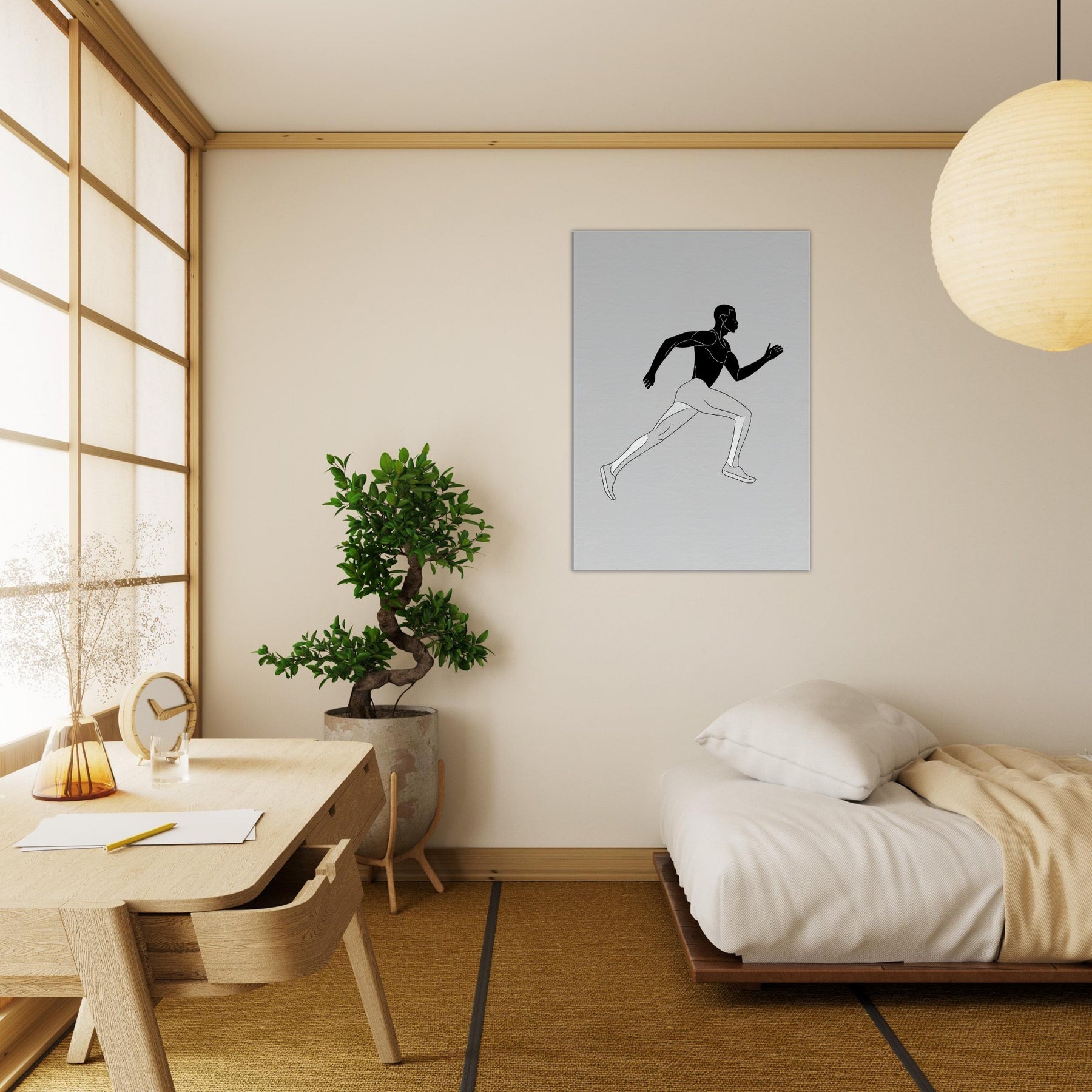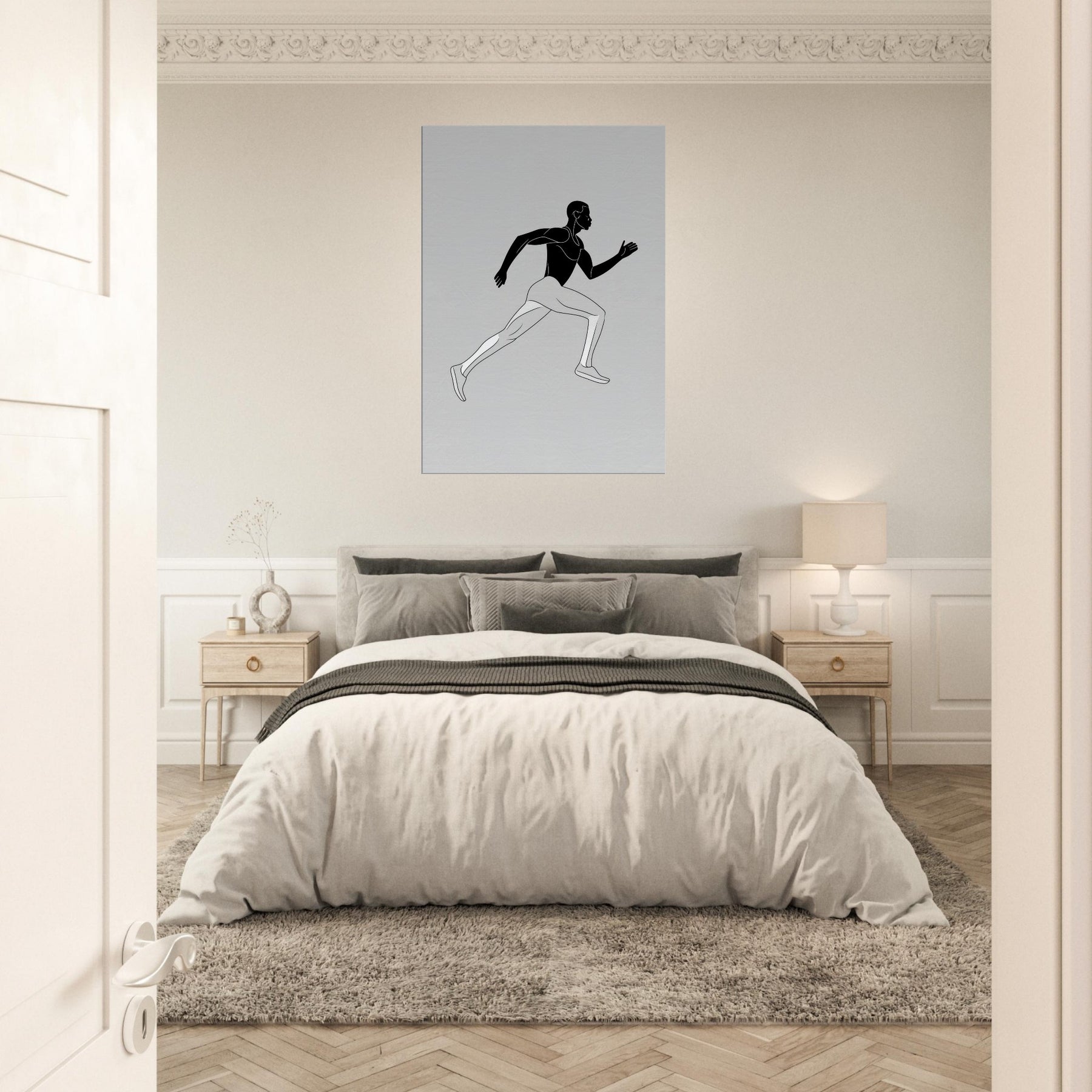 This line art captures the Runner in Motion with breathless grace. Black contours carve motion across a pale field, where stillness and speed coalesce into a single, elegant gesture. The minimal, continuous lines invite the eye to follow each stride, turning kinetic energy into a meditative moment. Perfect for a living room or hallway, it adds kinetic elegance, refined contrast, and a modern, contemplative mood that heightens the space without shouting.