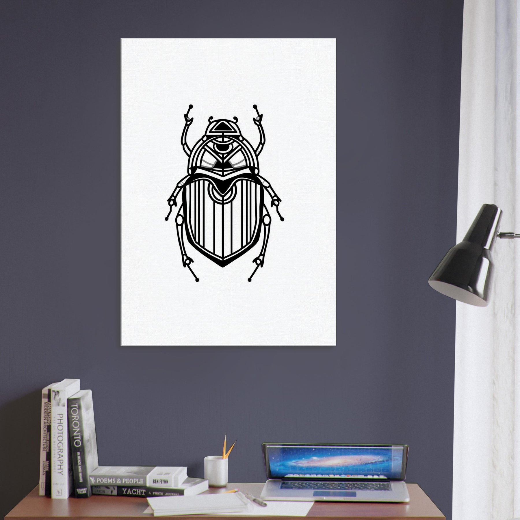 Like a sigil of ancient guardians, this line art Scarab invites a quiet ritual of reflection. The clean, black on white contour draws the eye with geometric rhythm, turning any wall into a ceremonial space. In a living room or study, its mystical aura pairs with soft textures and muted tones, offering a sense of protection and focus. Perfect for minimal modern interiors seeking a touch of myth without overpowering the room.