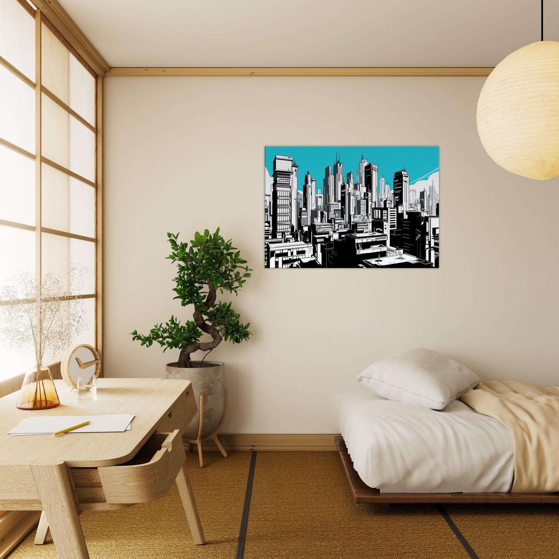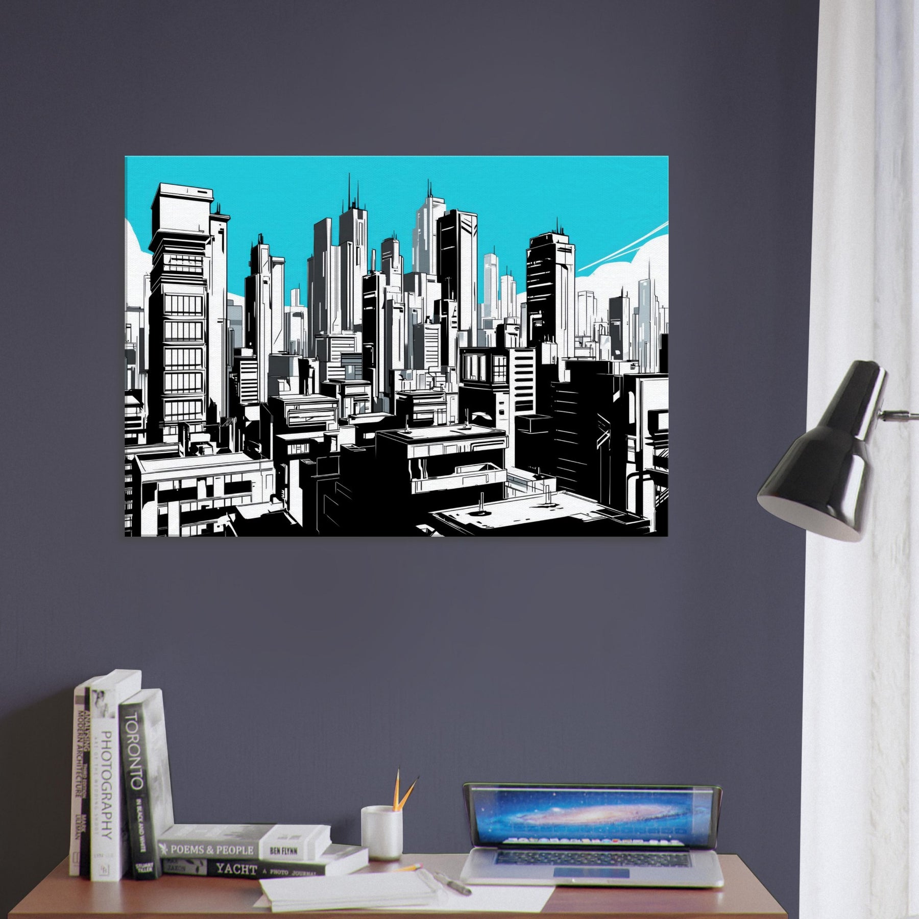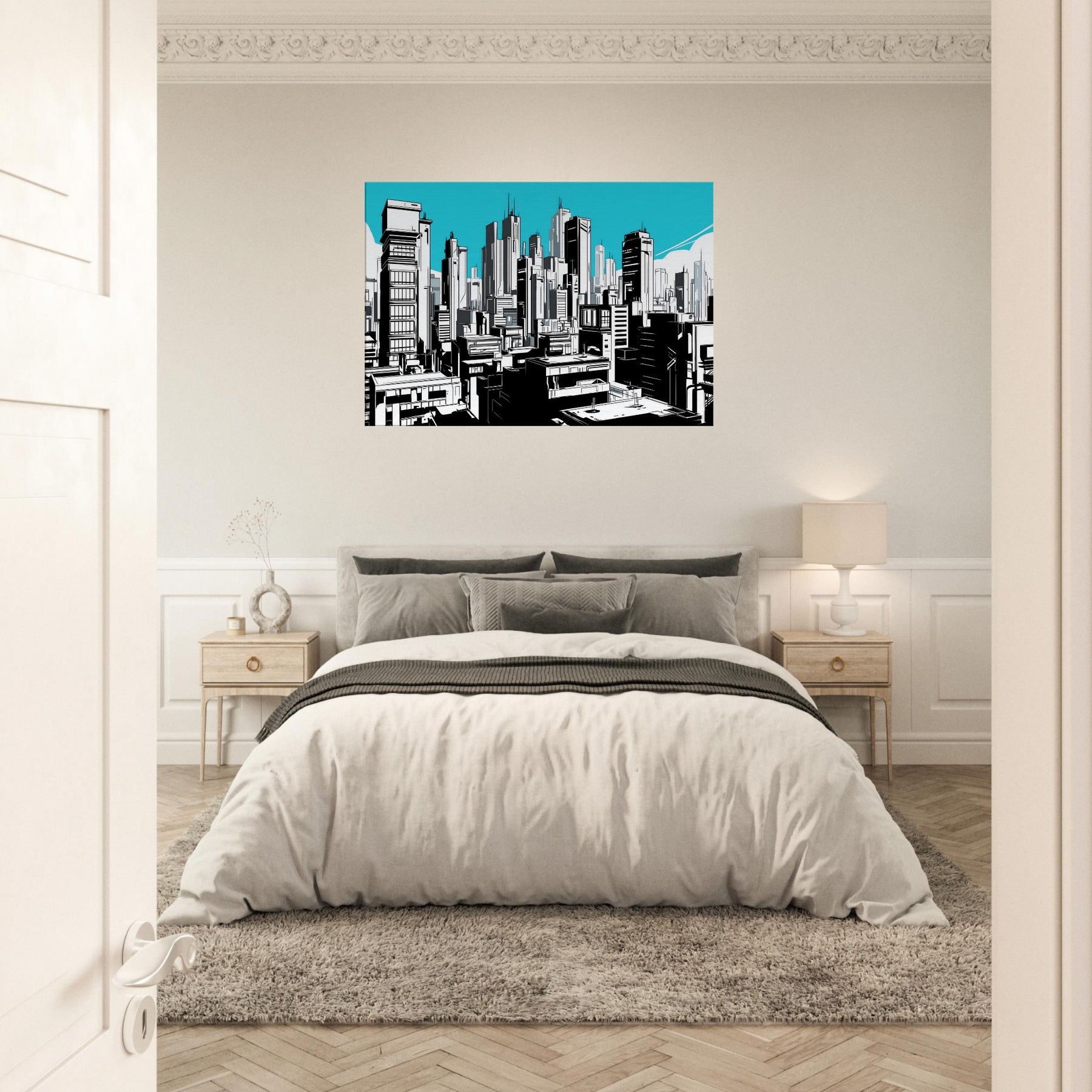 Step into a neon splashed horizon where night stretches into electric cyan. This line art composition moves with a confident rhythm of towers and bridges, inviting the eye to wander along clean contours and stark shadows. The Cyberpunk City towers rise with deliberate black and white precision, punctuated by electric cyan skies that hum with quiet energy. This composition invites slow, observant viewing each contour revealing rhythm, depth, and a cool metropolitan mood. Perfect for a quiet study or a modern living room, it elevates space with urban poetry, offering a sense of motion and futuristic calm that surrounds rather than overwhelms.