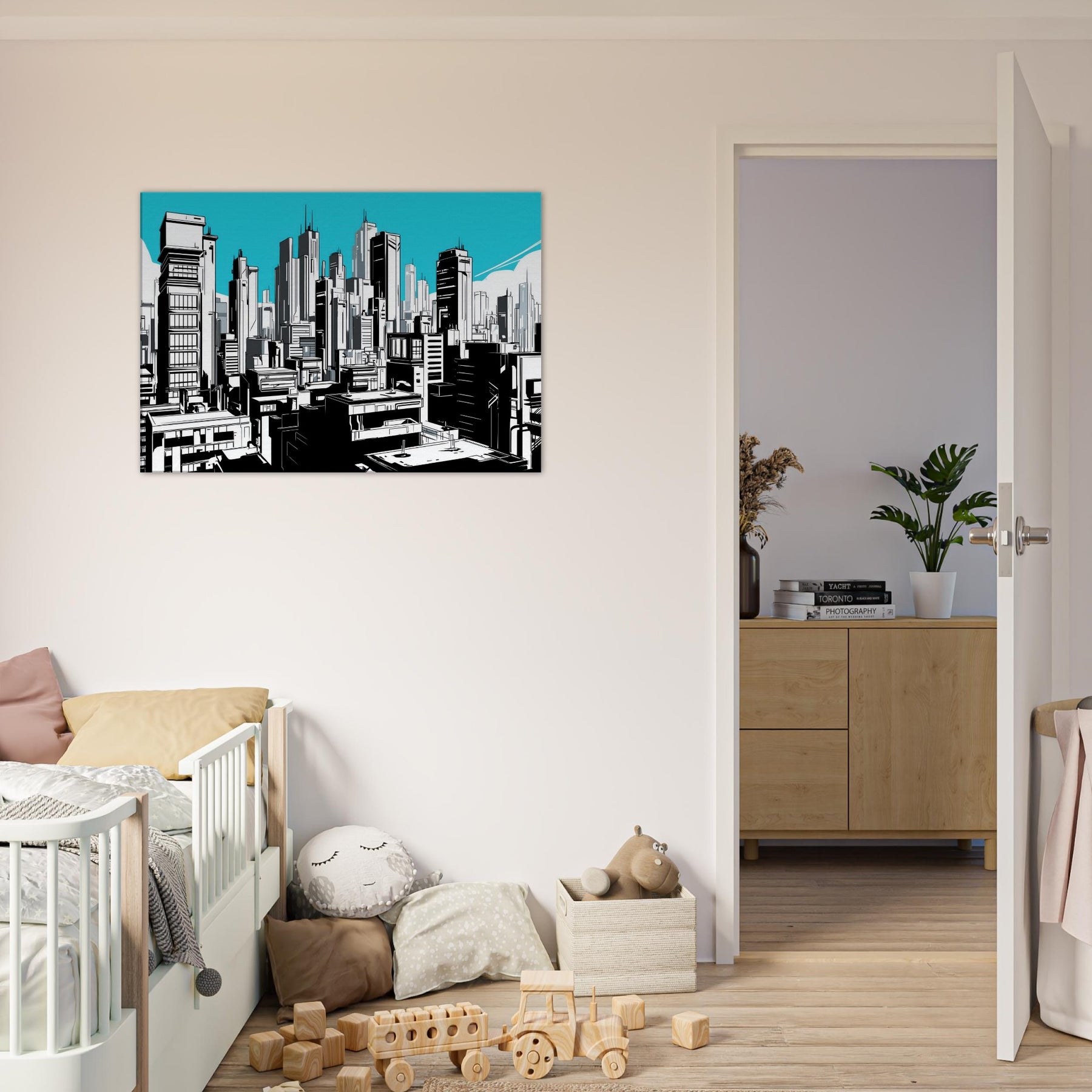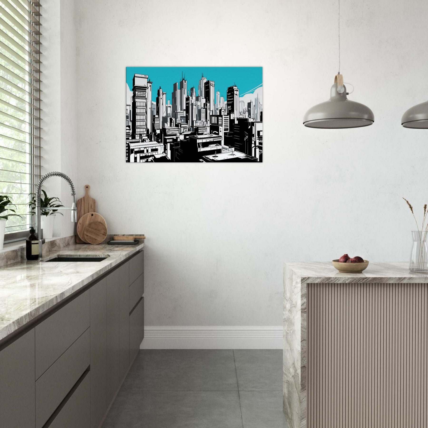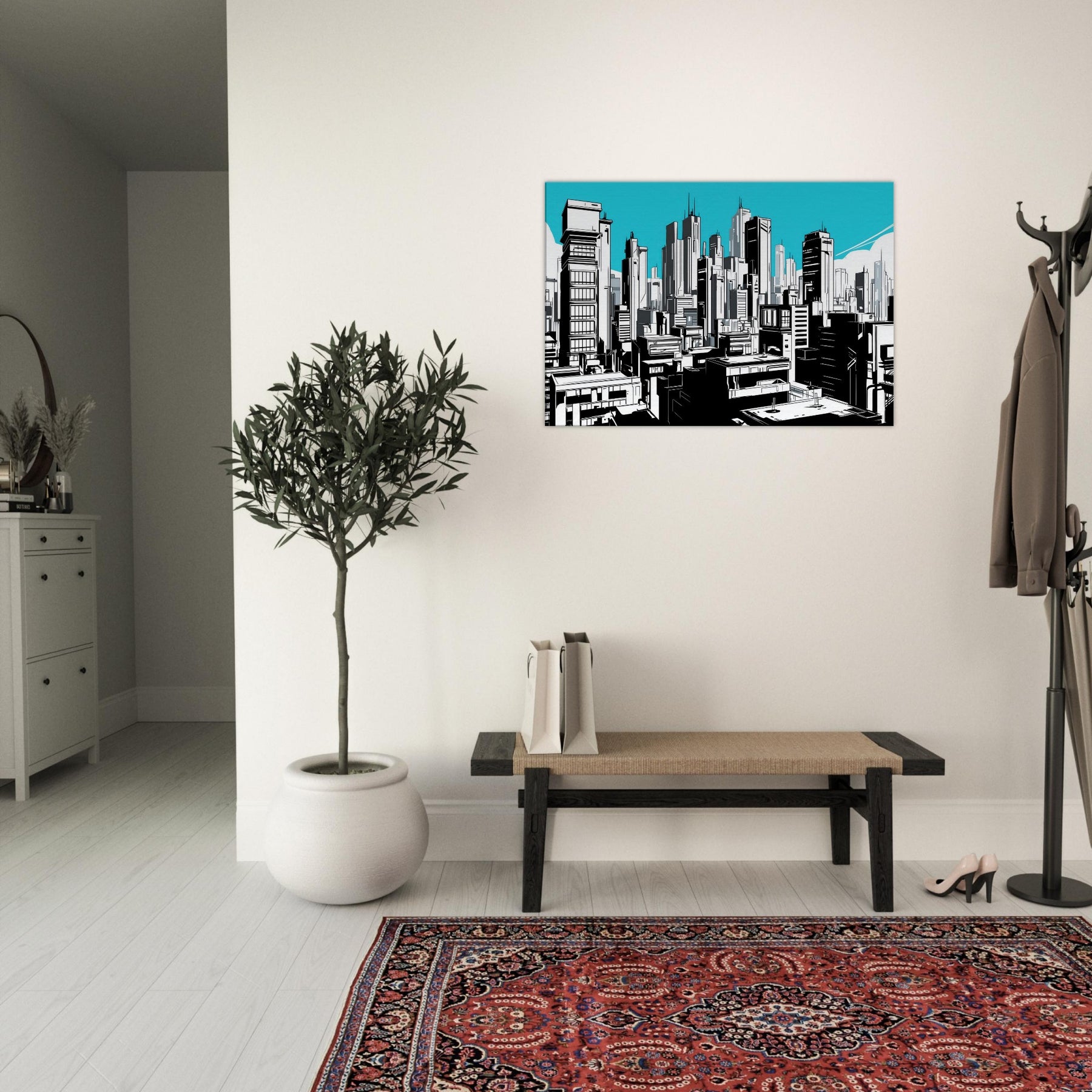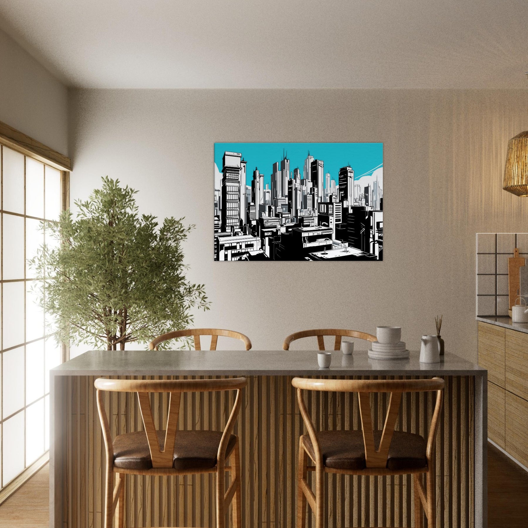 Step into a neon splashed horizon where night stretches into electric cyan. This line art composition moves with a confident rhythm of towers and bridges, inviting the eye to wander along clean contours and stark shadows. The Cyberpunk City towers rise with deliberate black and white precision, punctuated by electric cyan skies that hum with quiet energy. This composition invites slow, observant viewing each contour revealing rhythm, depth, and a cool metropolitan mood. Perfect for a quiet study or a modern living room, it elevates space with urban poetry, offering a sense of motion and futuristic calm that surrounds rather than overwhelms.