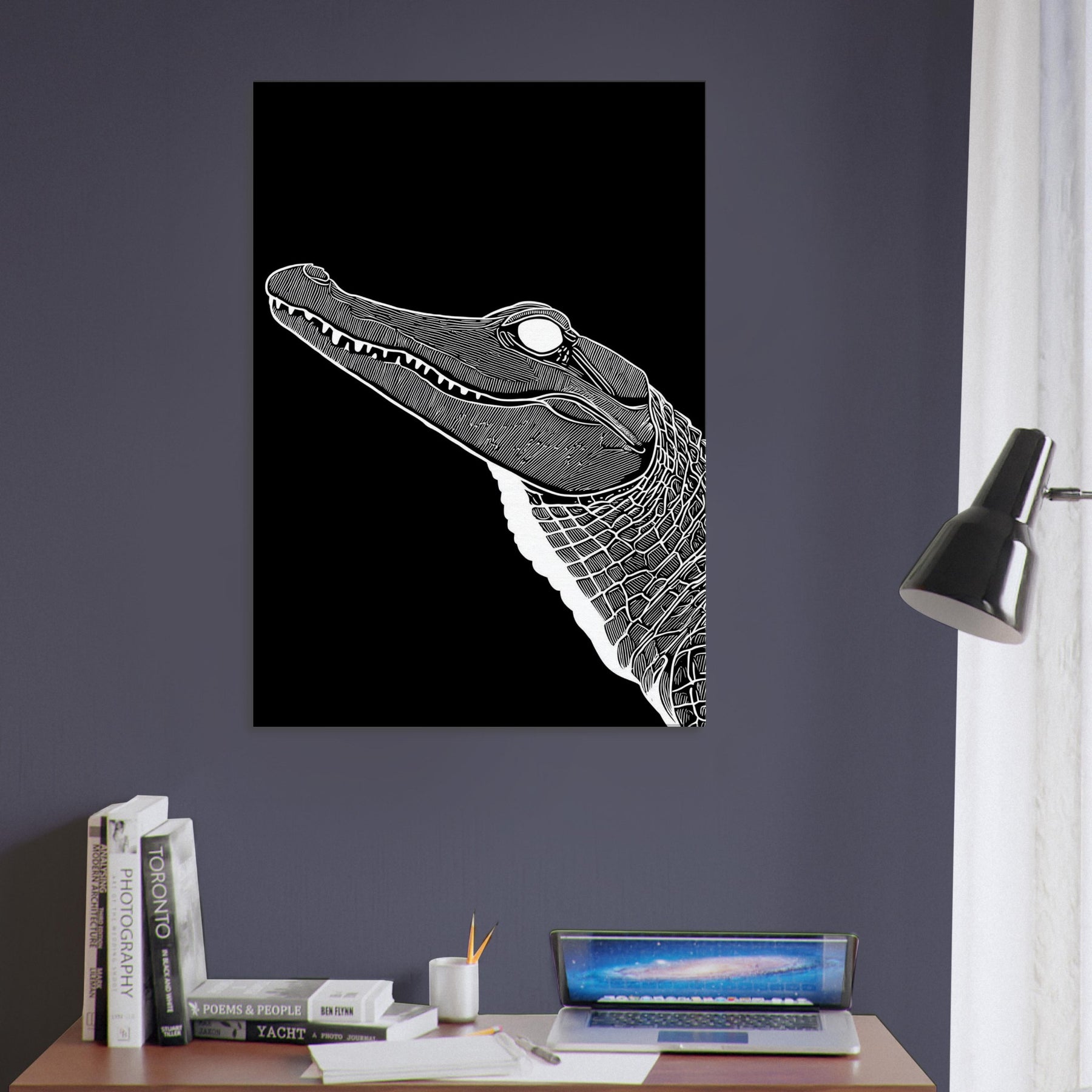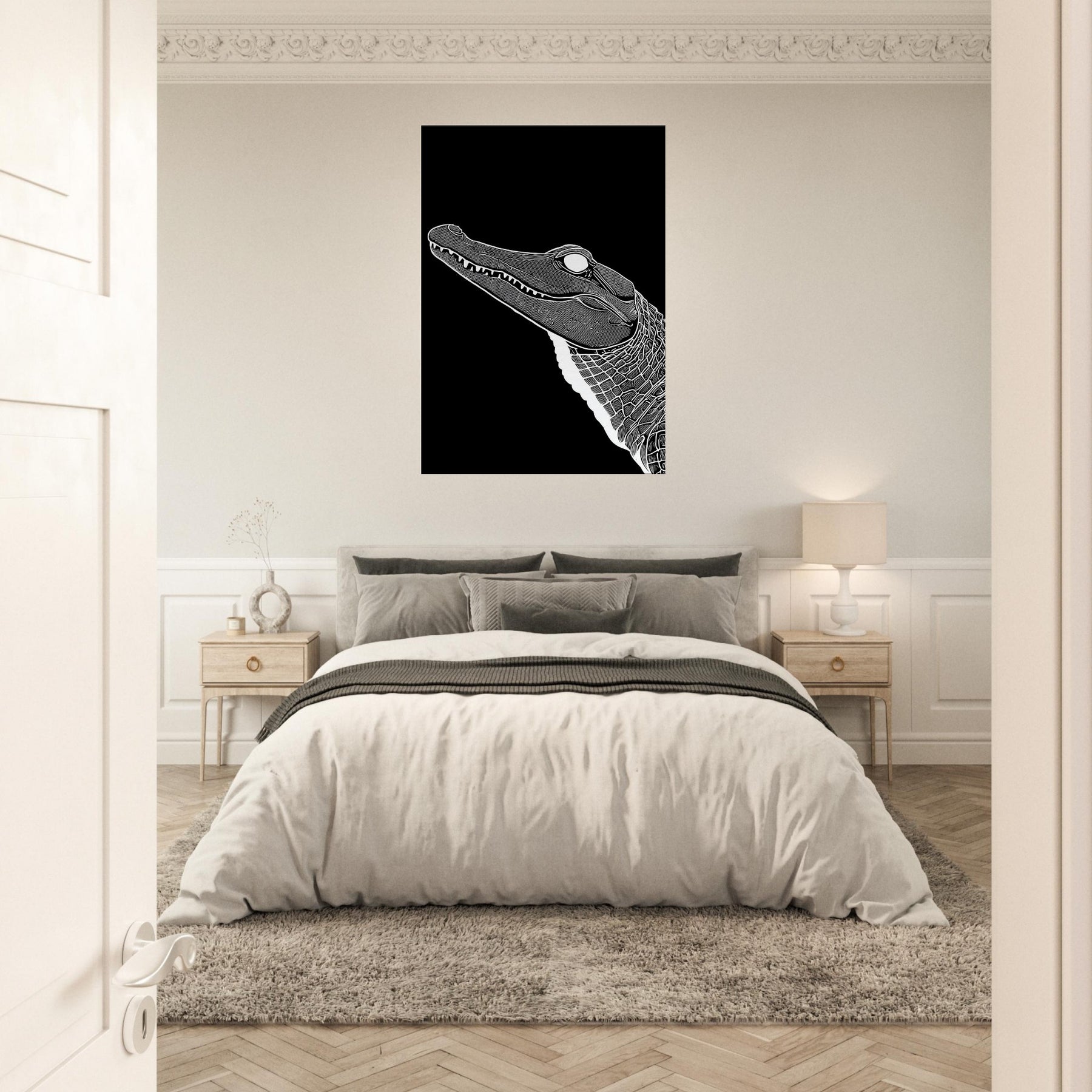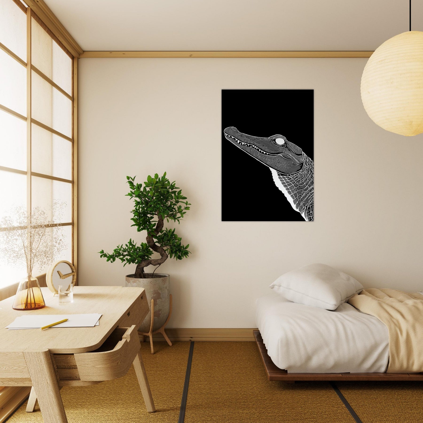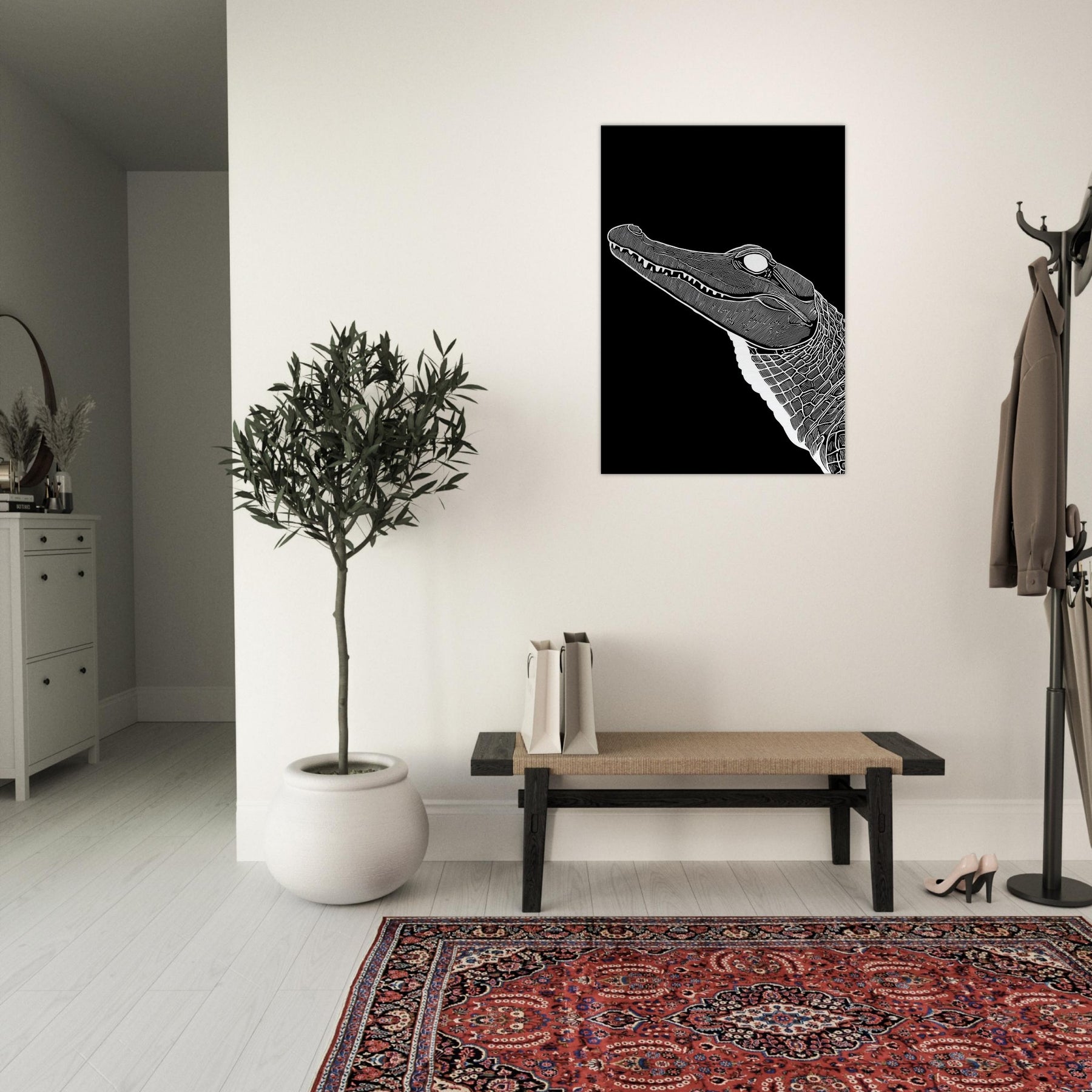 A whisper of coastline and midnight in one line, this Alligator captures the patient, watchful mood of its subject with clean, unbroken strokes. The minimalist contour invites the eye to travel along the gleaming jaw, the curve of the neck, and the delicate crosshatching that suggests texture without crowding the frame. Printed in stark black on ivory or canvas, it brings quiet drama to a living room or study, turning a wall into a gallery of restraint, strength, and tangible presence.
