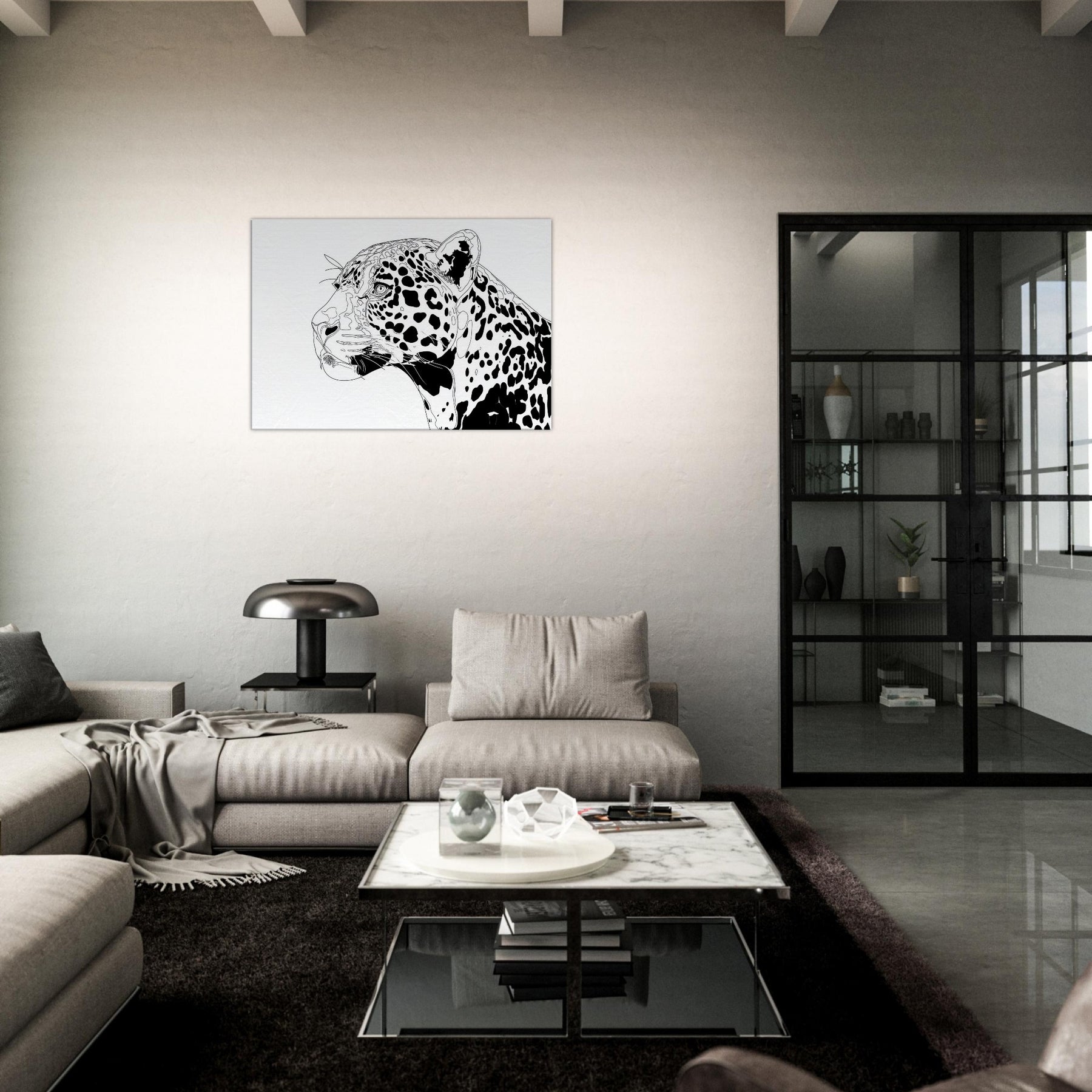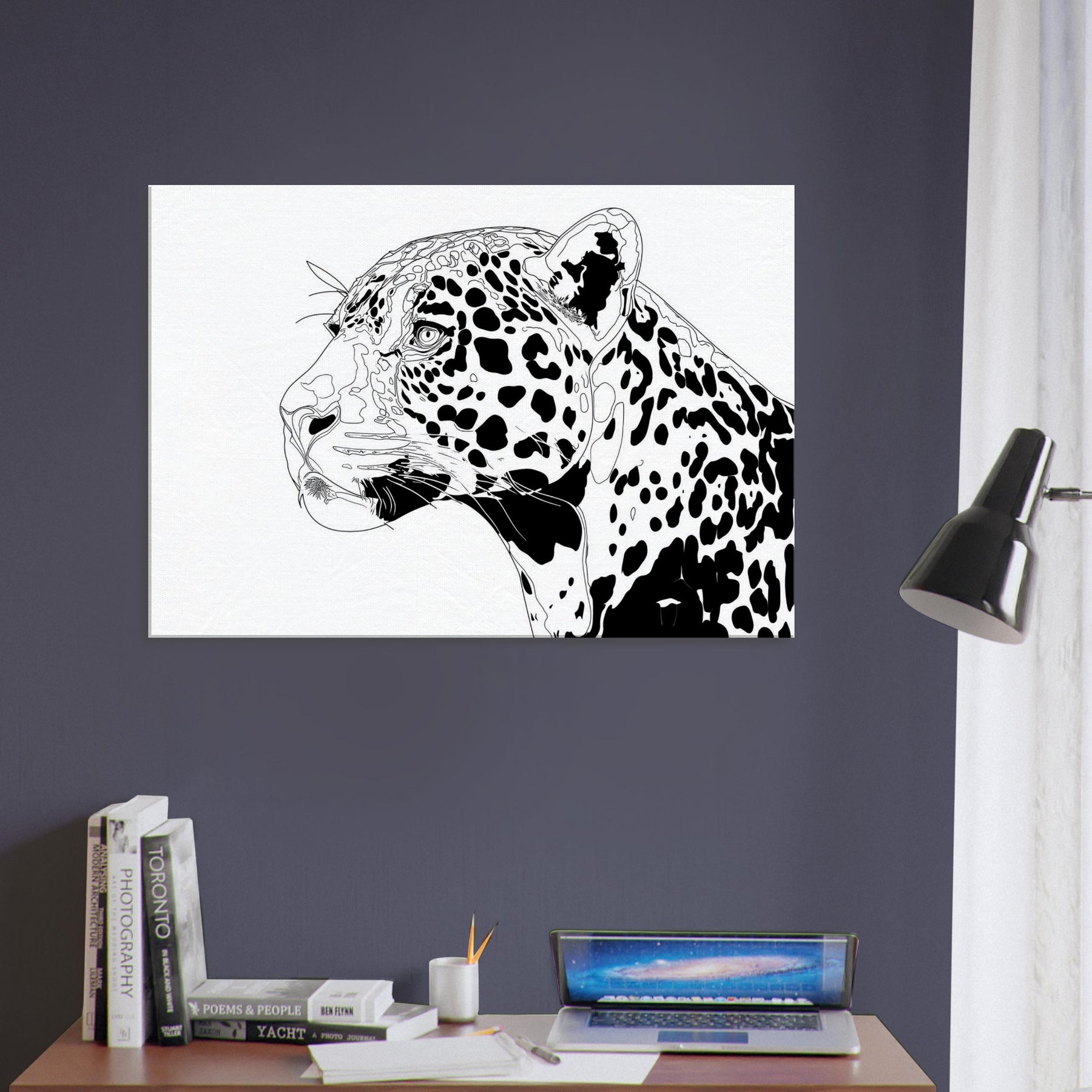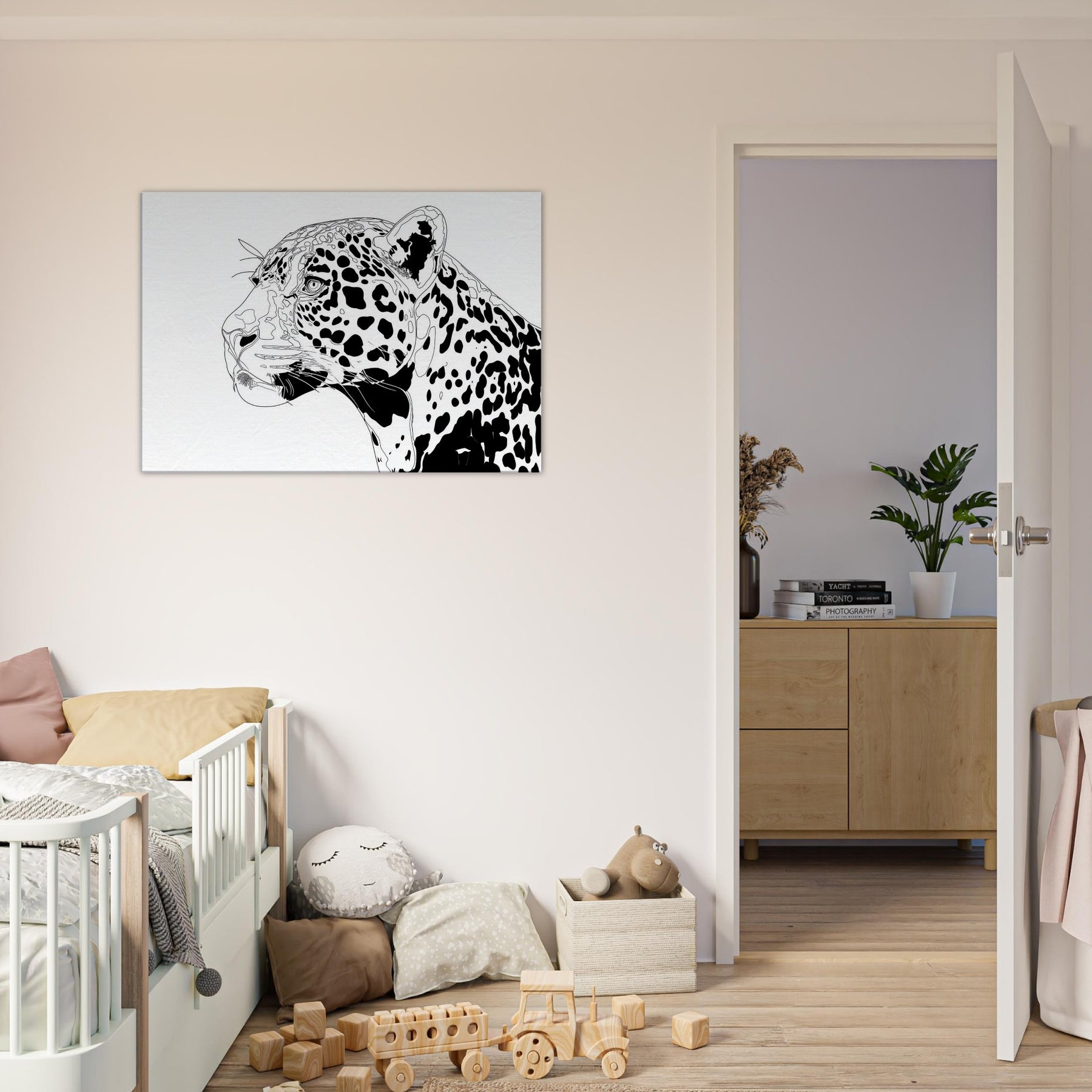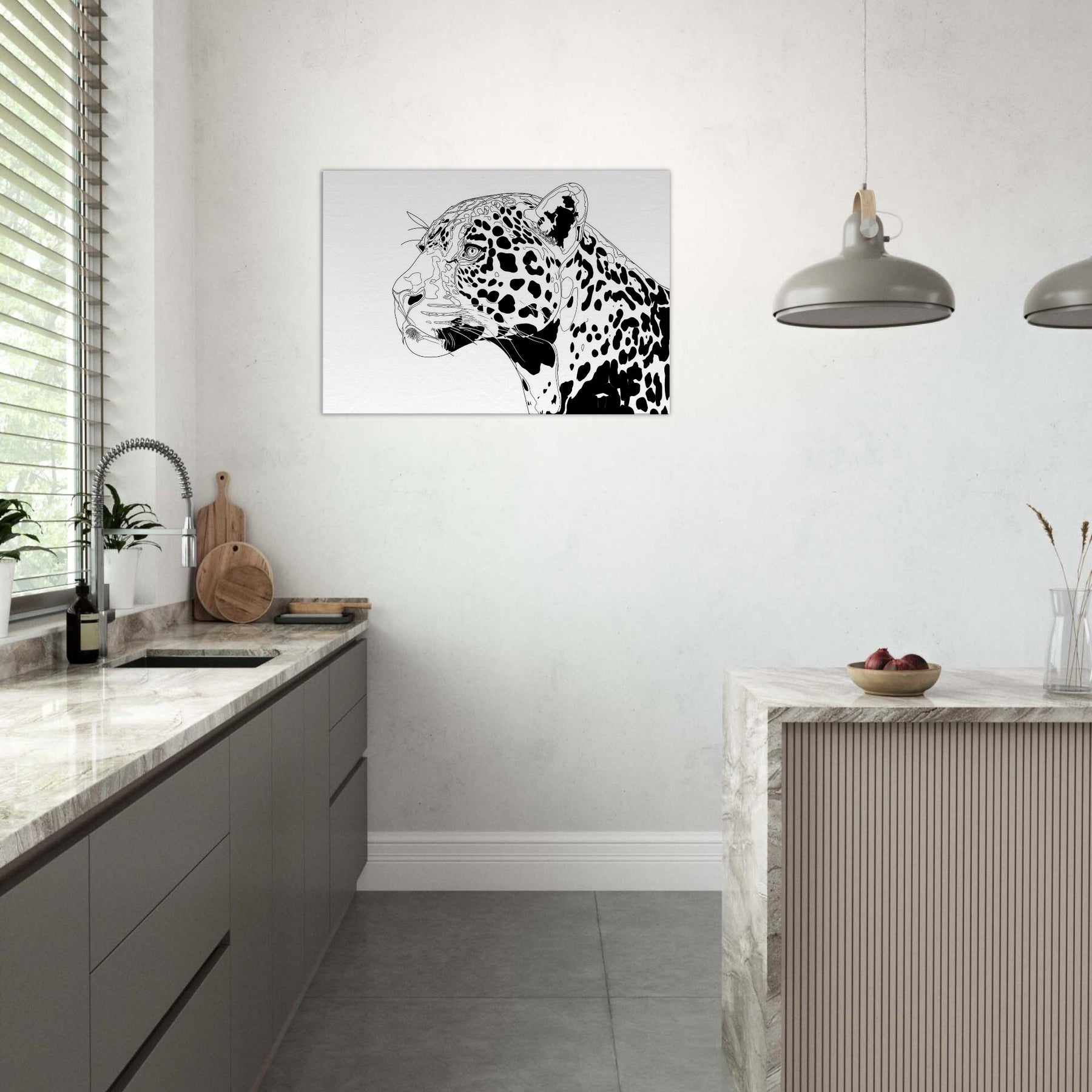 This minimalist composition centers the Jaguar, the primary subject, in clean, uninterrupted lines, letting light and shadow breathe across the page. The absence of color heightens the animal’s poised, watchful presence, turning a simple outline into a quiet drama that invites reflection. Hang it in a living room or entryway to spark calm energy and focus; the piece pairs beautifully with steel, wood, or marble accents, creating a serene backdrop that enhances conversation, contemplation, and everyday moments.