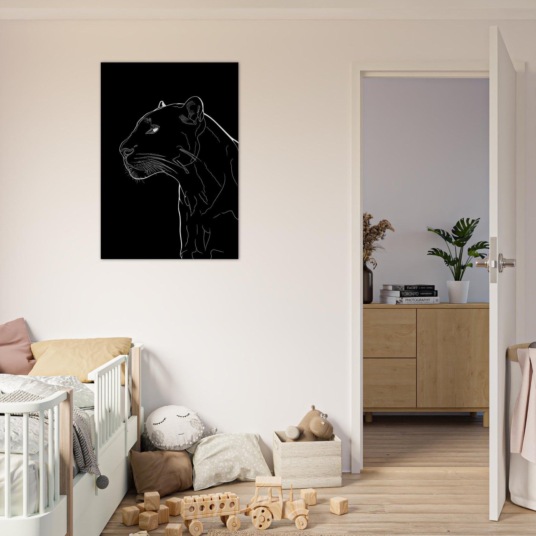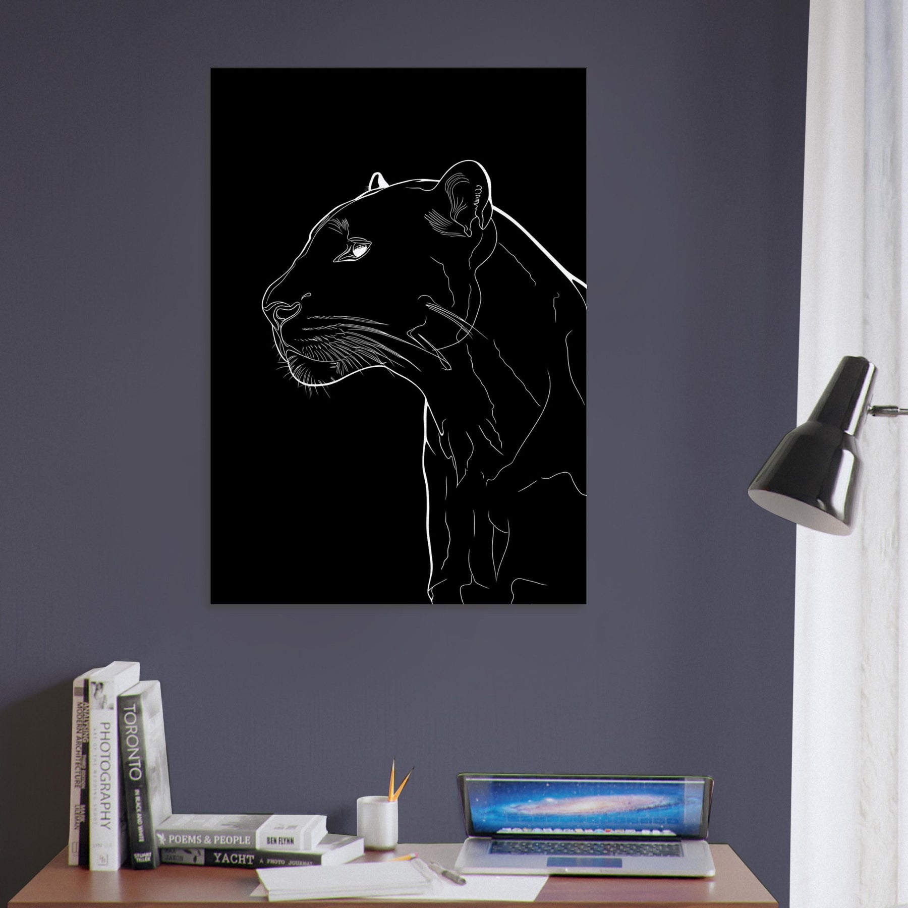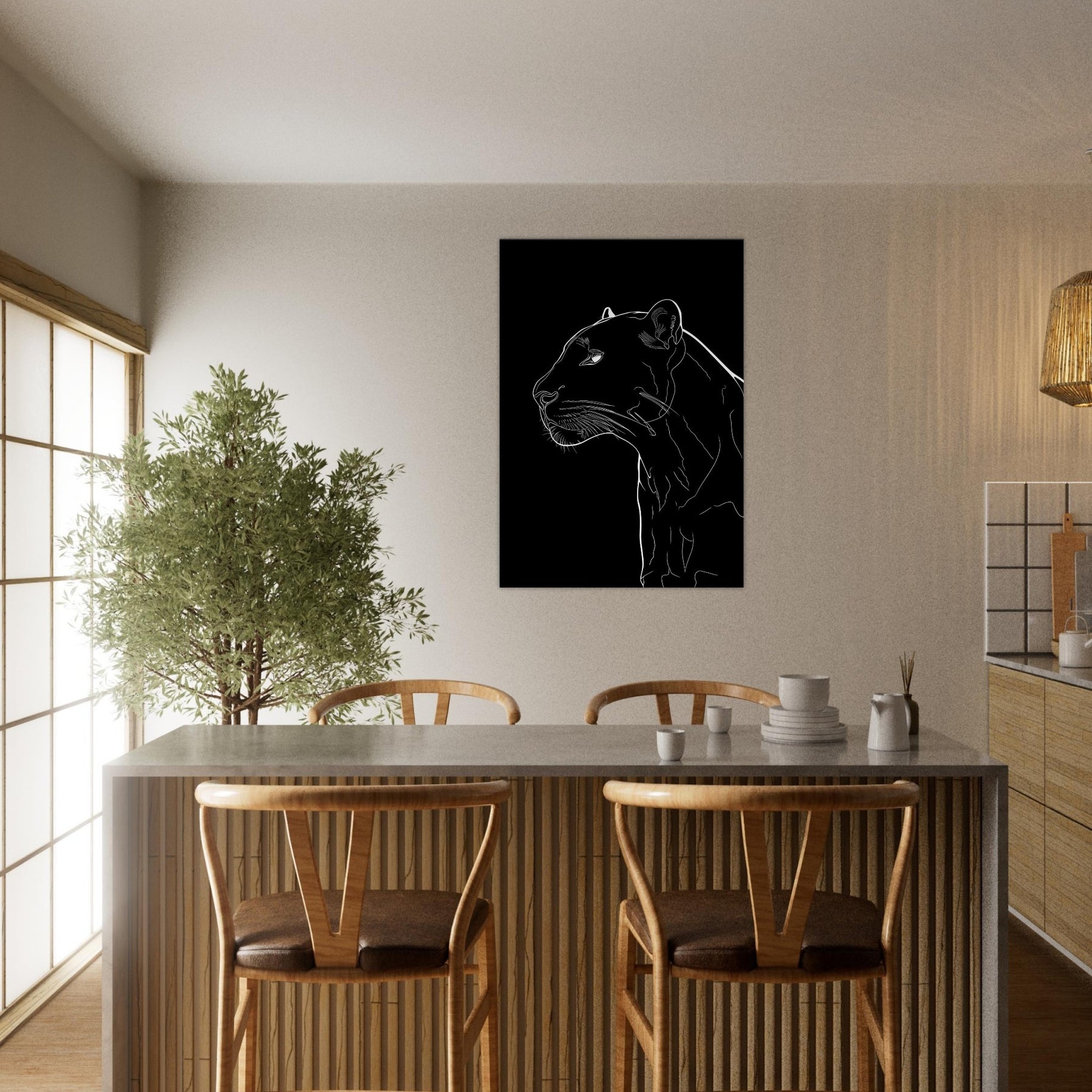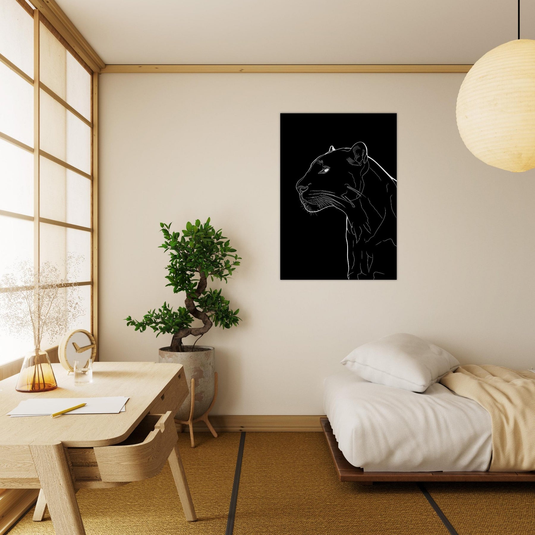 Let the Panther glide across your wall in a whisper of white lines against midnight. This minimalist line drawing captures the feline grace the poised brow, the arch of the neck, the suggestion of muscles and motion without distraction, leaving space to breathe. The stark contrast and elegant simplicity invite quiet reflection, turning a living room corner into a gallery of calm. Pair it with warm woods or cool metals to elevate modern interiors, inspiring focus, drama, and a touch of nocturnal luxury.