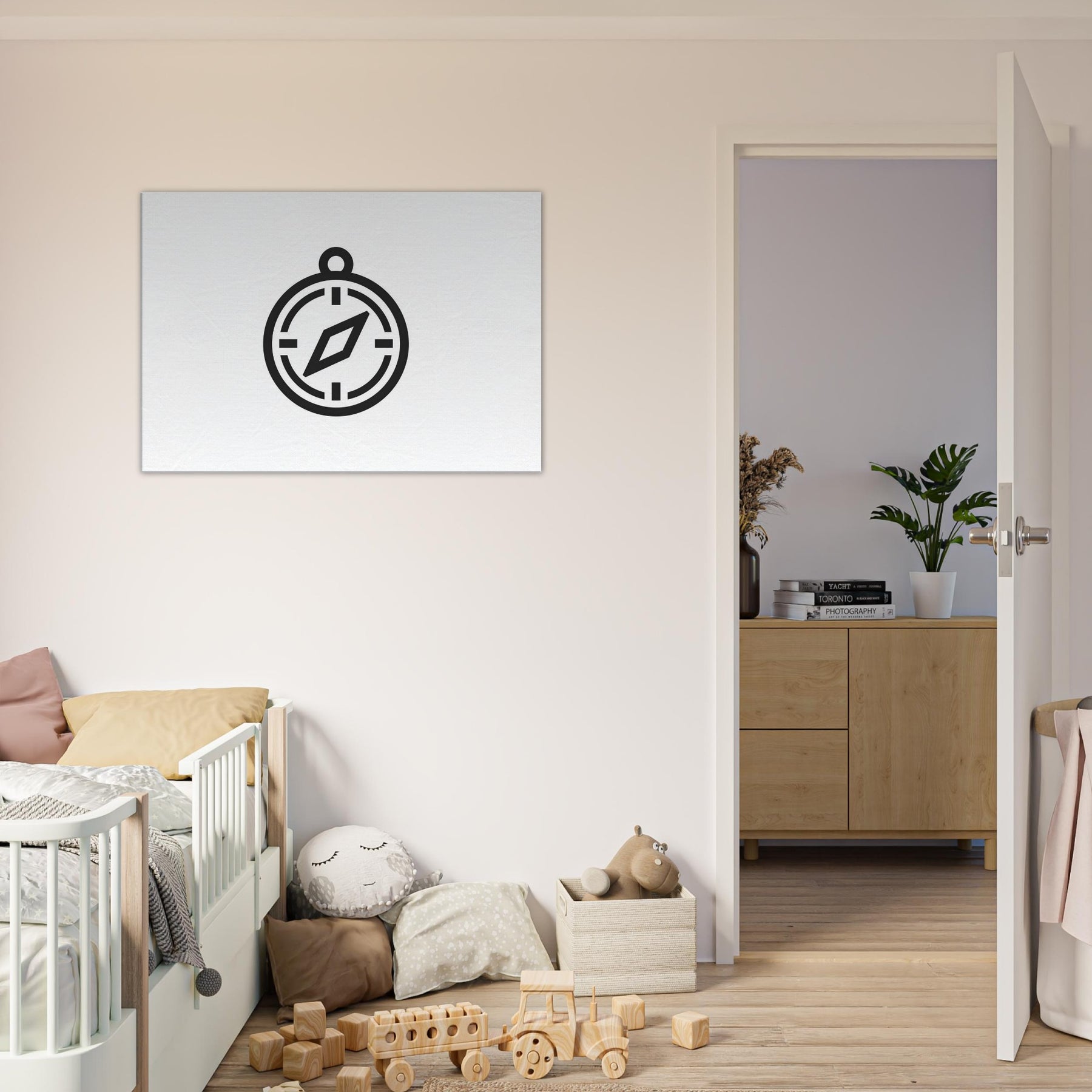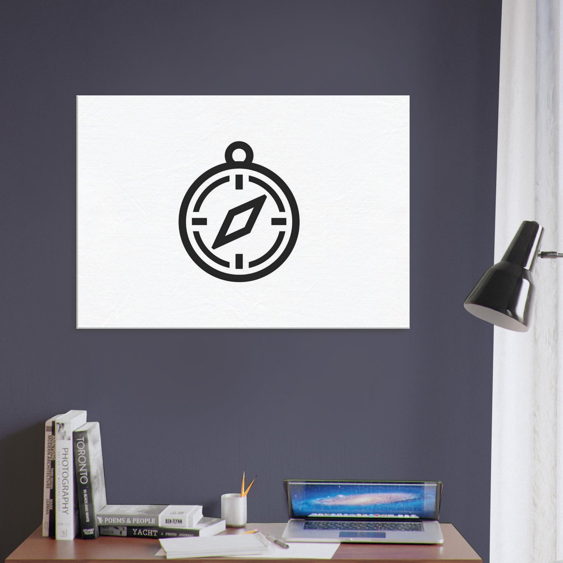 A single, elegant Compass rises in quiet line art, guiding the eye with subtle confidence. The crisp circle, measured marks, and a slender diamond needle create a sense of direction that feels both practical and poetic. Printed in stark black on bright white, it brings movement and balance to any wall, turning a living space into a calm harbor of focus and intention. Perfect above a sofa or in a hallway, it invites wanderlust without shouting, inviting reflection, conversation, and a timeless sense of exploration.