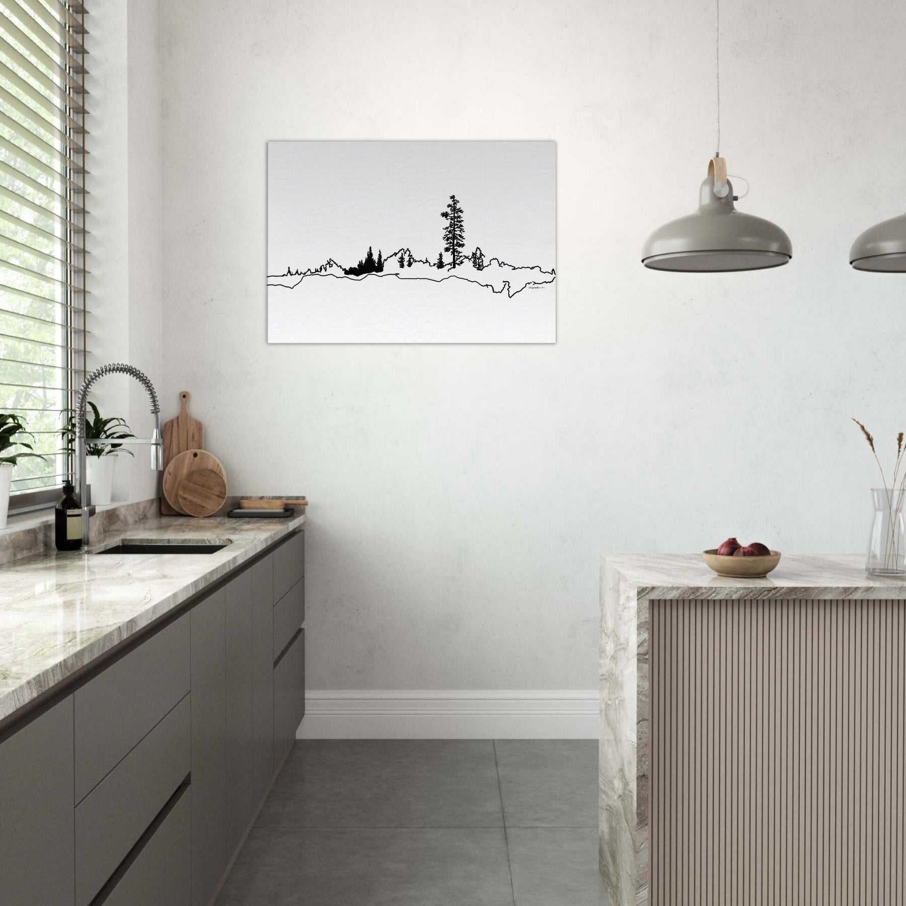Let the Boreal Forest line art invite your space into quiet focus. This slender, monochrome scene captures a lone tree rising from a gentle , where negative space becomes a breathing horizon. The result is a serene, contemplative mood that pairs effortlessly with modern furnishings, soft textiles, and warm woods. Hang it in a living room or home office to invite daylight into stillness, to feel the hush of a northern morning every time you glance up.