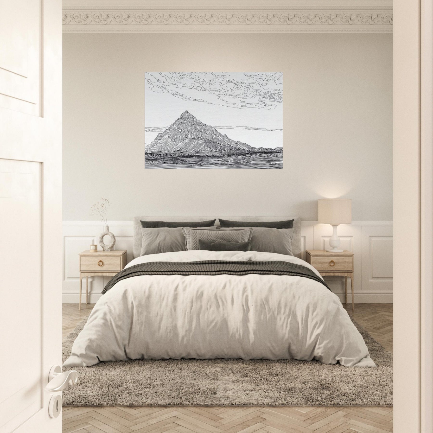 Let the Aurora Borealis unfurl in quiet, monochrome folds. This line art study captures the hush of night as if sketched by wind a graceful ribbon of light above a jagged . The result is a calm, cinematic mood that dresses walls in cool luminosity, inviting restful contemplation. Perfect for a minimalist living room or serene study, it pairs with natural textures and soft lighting to transform space into a silent, luminous horizon.