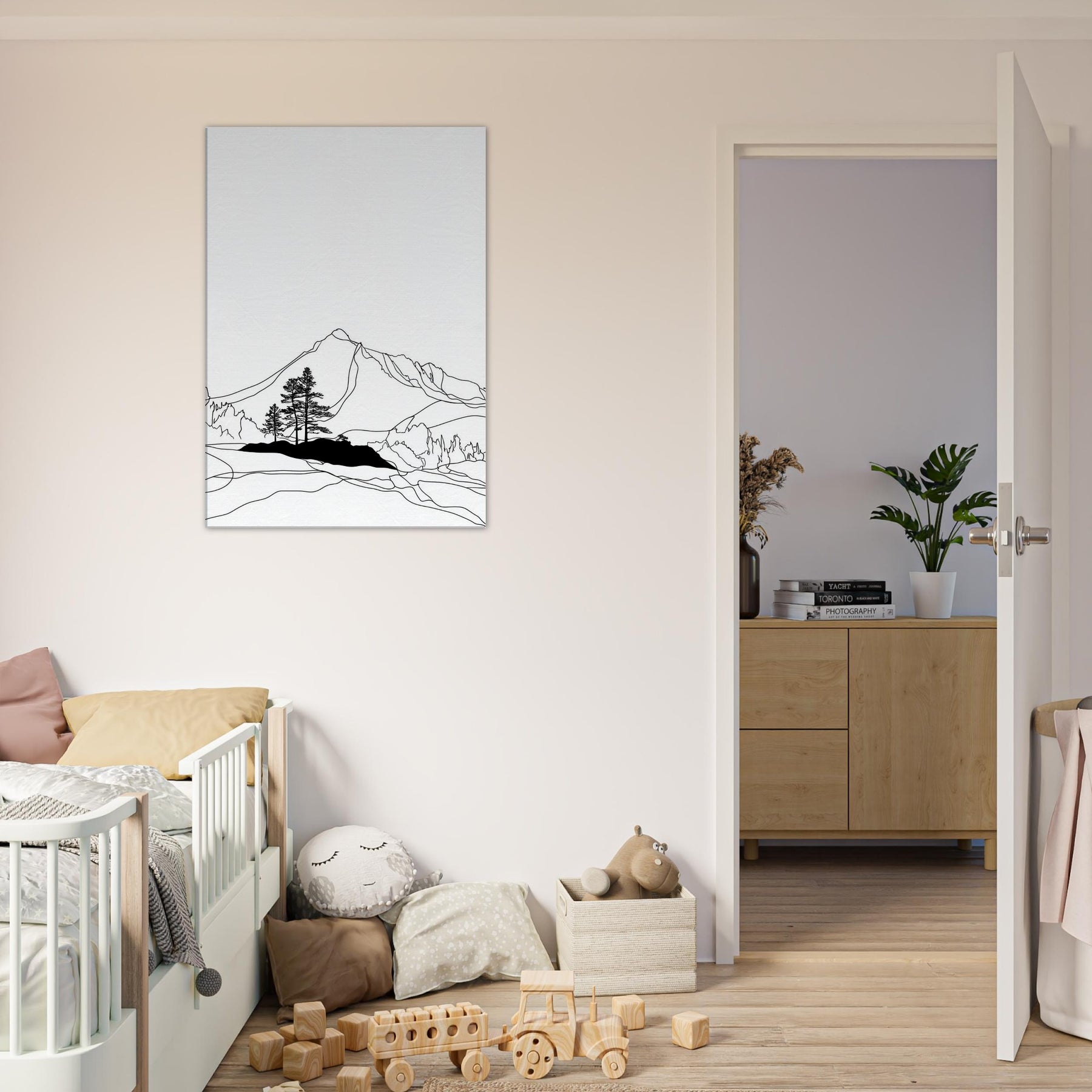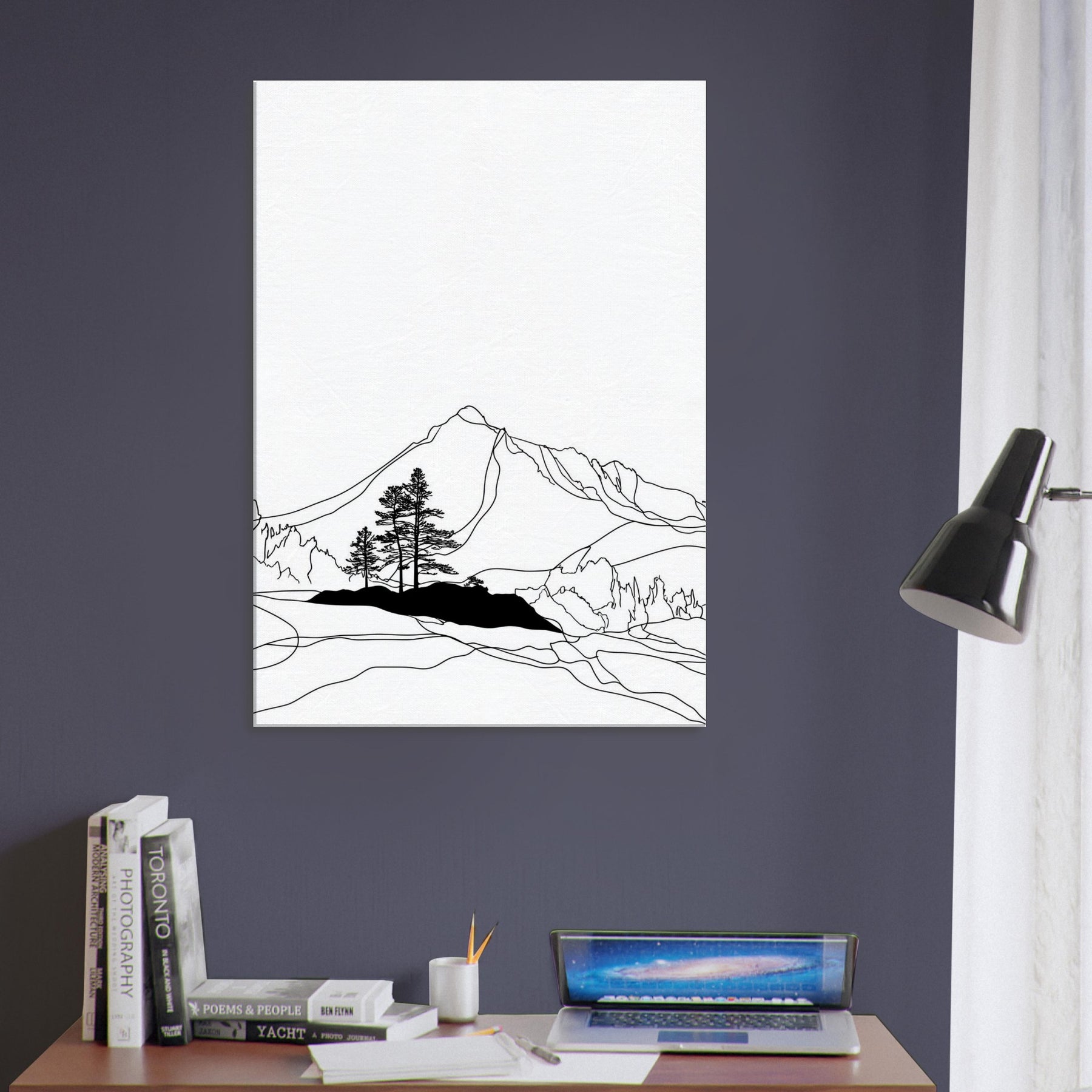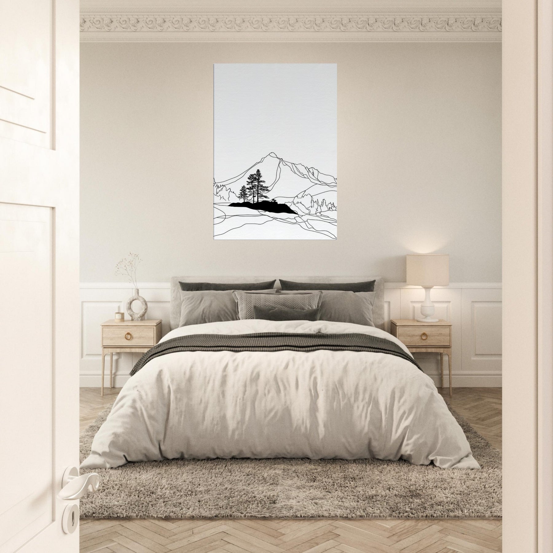Where mountains cradle a silent shoreline, the Aurora Borealis comes to life in a refined line drawing. This nature inspired piece uses clean contours and stark contrast to suggest motion without overwhelming the room, inviting a quiet gaze from across a sunlit living area or a candlelit night nook. The effect is Nordic in mood, airy, restrained, and luminous, making it a contemplative focal point that elevates both everyday rituals and memorable evenings.