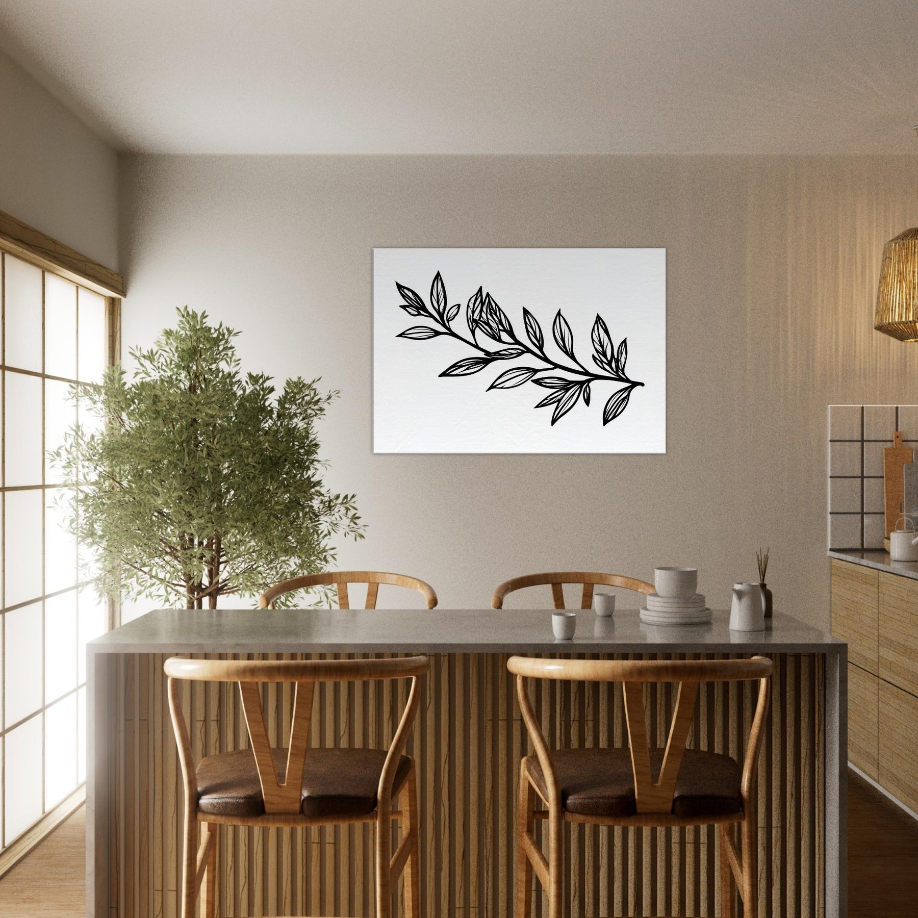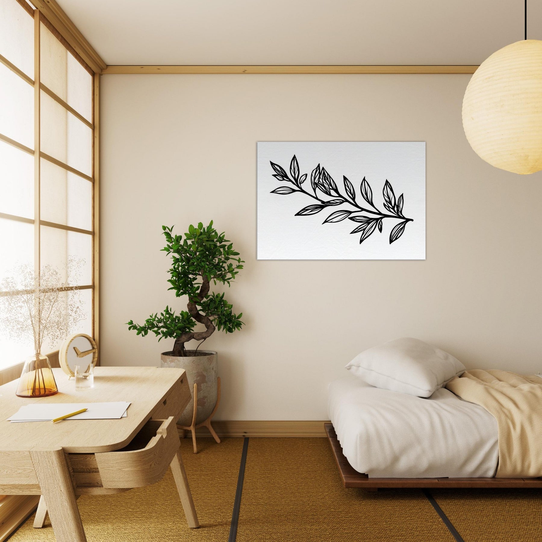 An ink black Olive Branch unfurls with quiet grace, its slender stems tracing a calm, modern rhythm across the wall. This line art study captures the breath of nature in a single, continuous gesture organic yet precise as if a gentle breeze paused to sketch. Hang it in a living room to soften steel and glass with botanical calm, invite contemplation with every glance, and let the Olive Branch become a quiet, enduring companion in daily rituals.
