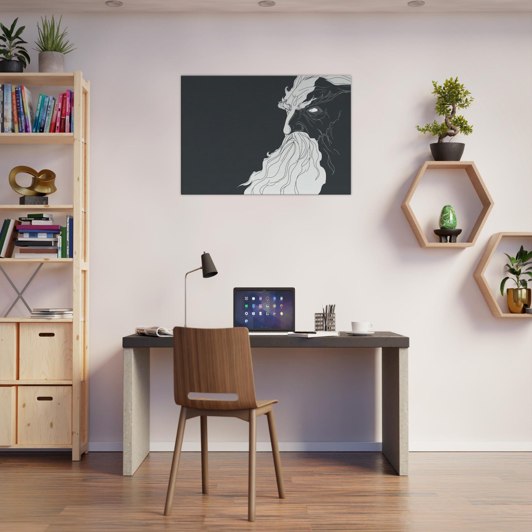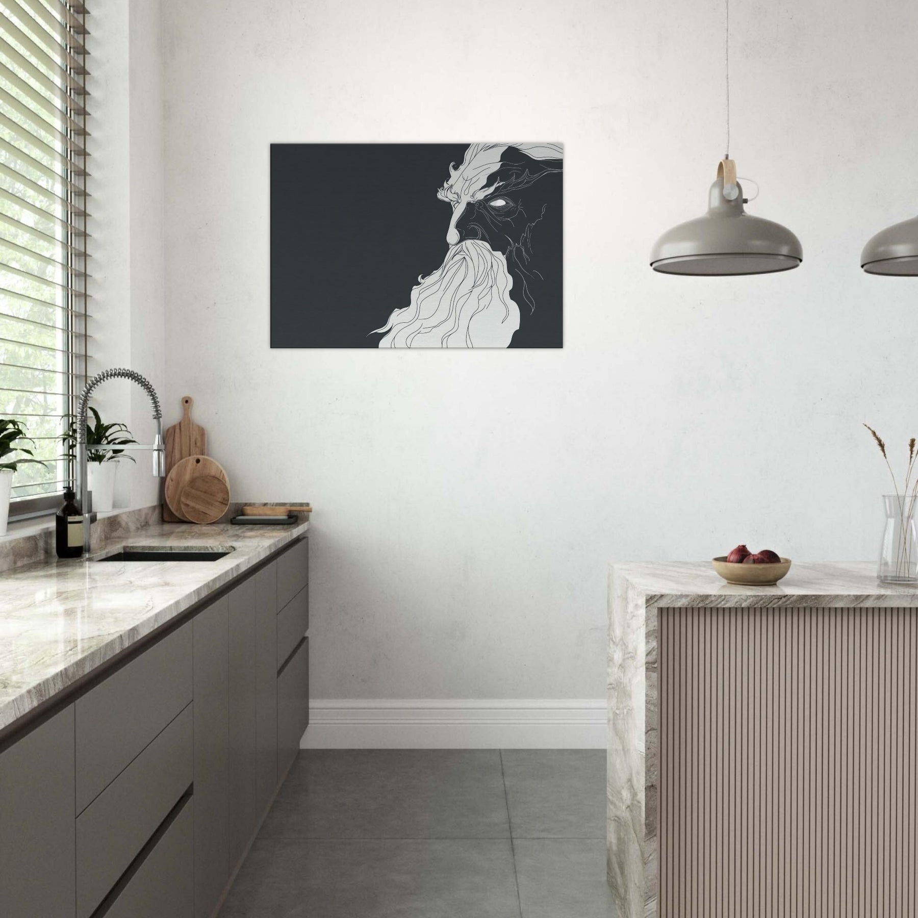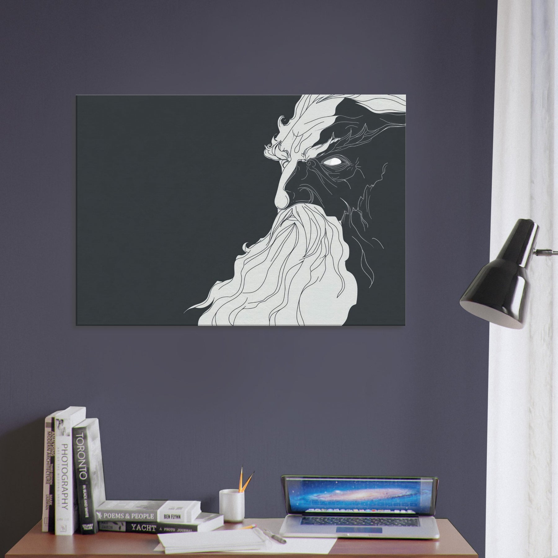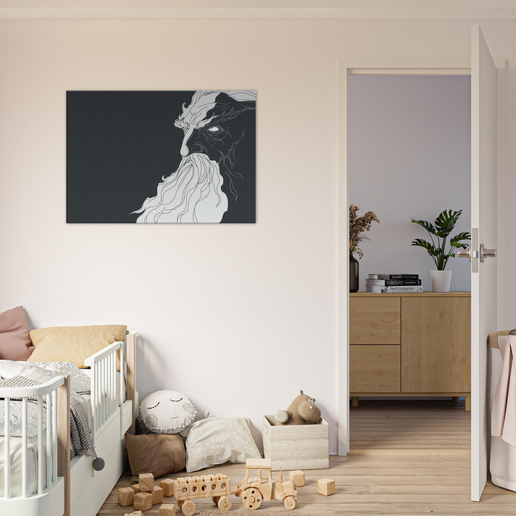 An austere, luminous silhouette: Odin, the All Father with a long beard and one eye, rendered in crisp line work against a moody backdrop. This piece breathes ancient wind and myth into a modern room, inviting quiet contemplation and a sense of legend. The restrained contrast and flowing contours skim the surface of power and wisdom, turning a wall into a portal perfect for a living space seeking serenity, depth, and a touch of timeless prophecy.