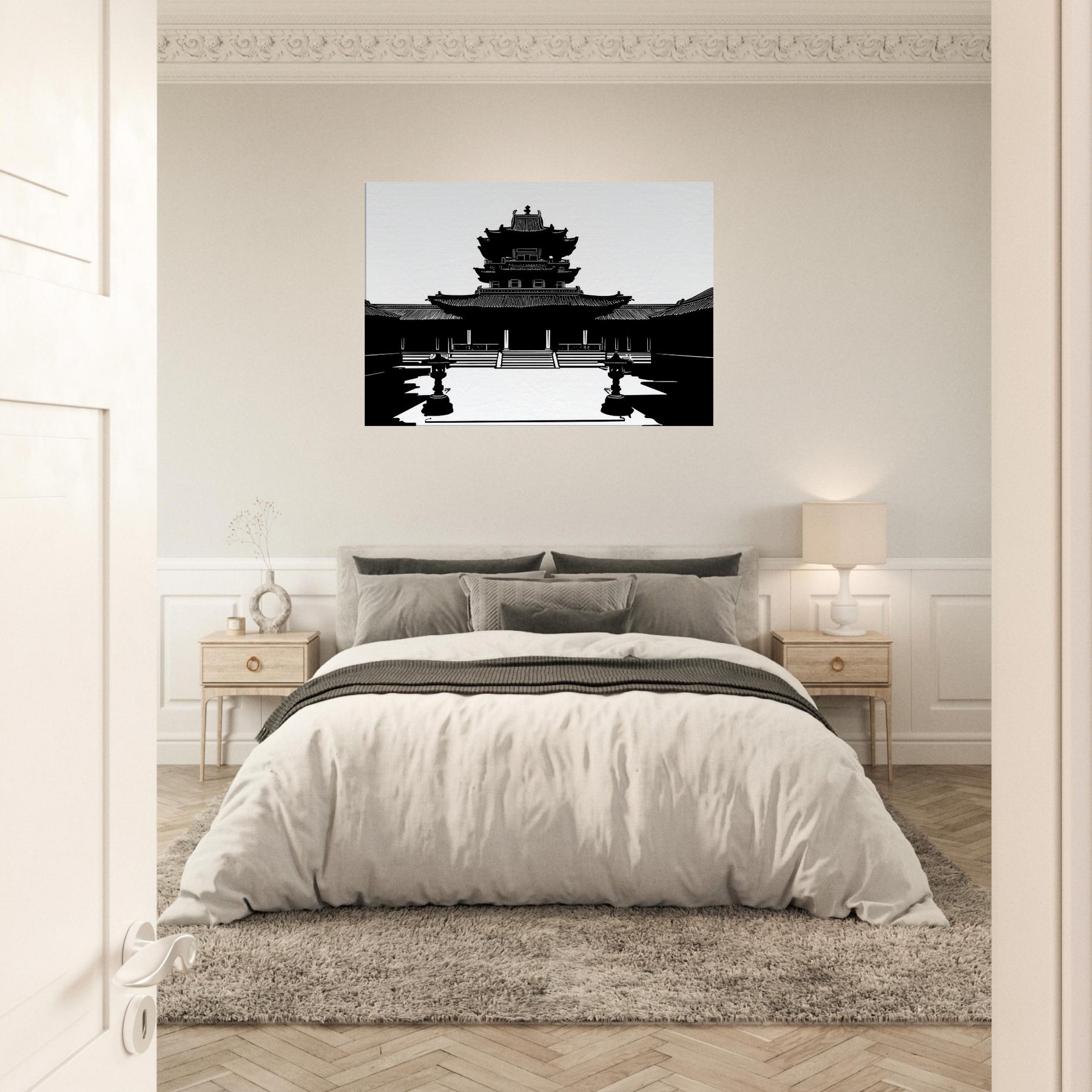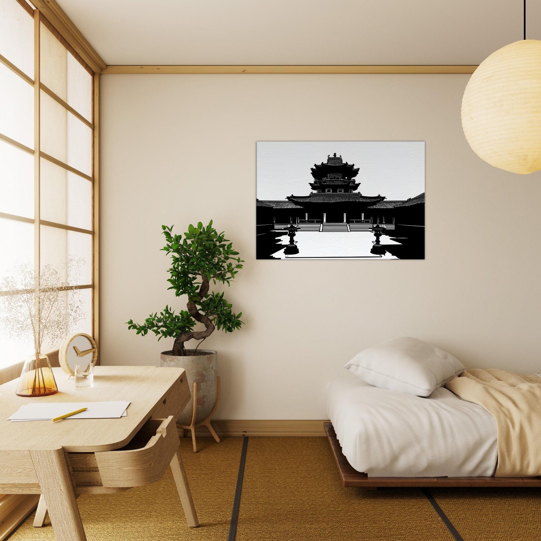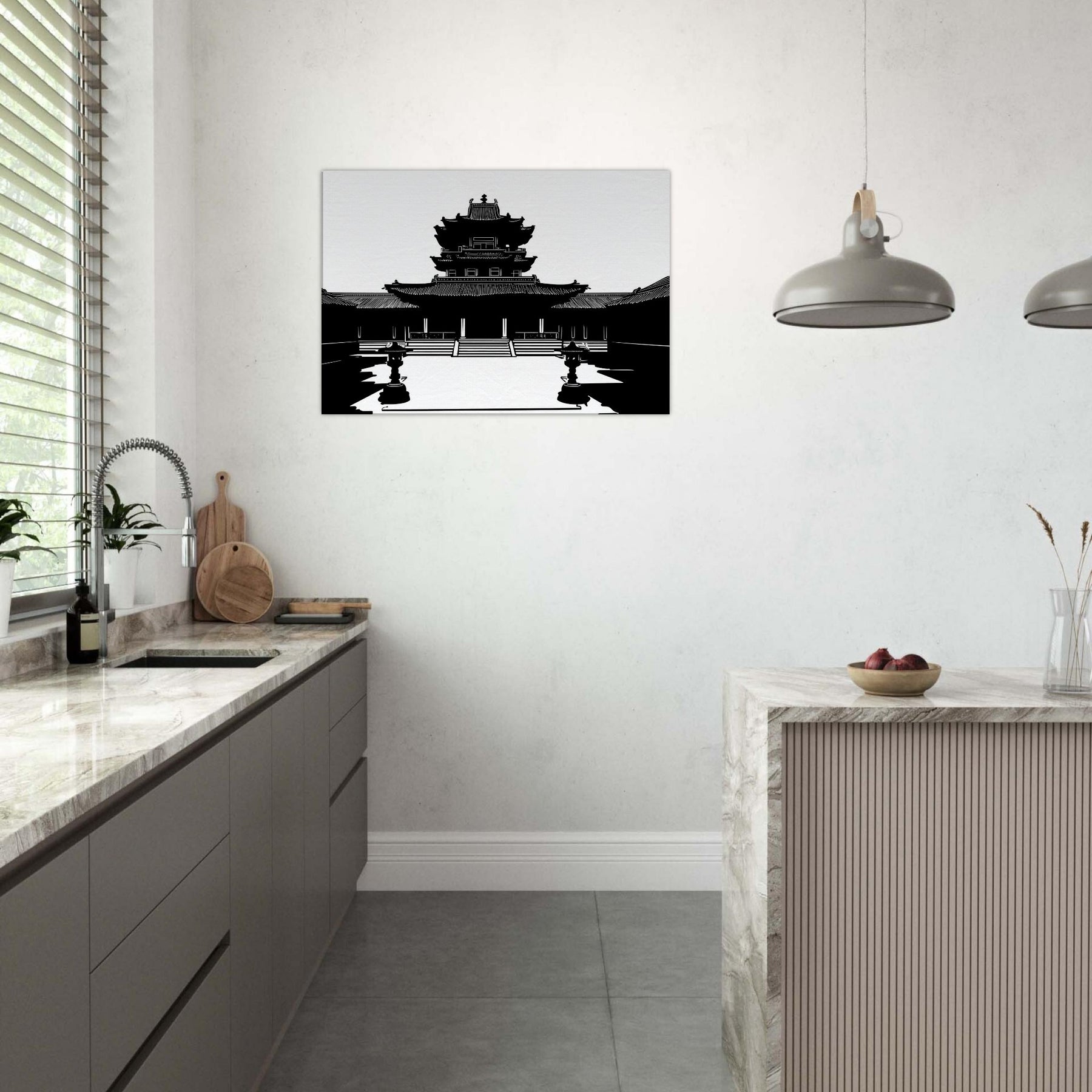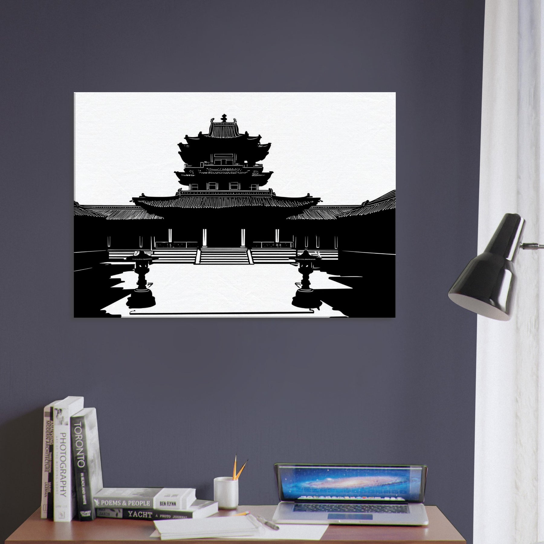 In stark black and white, the Pagoda rises in precise, breath taking line work, inviting quiet contemplation into everyday life. The clean contours and airy negative space sculpt a moment of ancient grace within a modern room, turning walls into windows of stillness. This piece anchors the mood with subtle grandeur, echoing temple courtyards at dawn and a cool, meditative energy. Perfect for a living room or study, it pairs architectural elegance with personal sanctuary, guiding the eye and slowing the day.