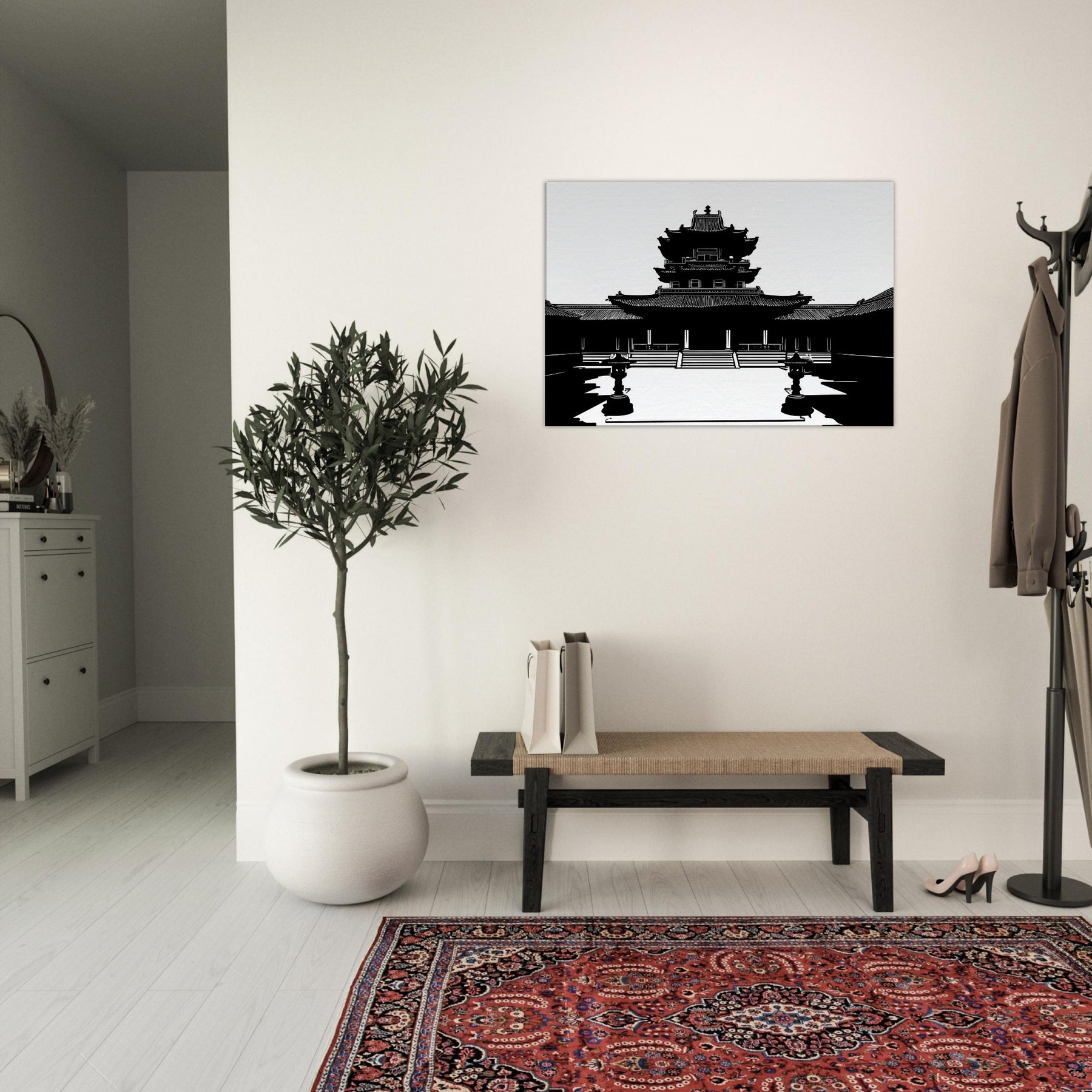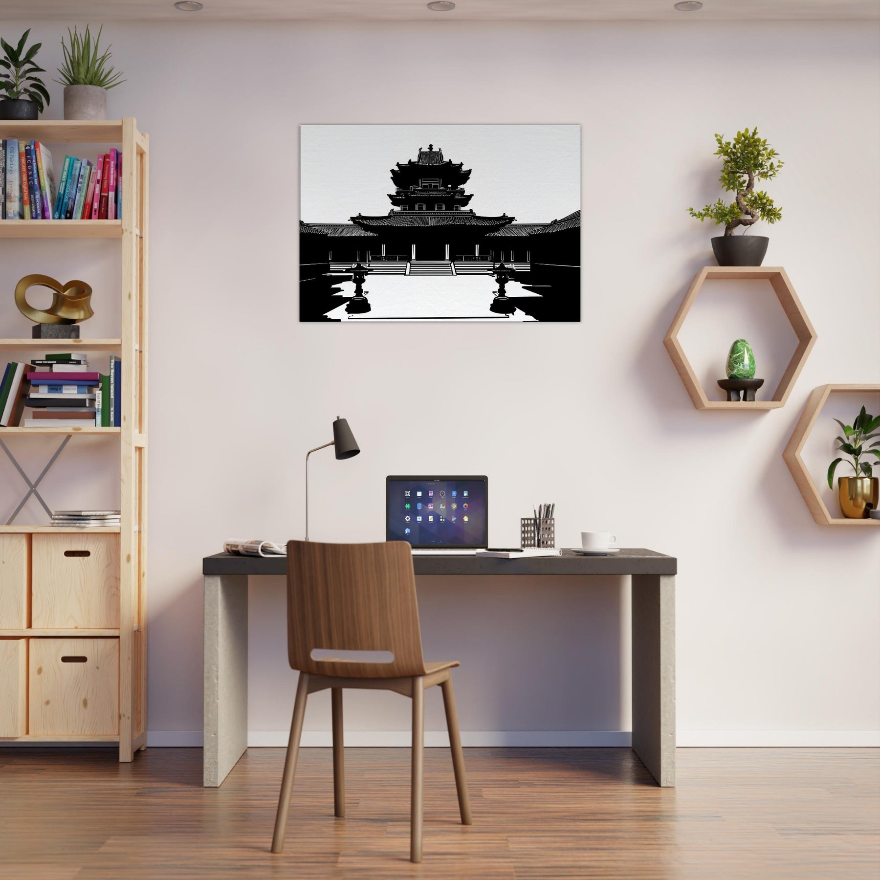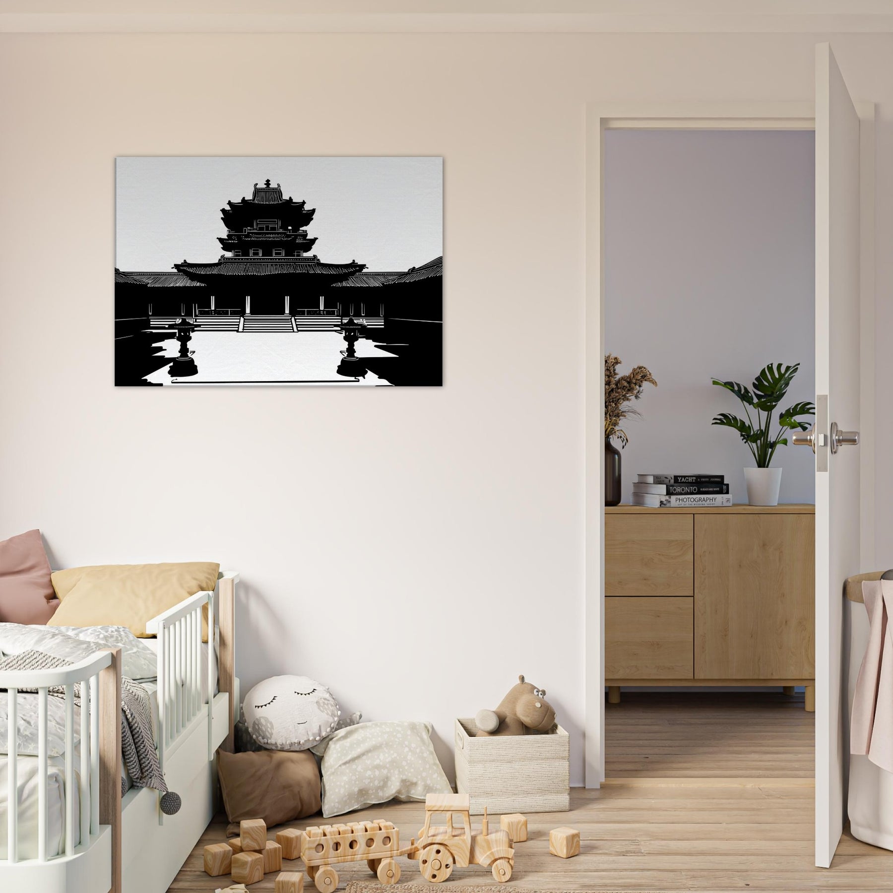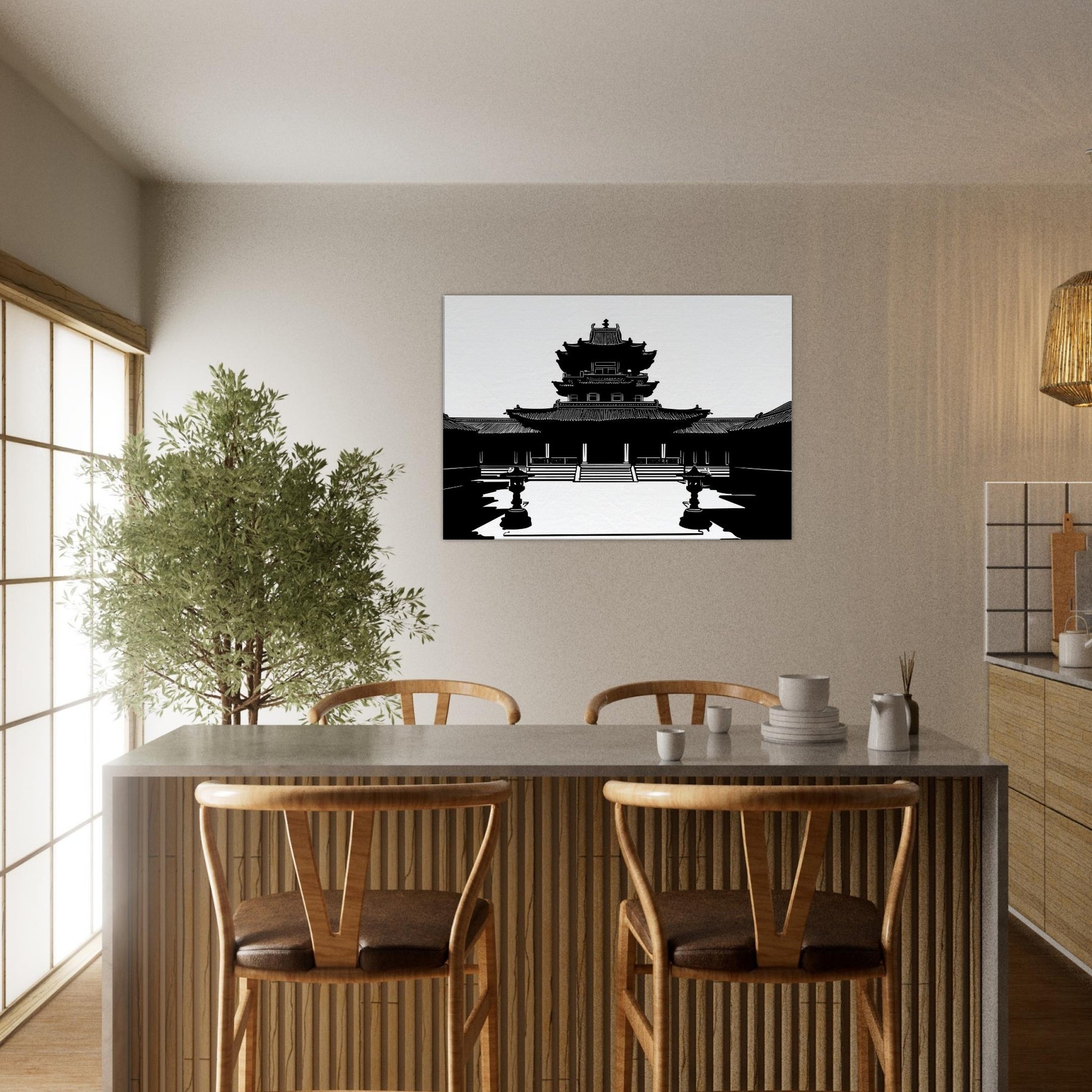 In stark black and white, the Pagoda rises in precise, breath taking line work, inviting quiet contemplation into everyday life. The clean contours and airy negative space sculpt a moment of ancient grace within a modern room, turning walls into windows of stillness. This piece anchors the mood with subtle grandeur, echoing temple courtyards at dawn and a cool, meditative energy. Perfect for a living room or study, it pairs architectural elegance with personal sanctuary, guiding the eye and slowing the day.