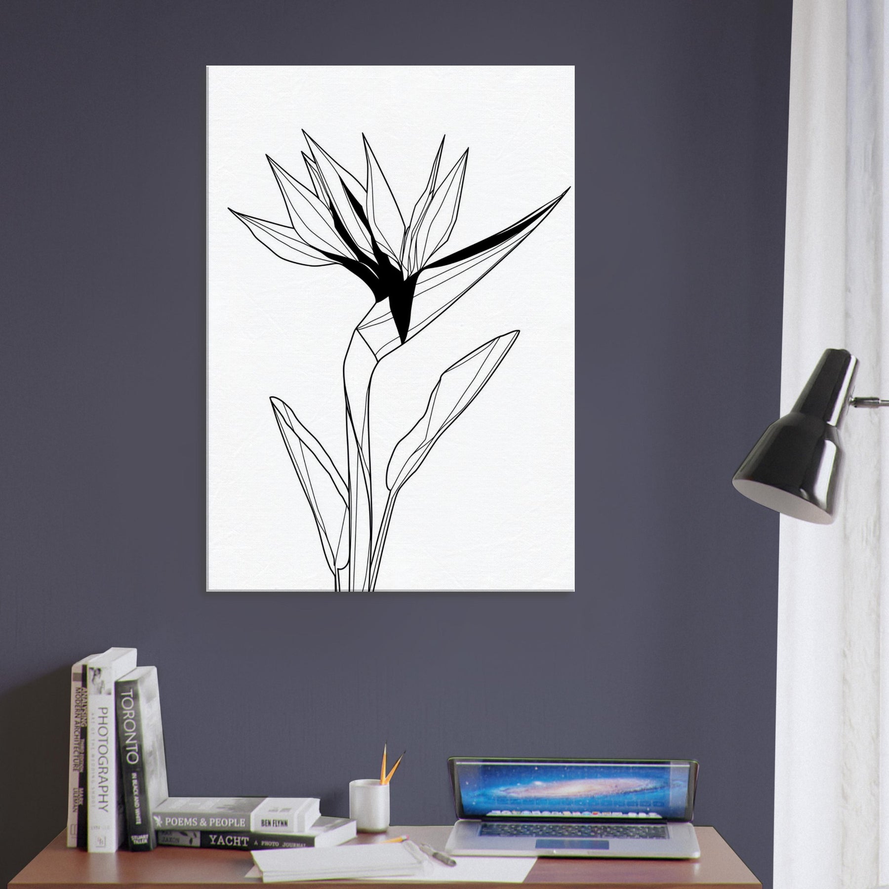 A quiet ode to the Bird of Paradise, rendered in clean, black line work that breathes with elegance. The slender stems rise with architectural clarity, while the petals open in a poised, tropical gesture. Negative space becomes a soft breeze, inviting contemplation and calm. In a living room or bedroom, this line art adds height, balance, and a whisper of color through mood and shadow, without shouting. It pairs effortlessly with minimal furniture, natural textures, and warm light, turning everyday spaces into a sanctuary of light and possibility.