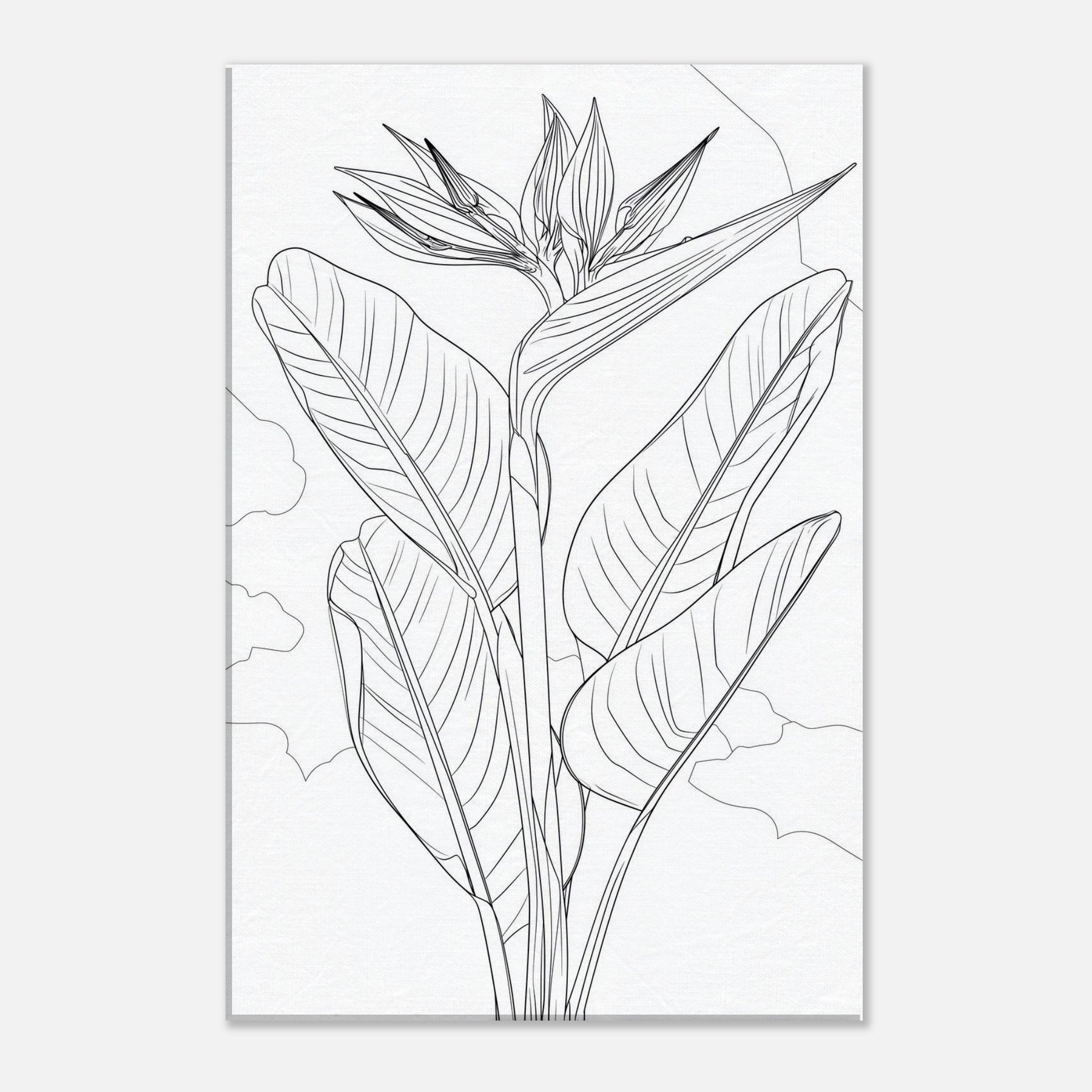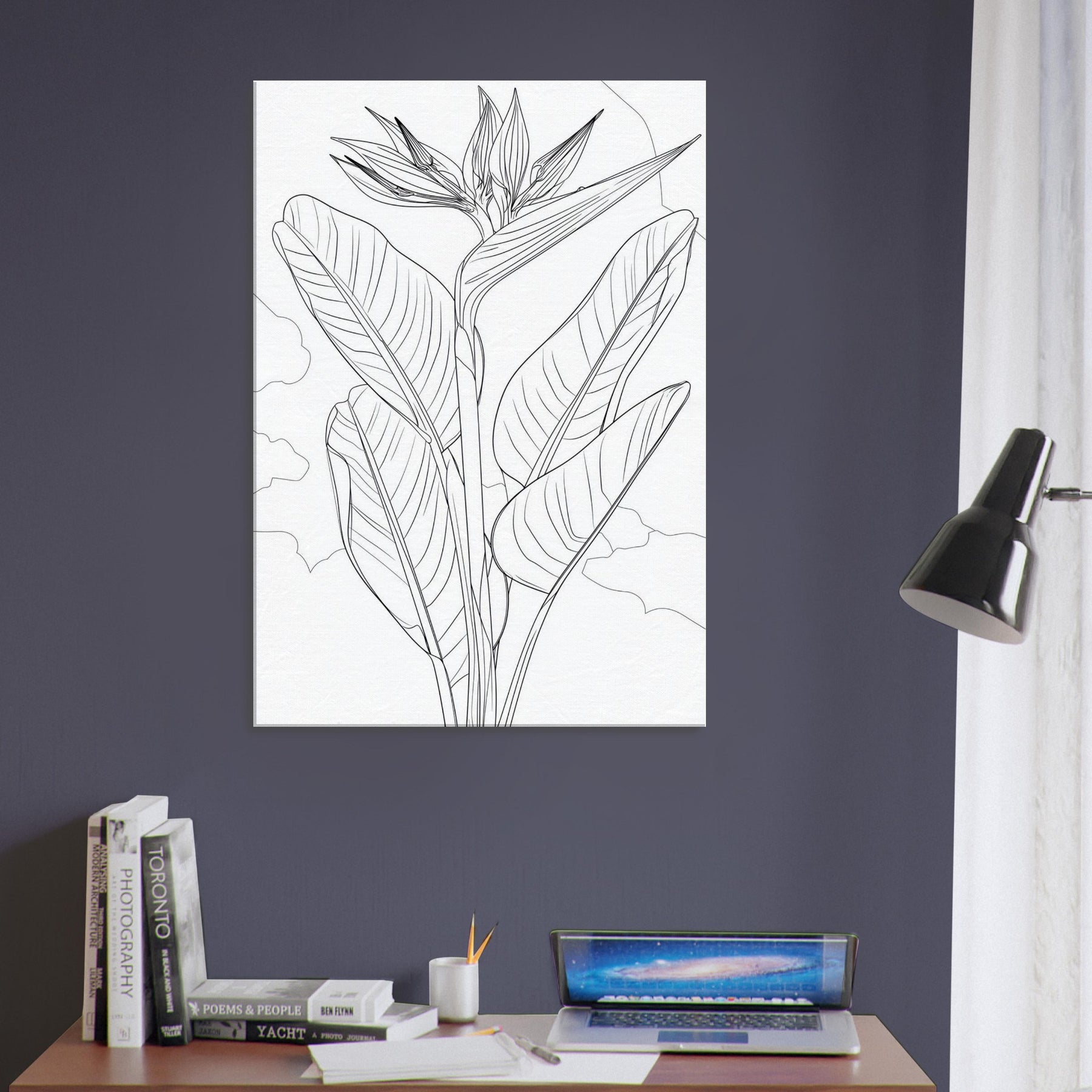 An elegant study in line Bird of Paradise unfurls its sculpted form in spare, confident strokes. This botanical breathes with air and light, where each stripe of the leaf and every arching plume suggests movement and growth. The minimal line work creates a quiet drama, inviting sun drenched walls to glow. Perfect for a serene living space, a home office, or a bedroom corner, it pairs with natural textures to evoke tropical calm without visual clutter.