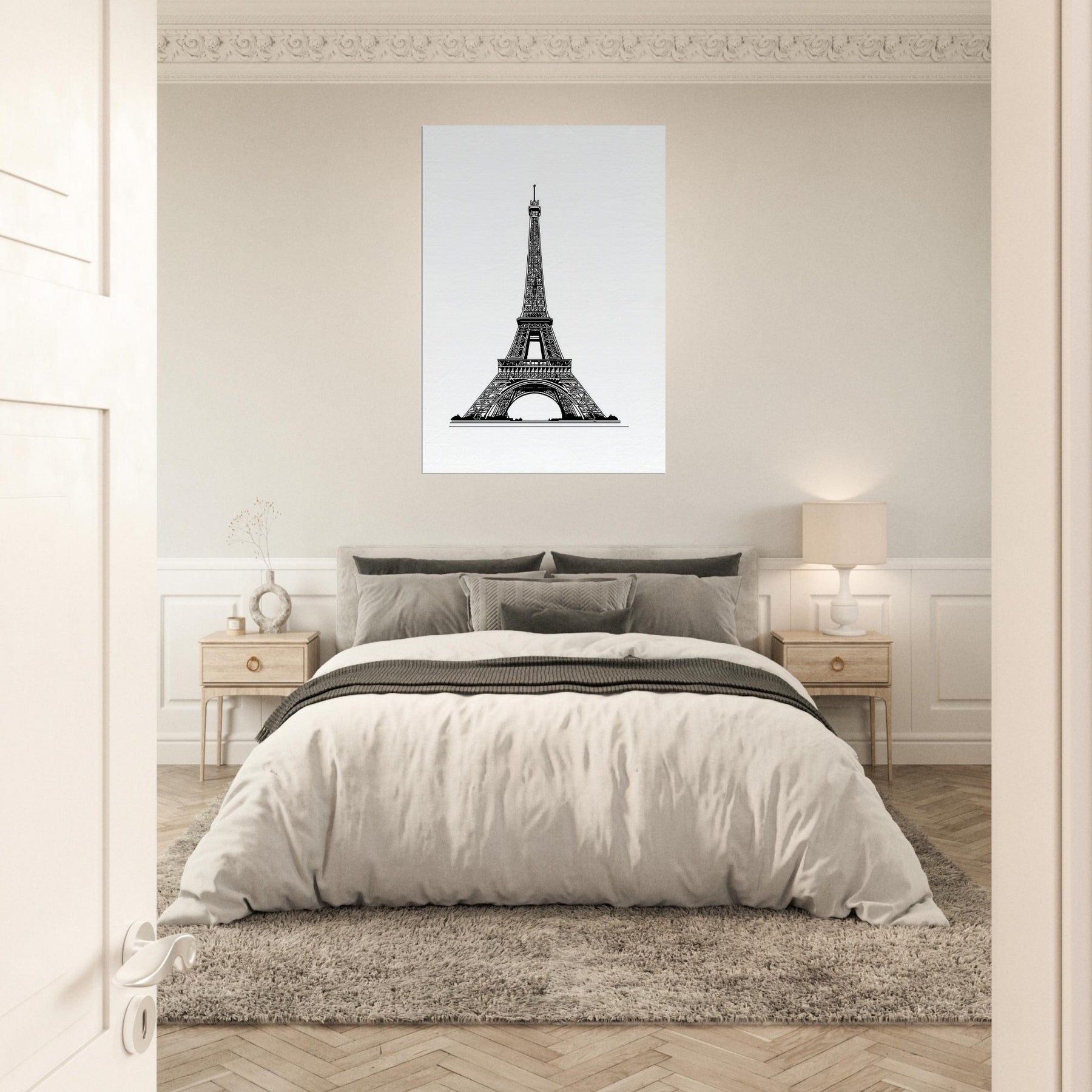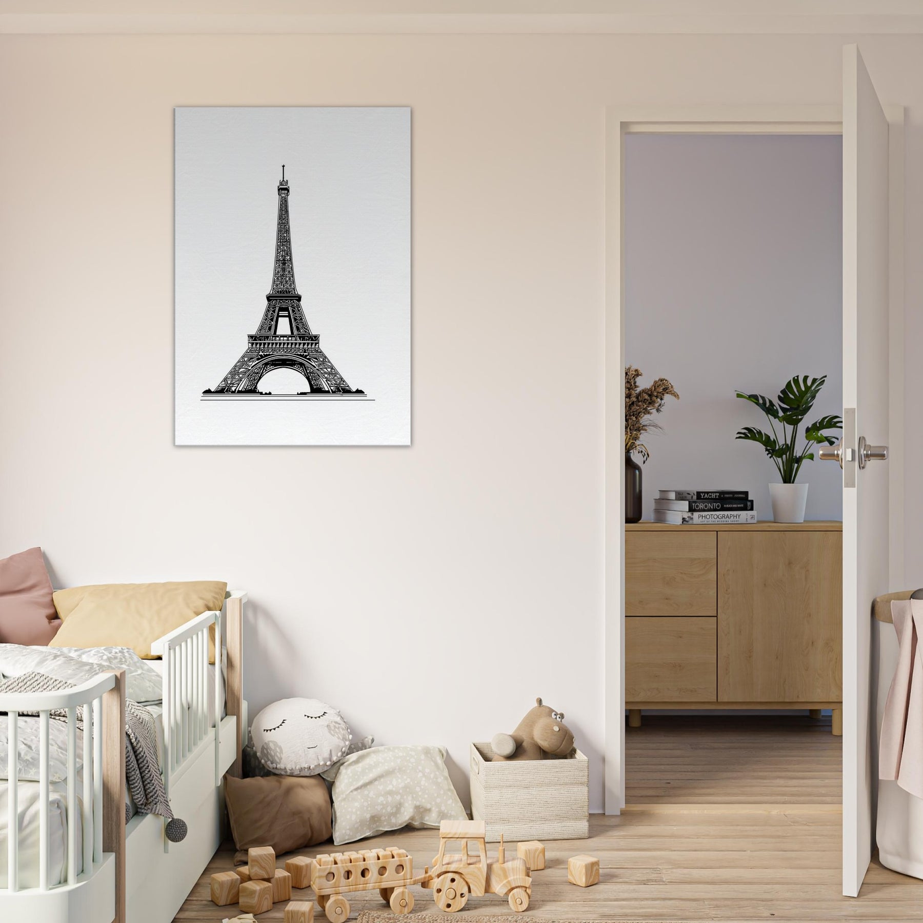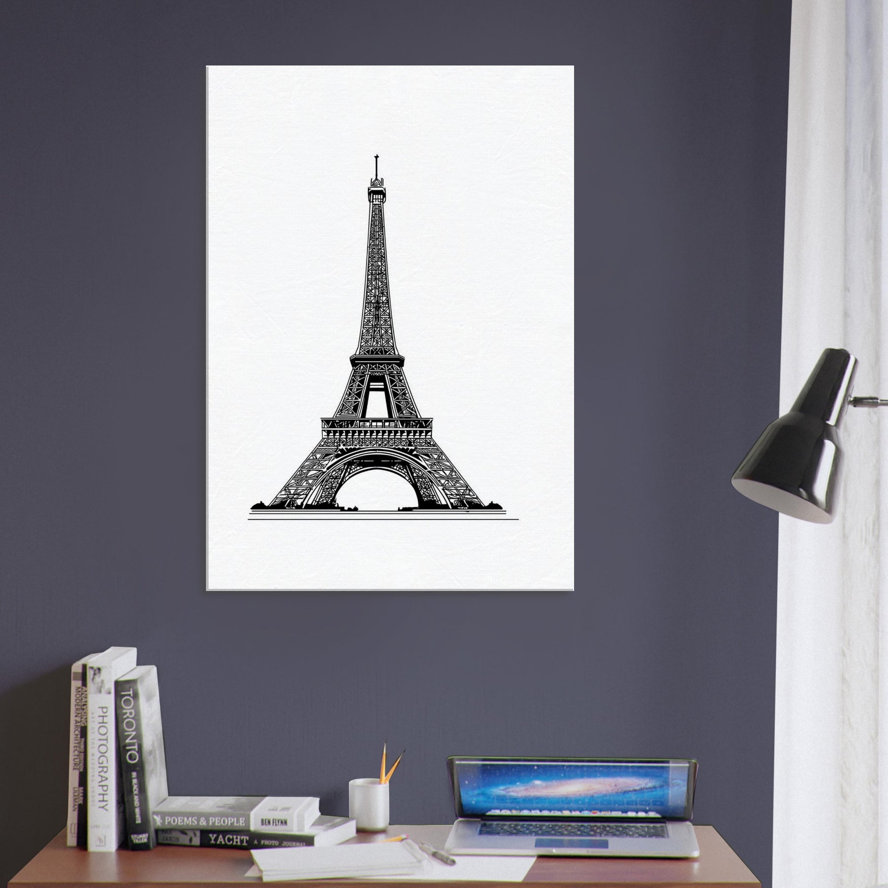 Let the Eiffel Tower in crisp line work anchor your room with quiet majesty. This refined depiction strips away color to reveal the sculpture of steel and sky, a whisper of Parisian evenings and lantern lit promenades. The black ink traces softly rise and fall, echoing the rhythm of a city that never stops dreaming. Hang it in a living space to invite airy verticality, generous light, and a hint of romance where minimal form becomes a generous, eternal silhouette.