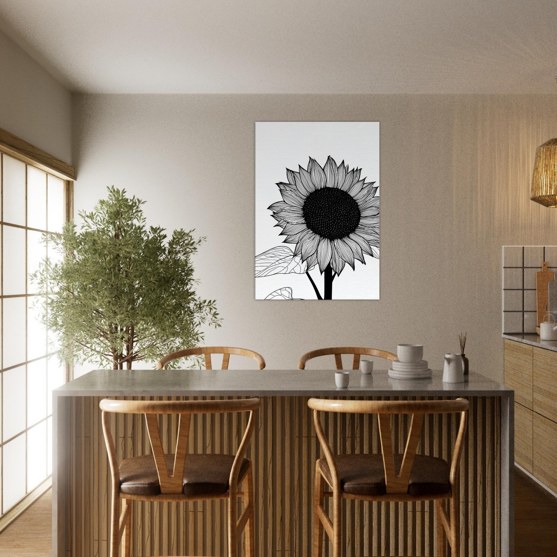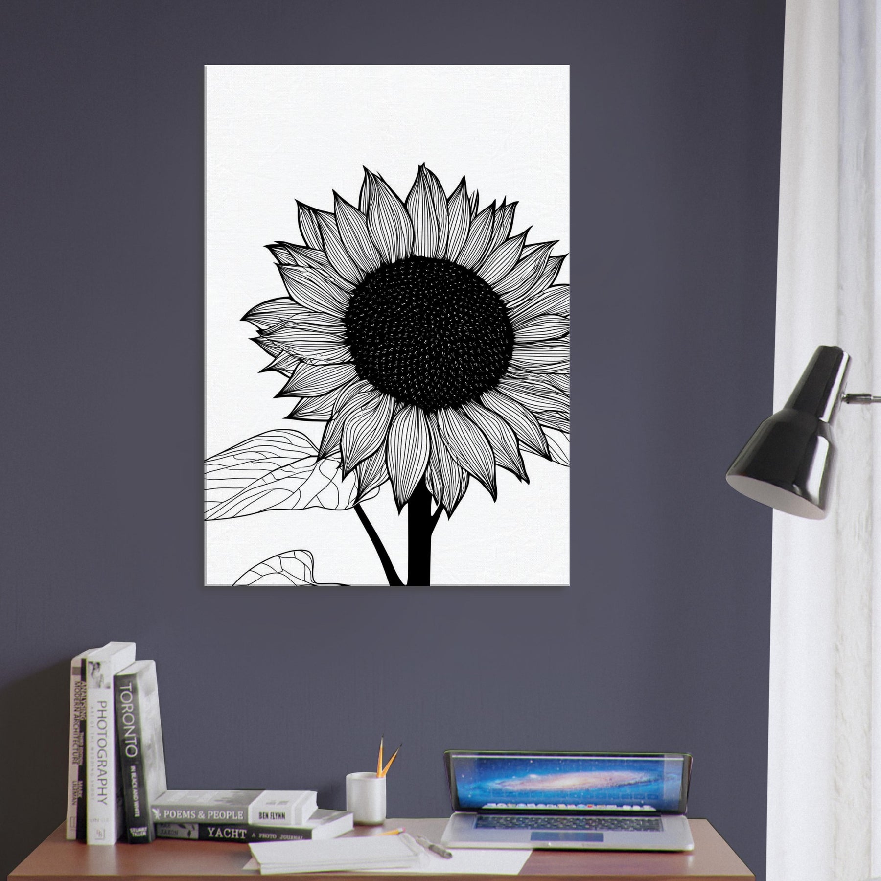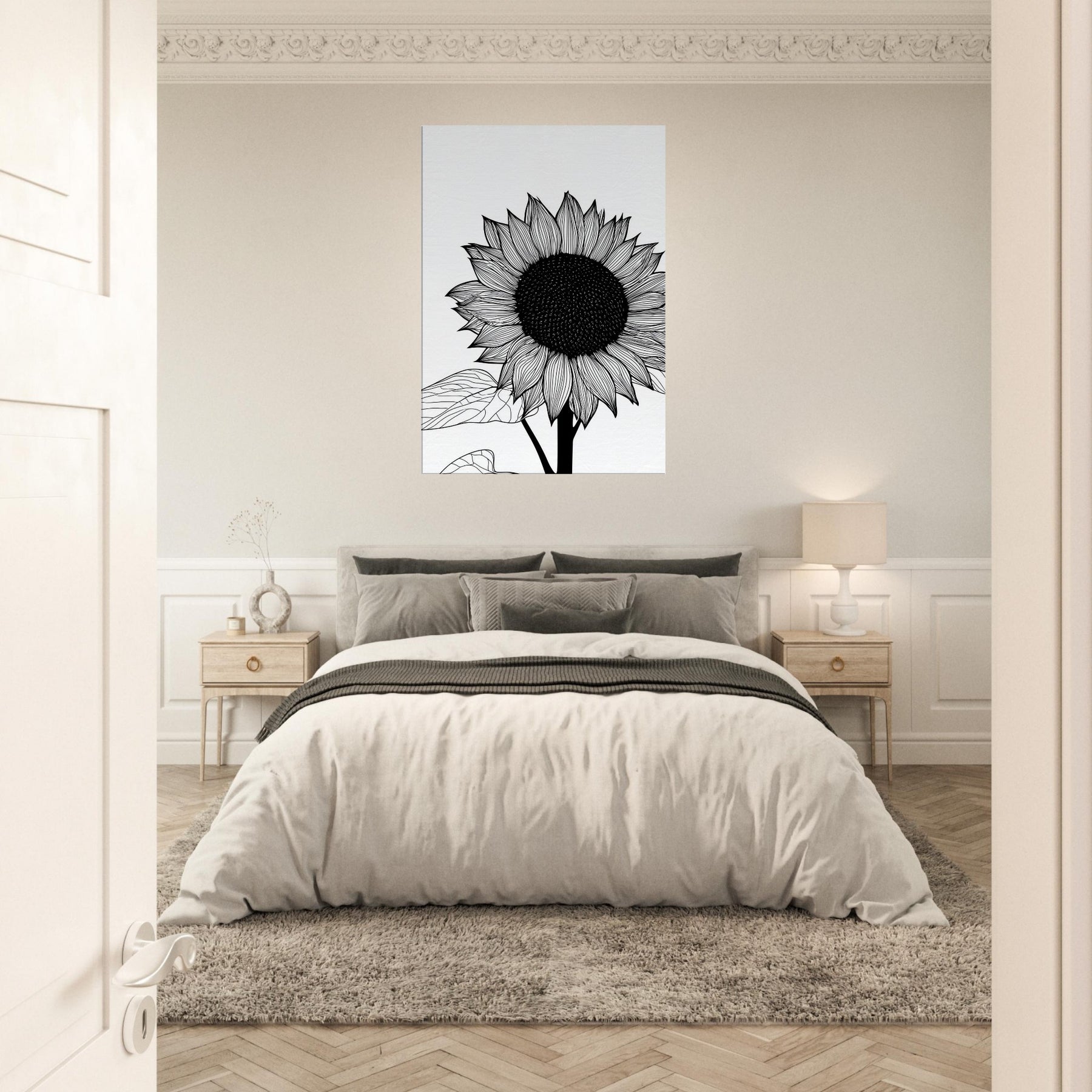 With clean, sinuous lines, this Sunflower line art captures the radiant spirit of nature in monochrome. The bold central disk anchors the eye while delicate strokes radiate outward like sunlit beams, inviting light and calm into your living space. The contrast of black on white adds a modern, gallery ready presence that pairs effortlessly with neutrals or rich textures. Hang it in a living room or bedroom to evoke warmth, openness, and quiet joy an everyday reminder of nature’s simple, sun kissed beauty.