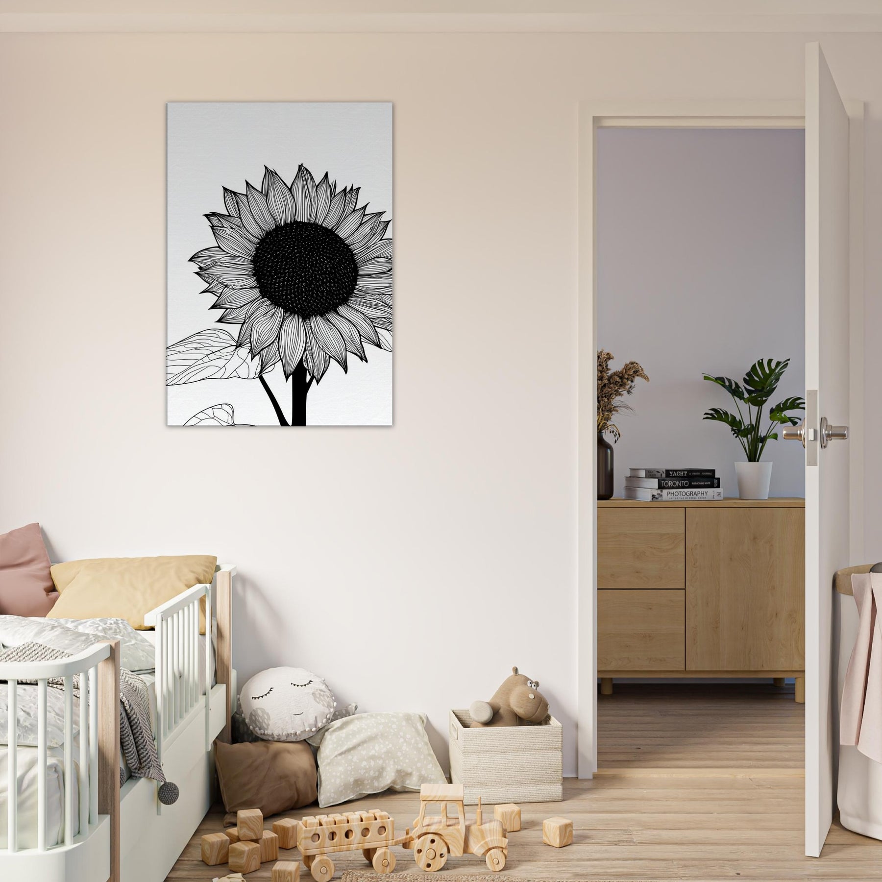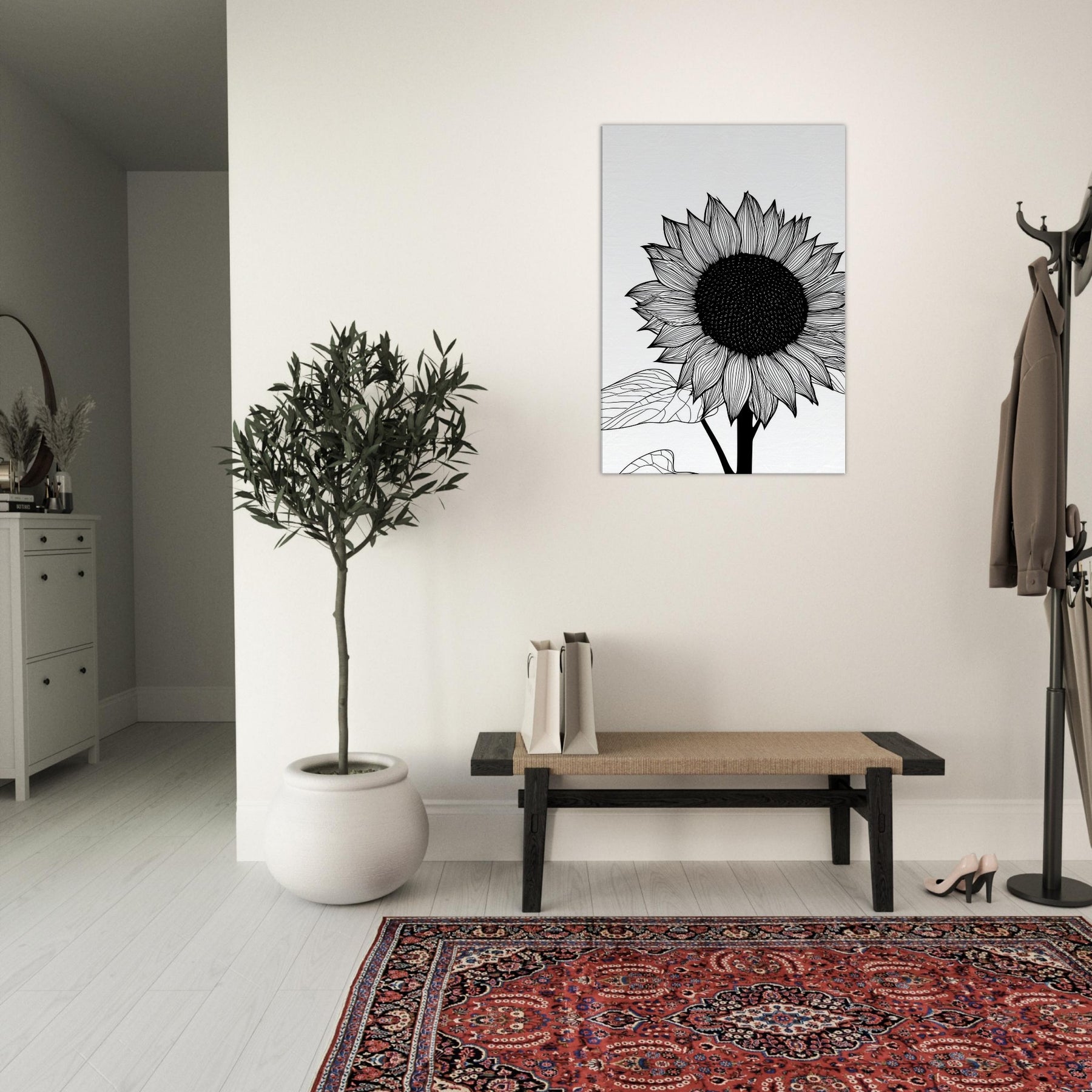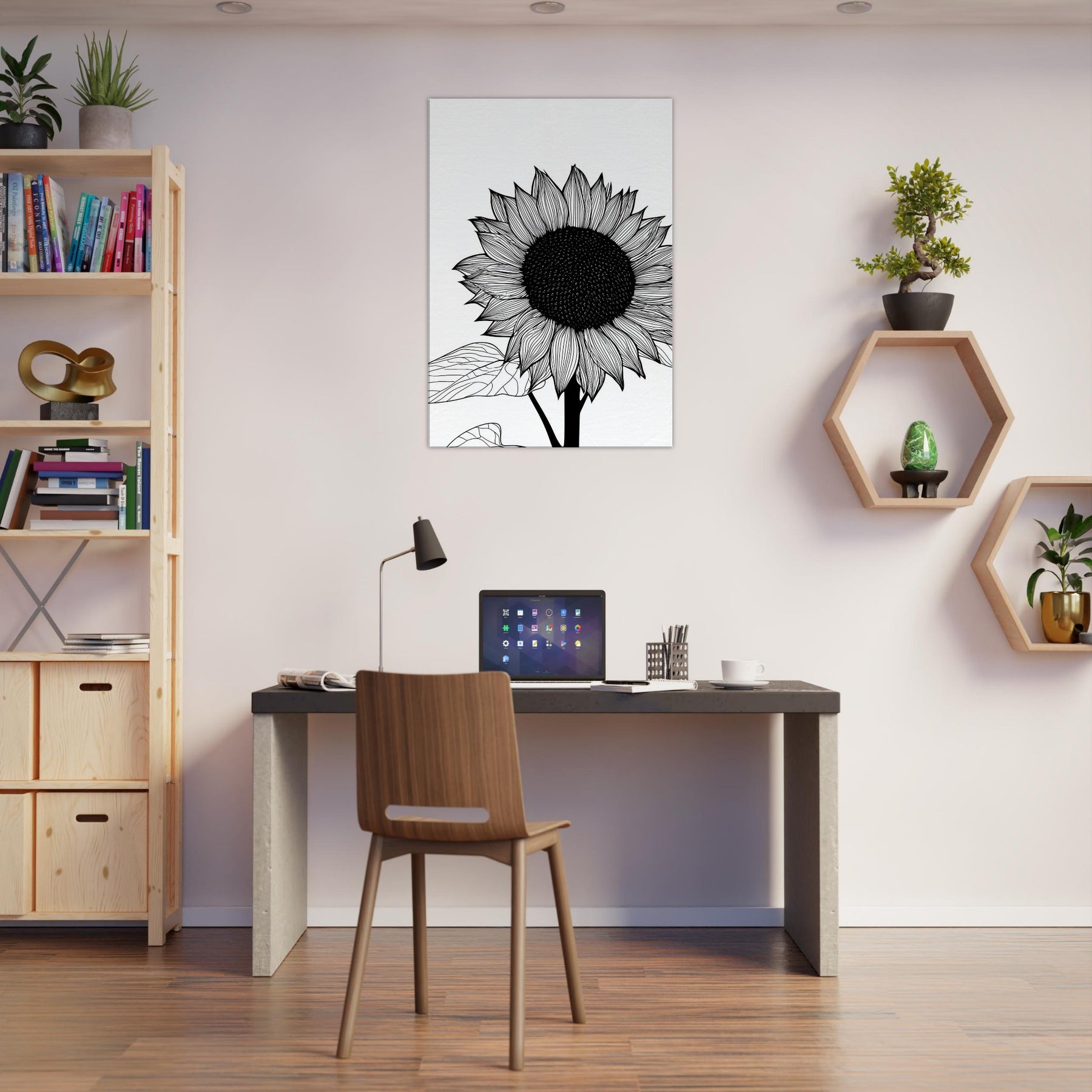 With clean, sinuous lines, this Sunflower line art captures the radiant spirit of nature in monochrome. The bold central disk anchors the eye while delicate strokes radiate outward like sunlit beams, inviting light and calm into your living space. The contrast of black on white adds a modern, gallery ready presence that pairs effortlessly with neutrals or rich textures. Hang it in a living room or bedroom to evoke warmth, openness, and quiet joy an everyday reminder of nature’s simple, sun kissed beauty.